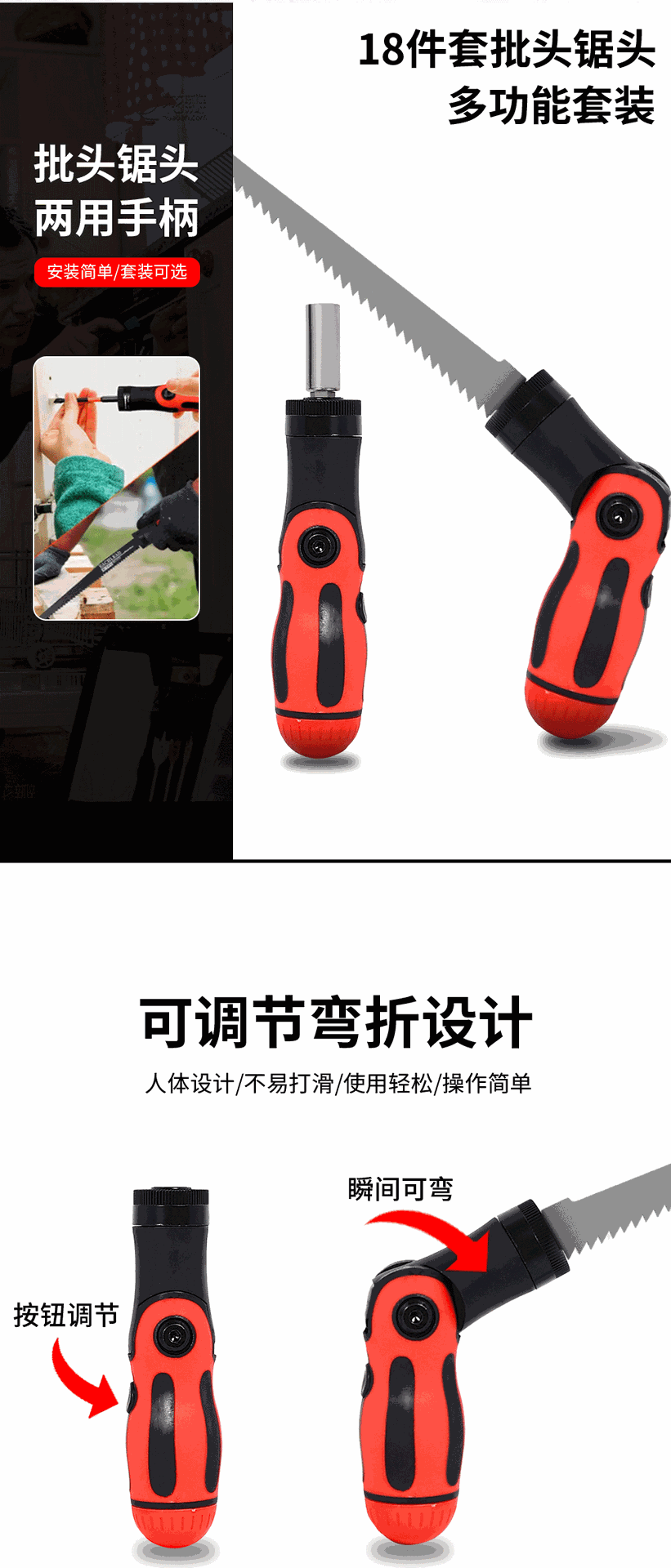 스크루 드라이버 왕복 톱날 구부릴 수있는 그립 내구성 세이버 스크루 드라이버 비트 수동 빠른 분리 가능한 가구