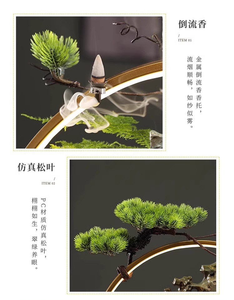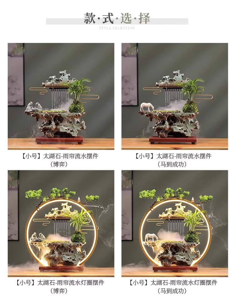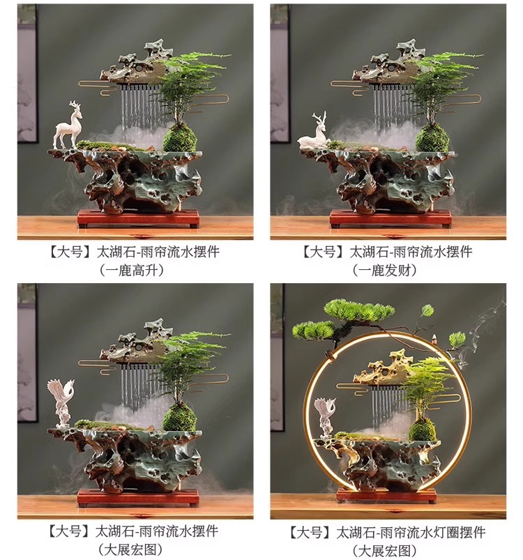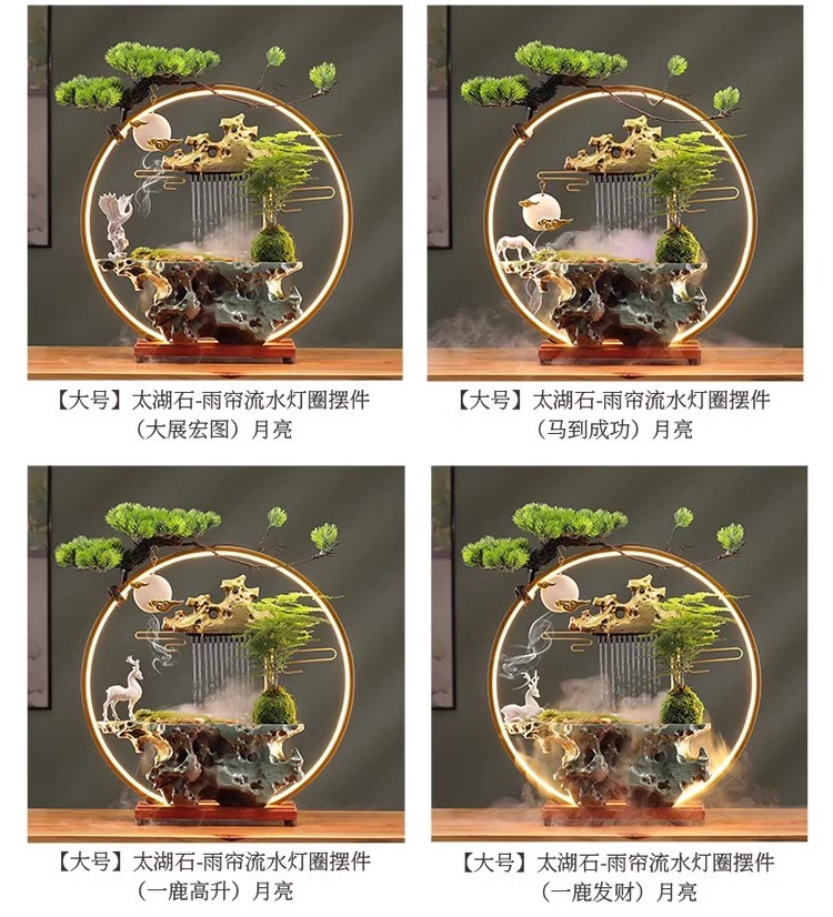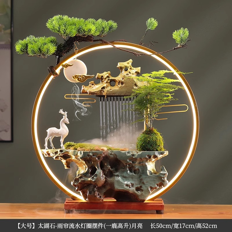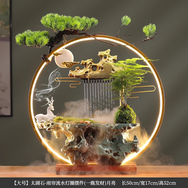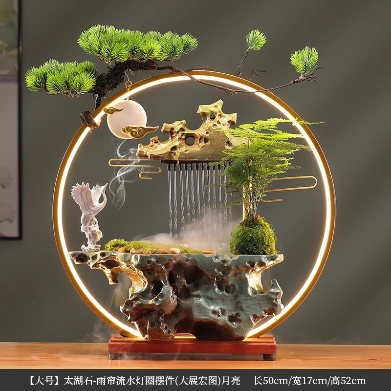 • [대형 - 램프 원형 스타일] Taihu Stone - 빗자루 및 흐르는 물 장식 (큰 성과)