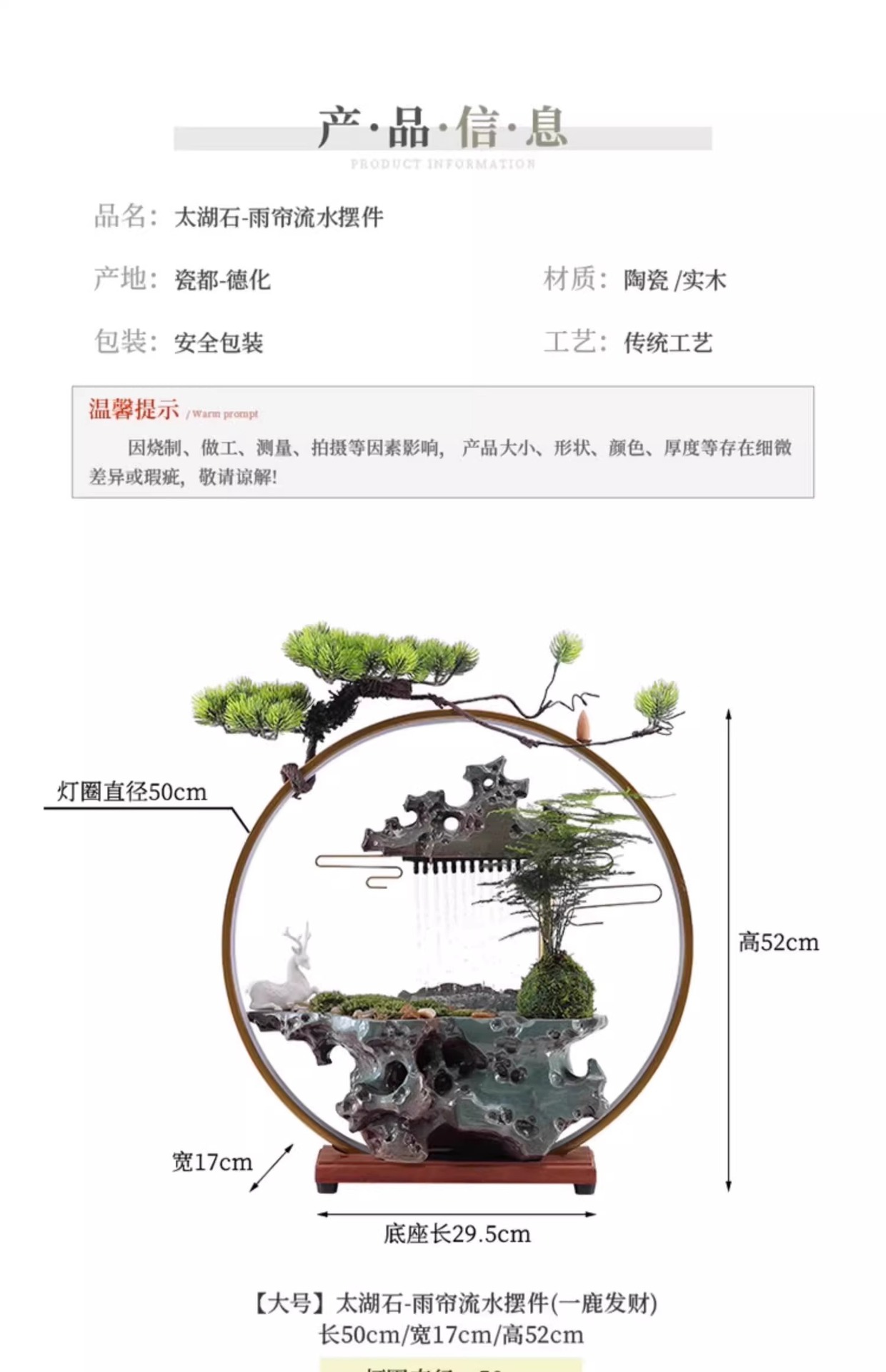 • [대형] 태호석-비커튼 흐르는 물장식(사슴이 올라가다)