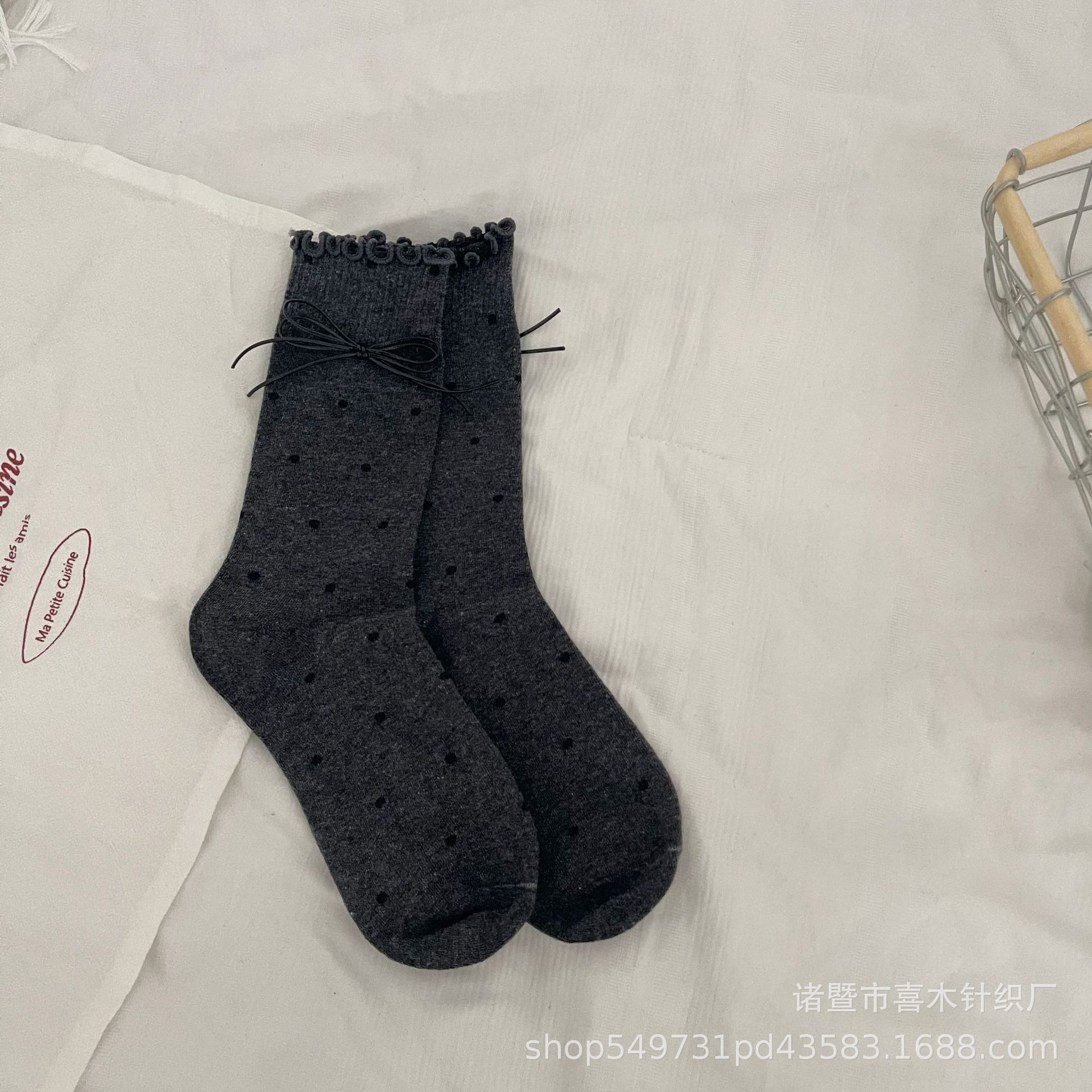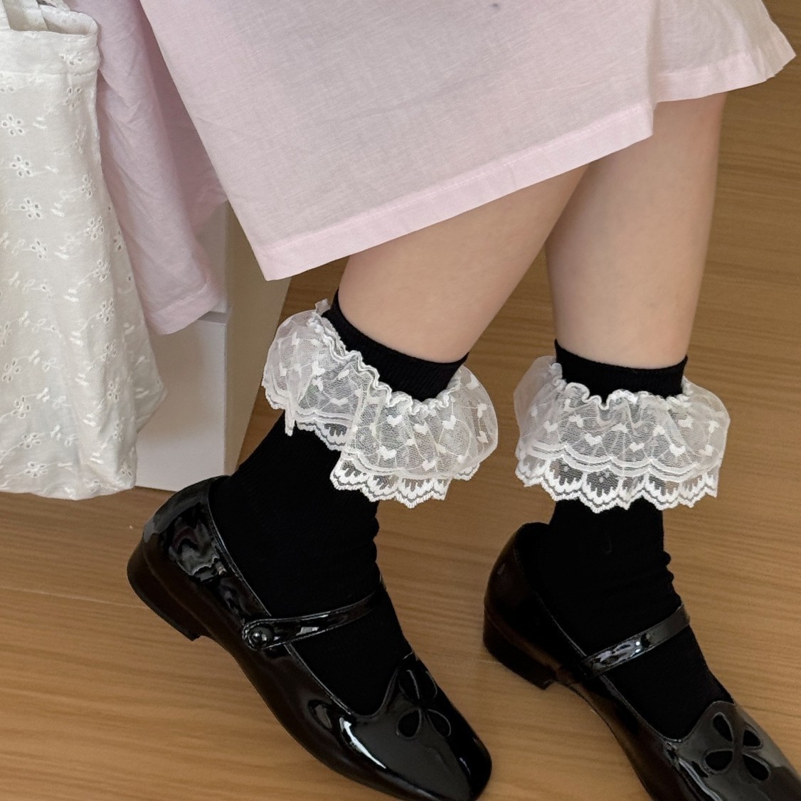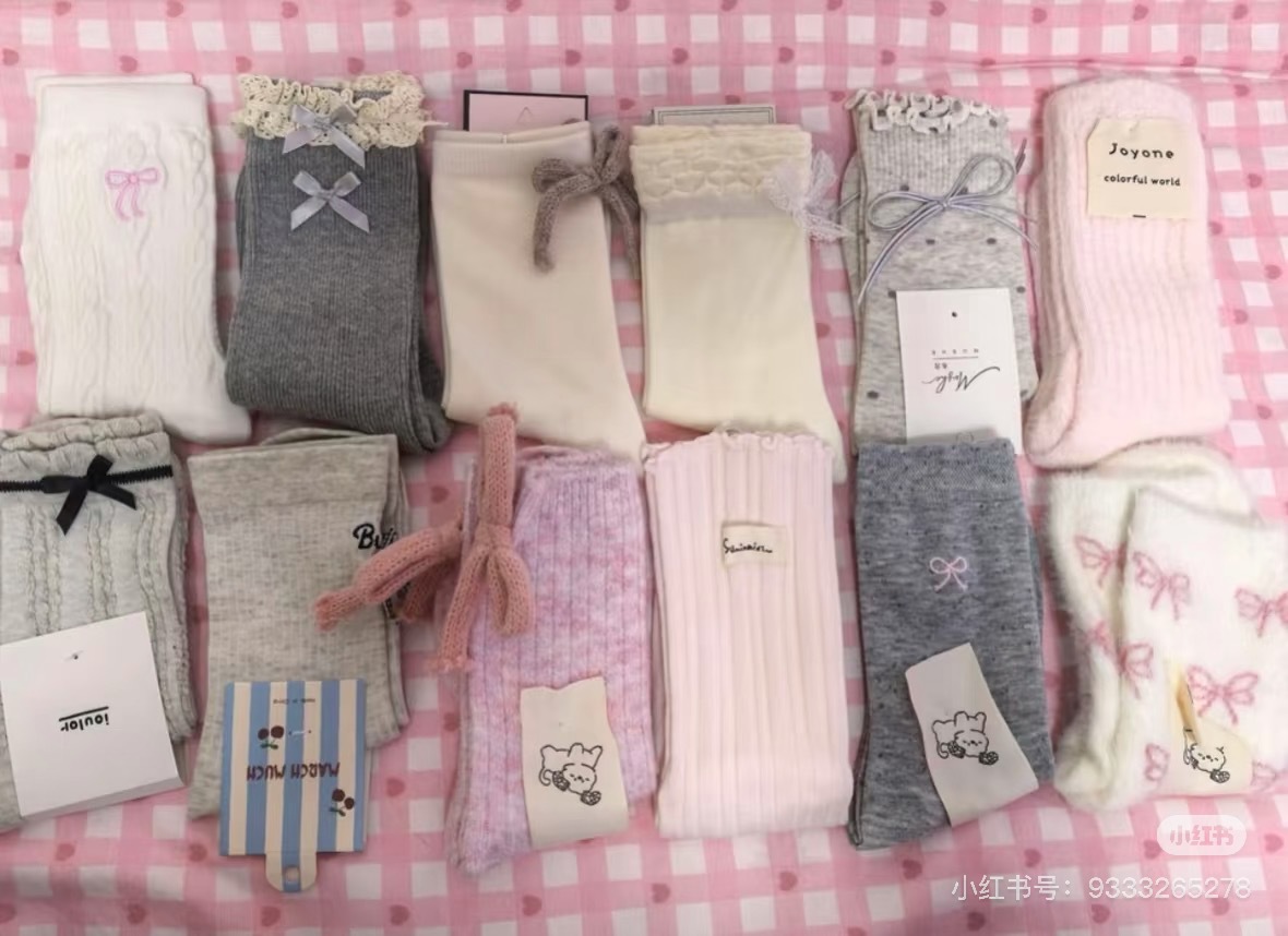 샤오홍슈 블로거가 추천하는 달콤한 소녀 JK 리본 메쉬 레이스 다용도 종아리 양말