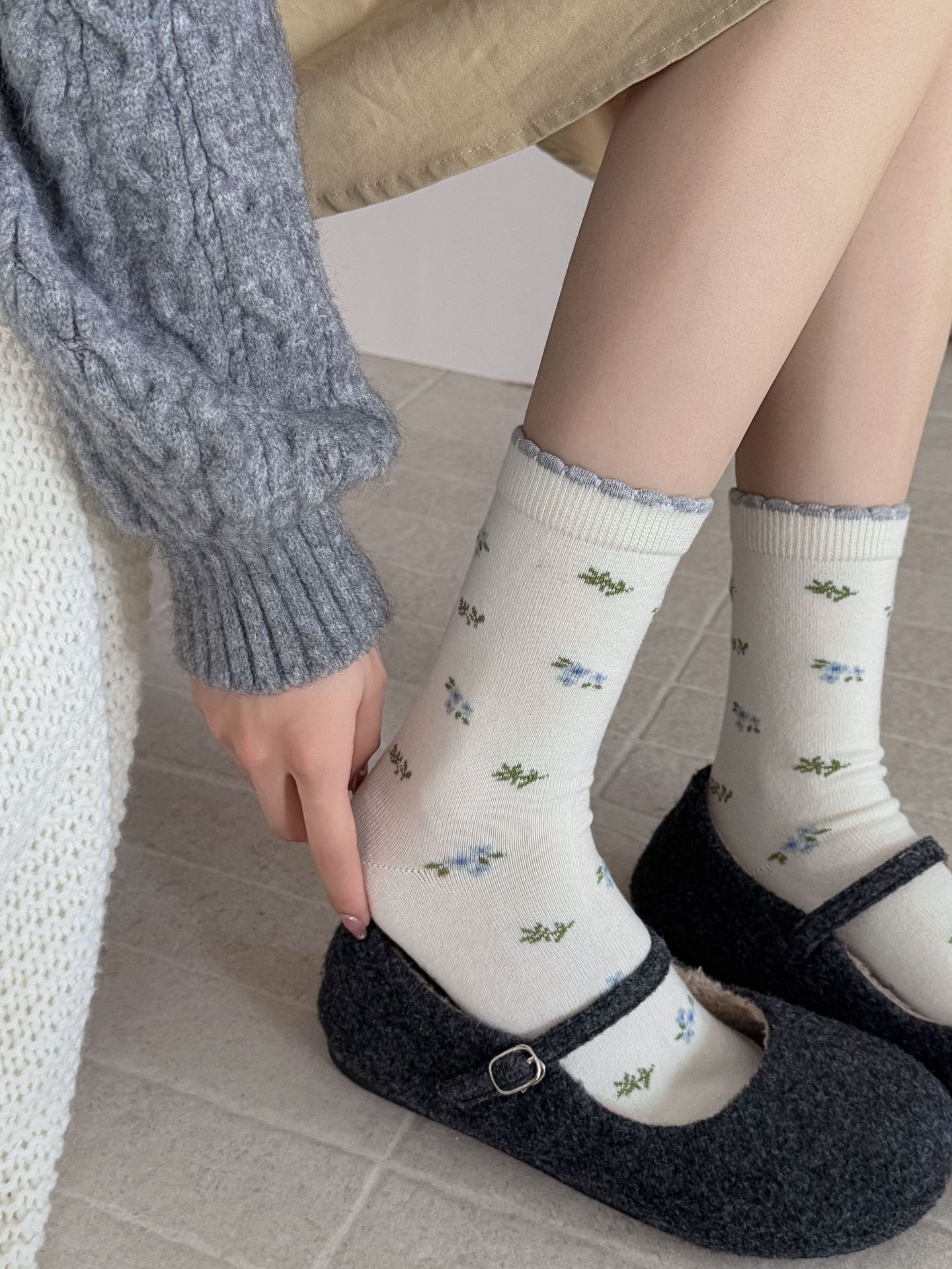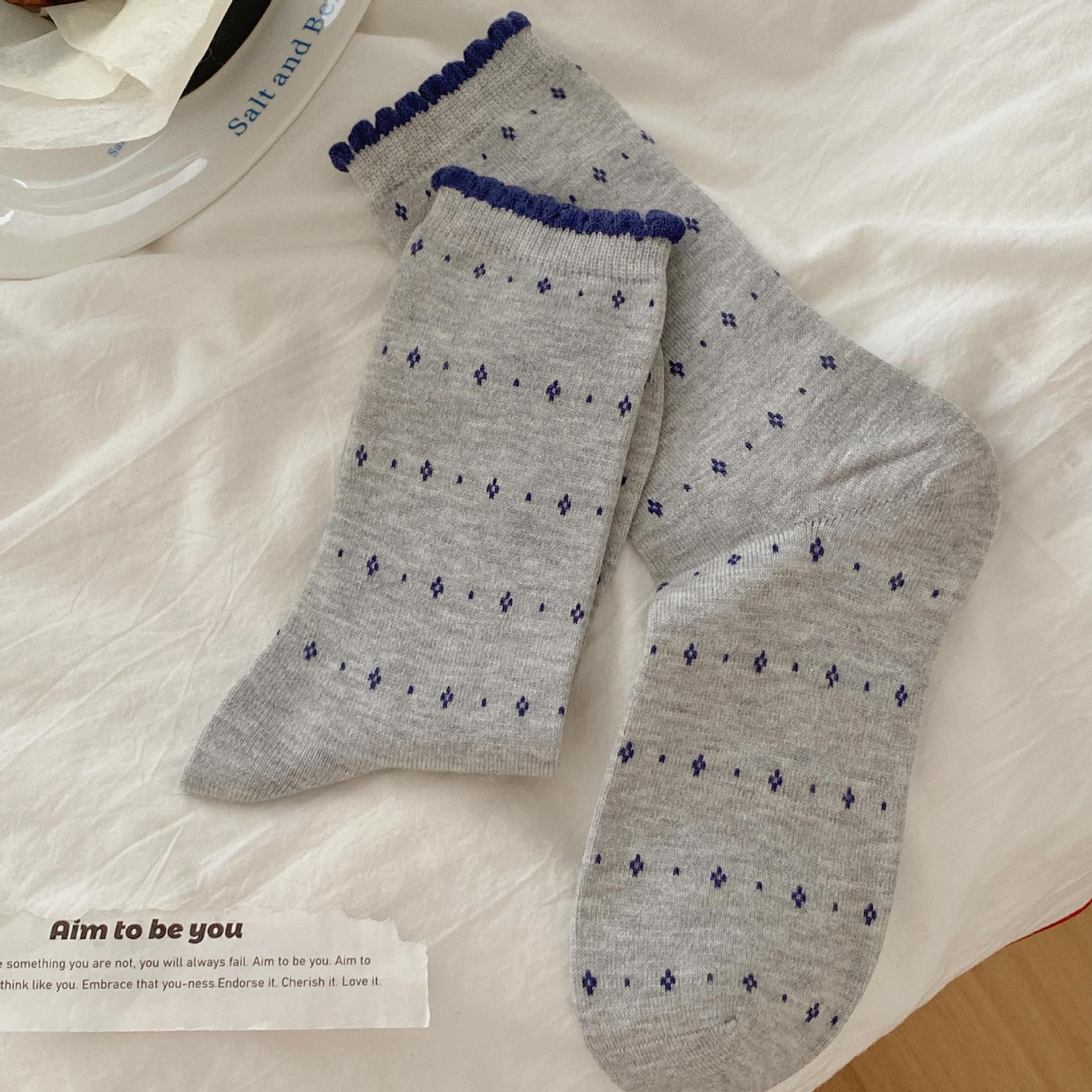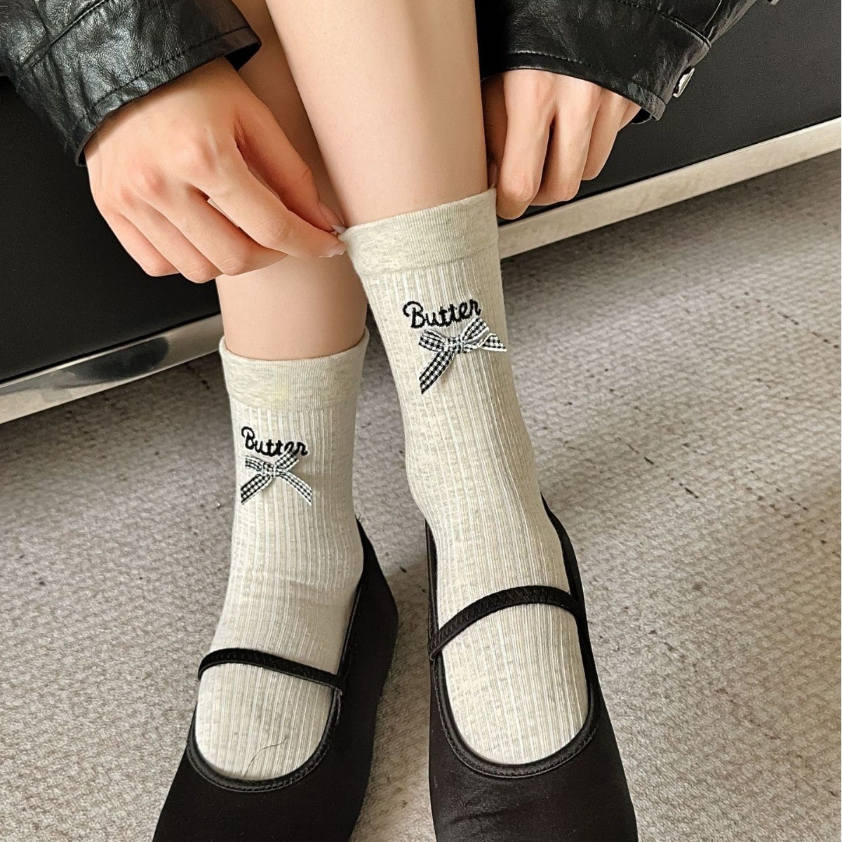 샤오홍슈 블로거가 추천하는 달콤한 소녀 JK 리본 메쉬 레이스 다용도 종아리 양말