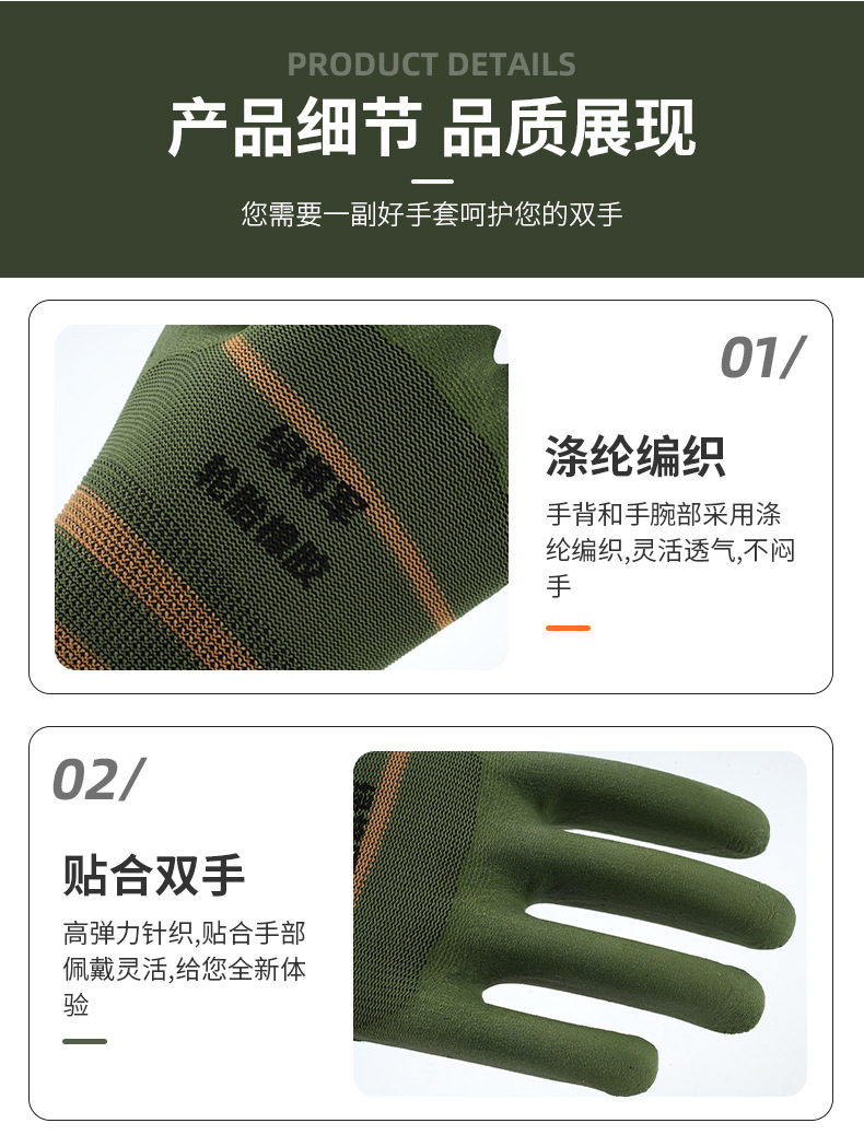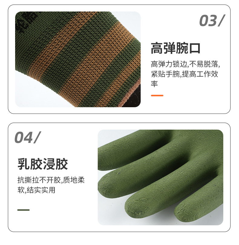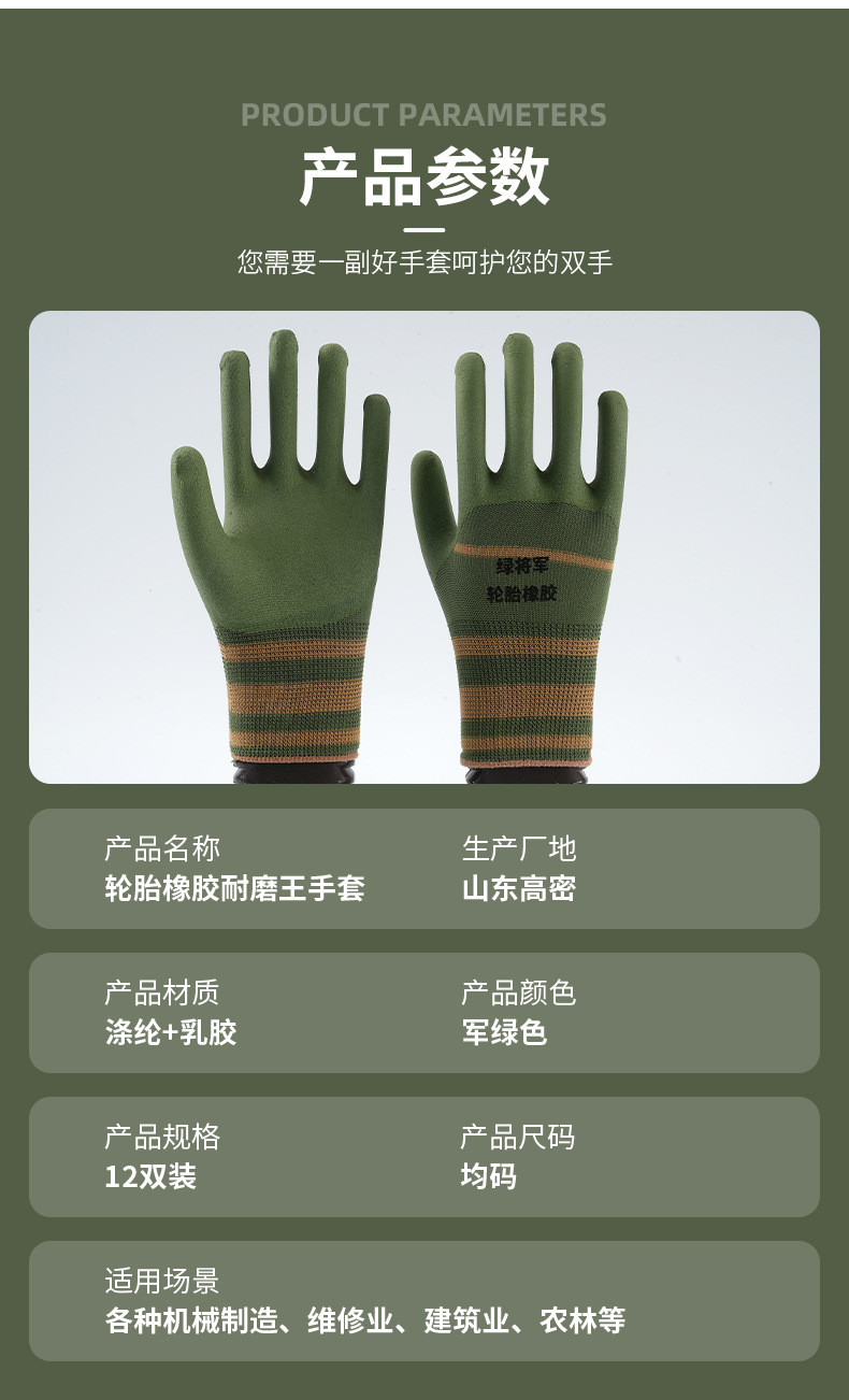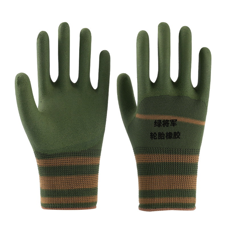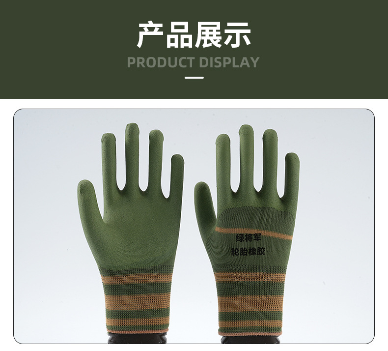 카키 타이어 고무 노동 보호 장갑 작업 내마모성 미끄럼 통기성 라텍스 두부 두꺼운 사이트 작업 장갑