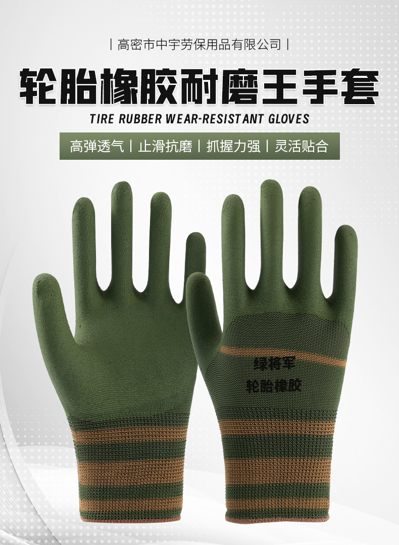 카키 타이어 고무 노동 보호 장갑 작업 내마모성 미끄럼 통기성 라텍스 두부 두꺼운 사이트 작업 장갑스토어 가기