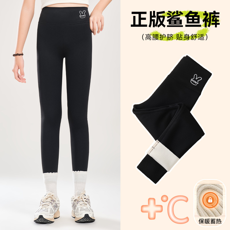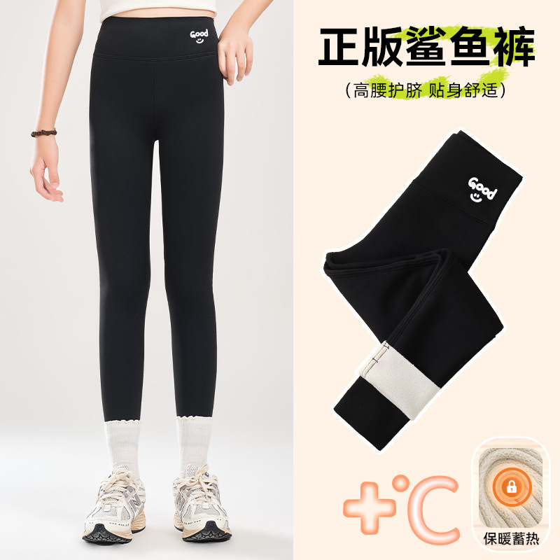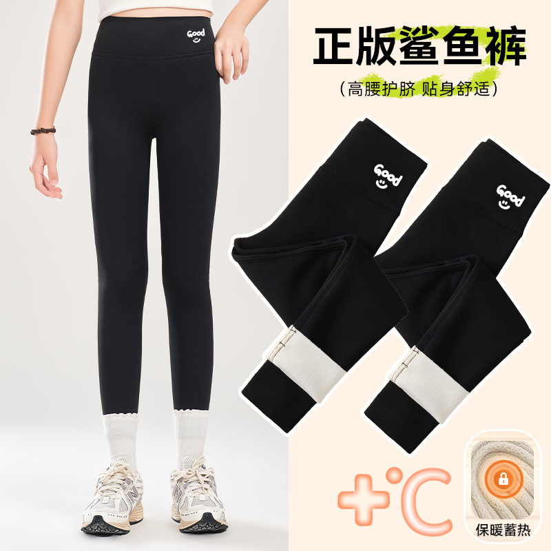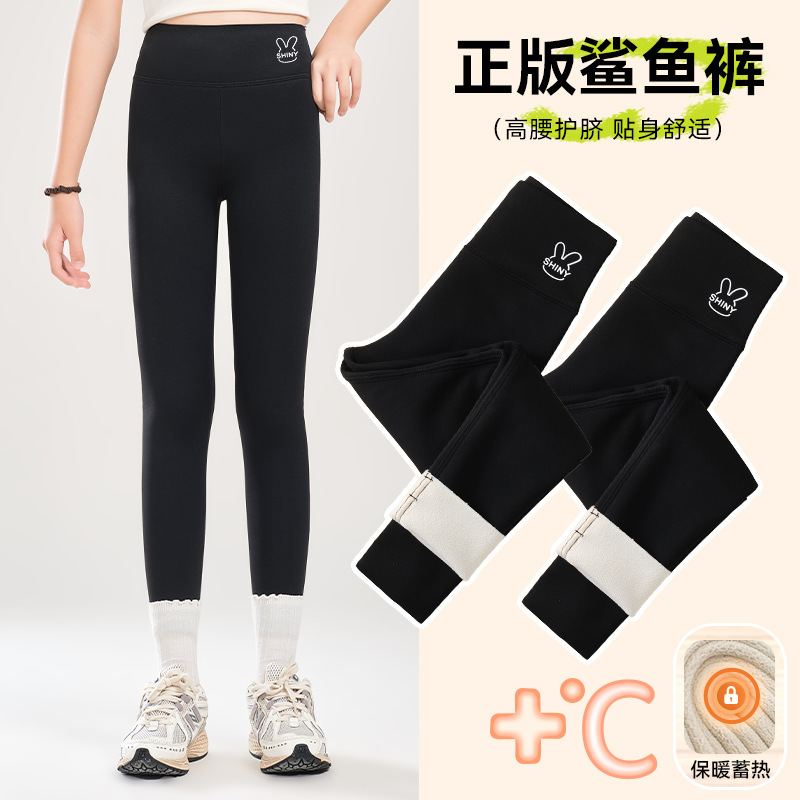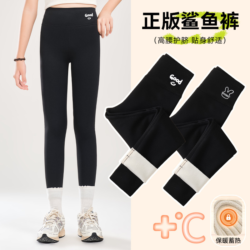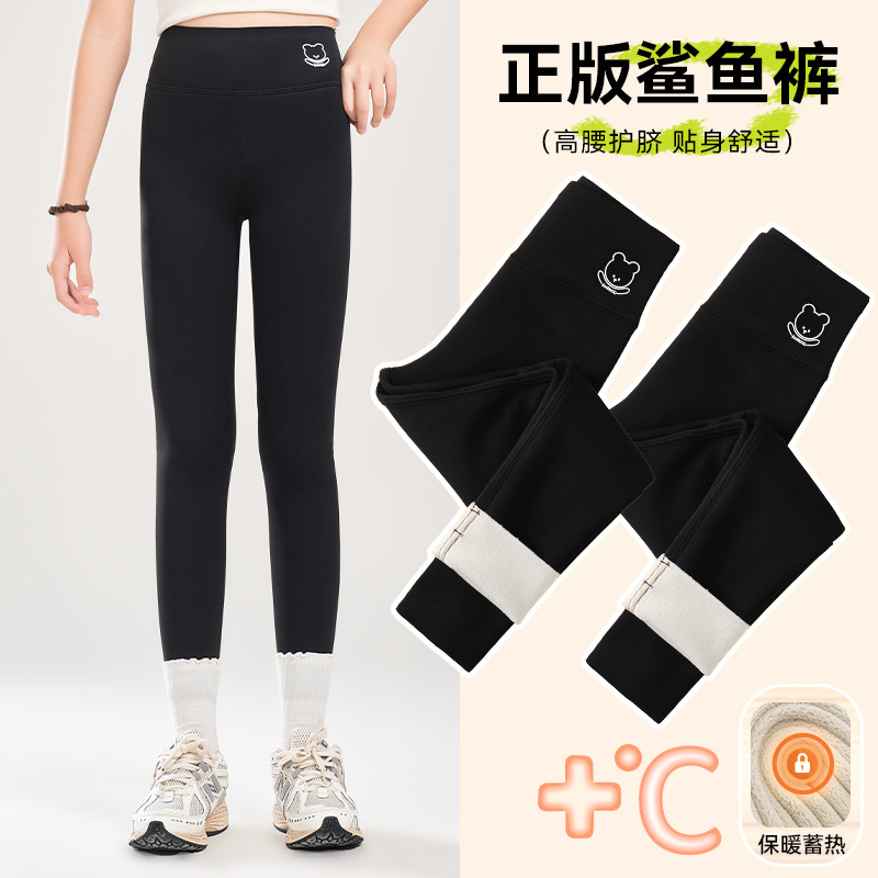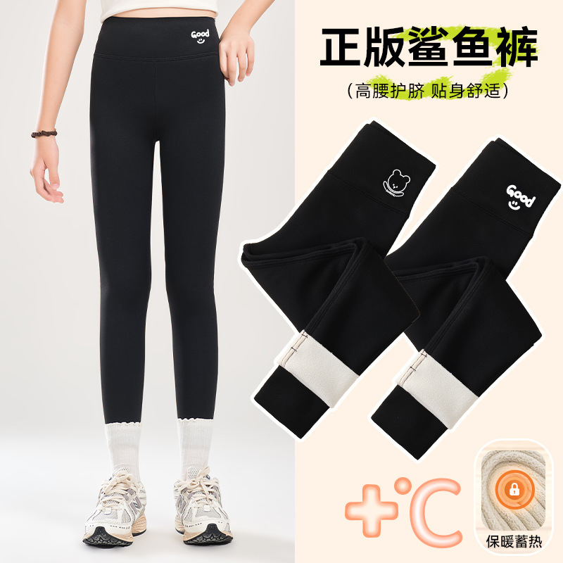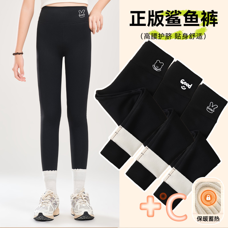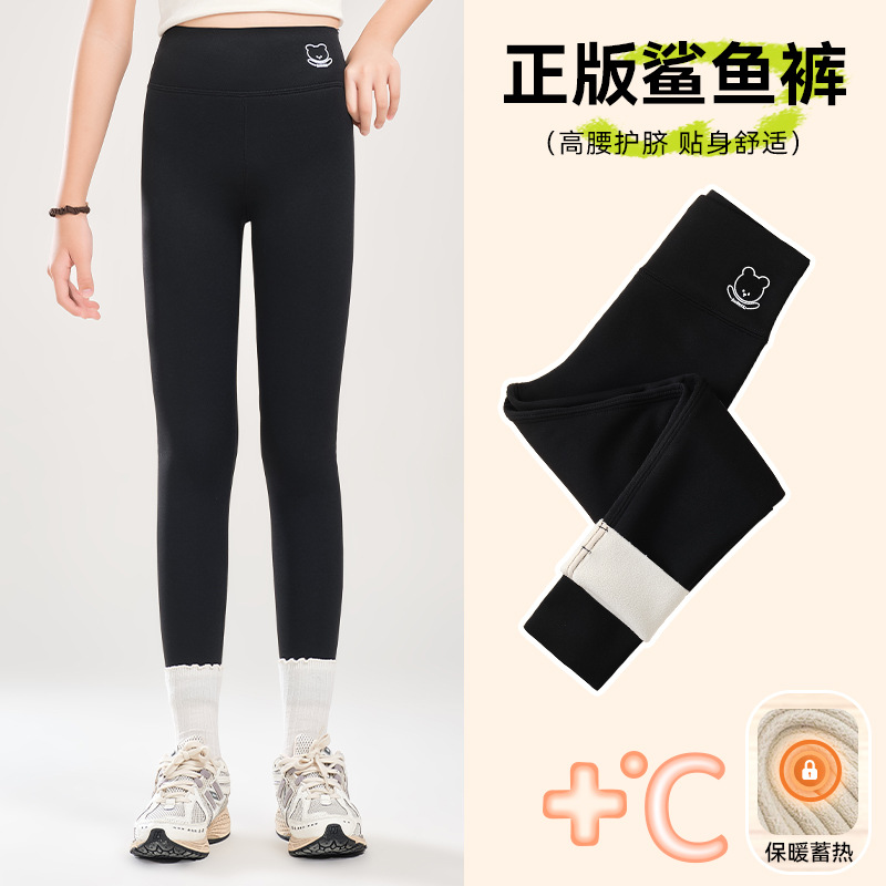 소녀 기모 상어 바지 어린이 높은 허리 요가 바지 슬림 한 중간 크기의 어린이 겨울 두껍게 보이는 외부 착용 바비 바지