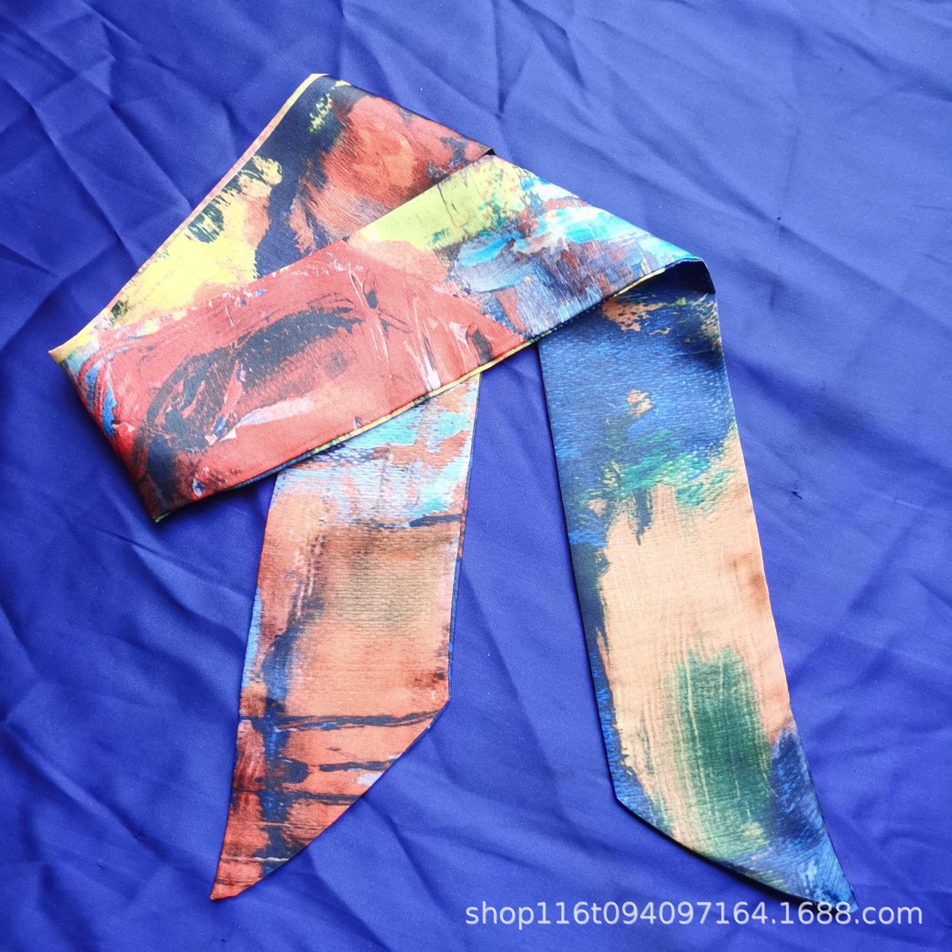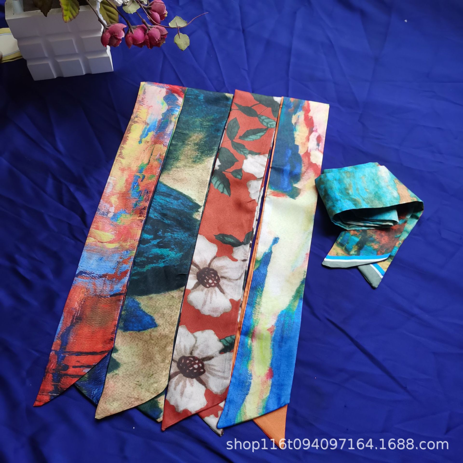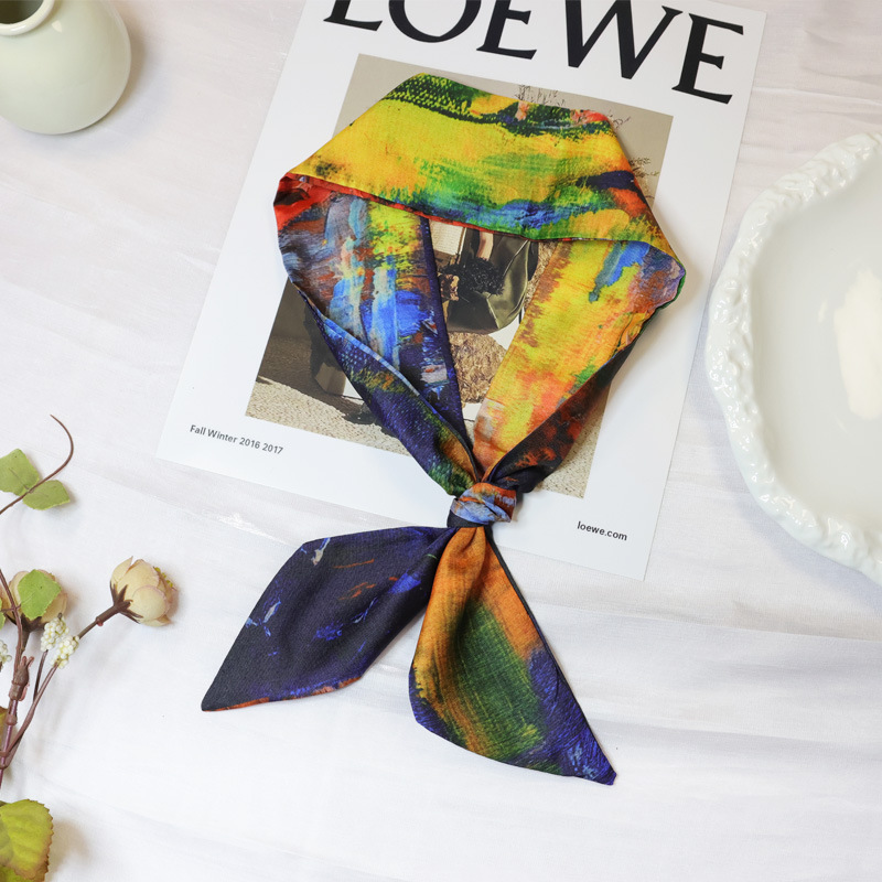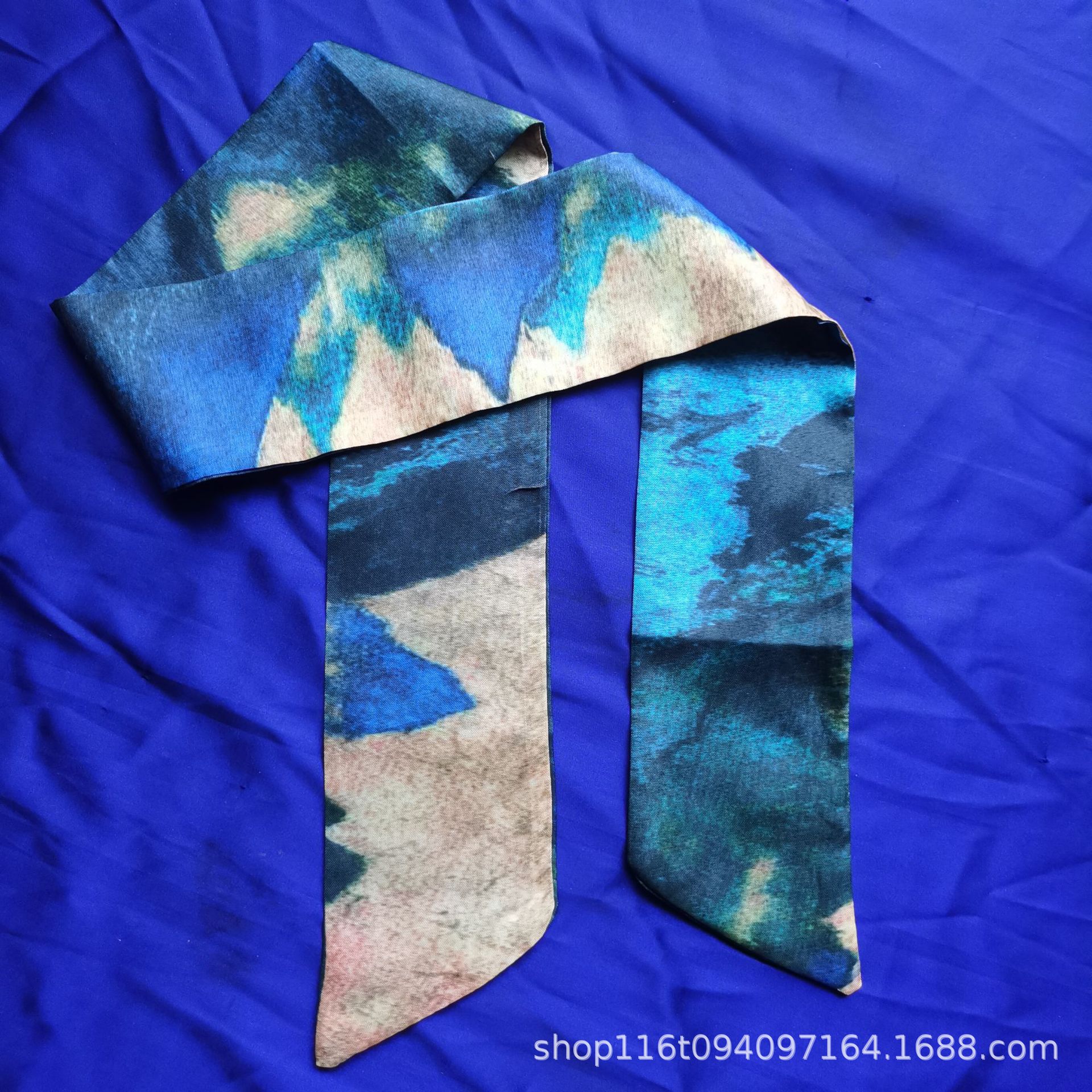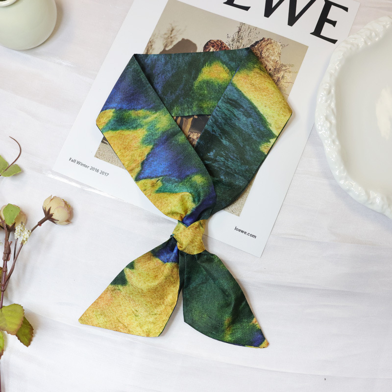 빈티지 중국 스타일 유화 실크 스카프 헤어 밴드 유연한 활 리본 헤어 로프 여성 헤어 로프 타잉 백