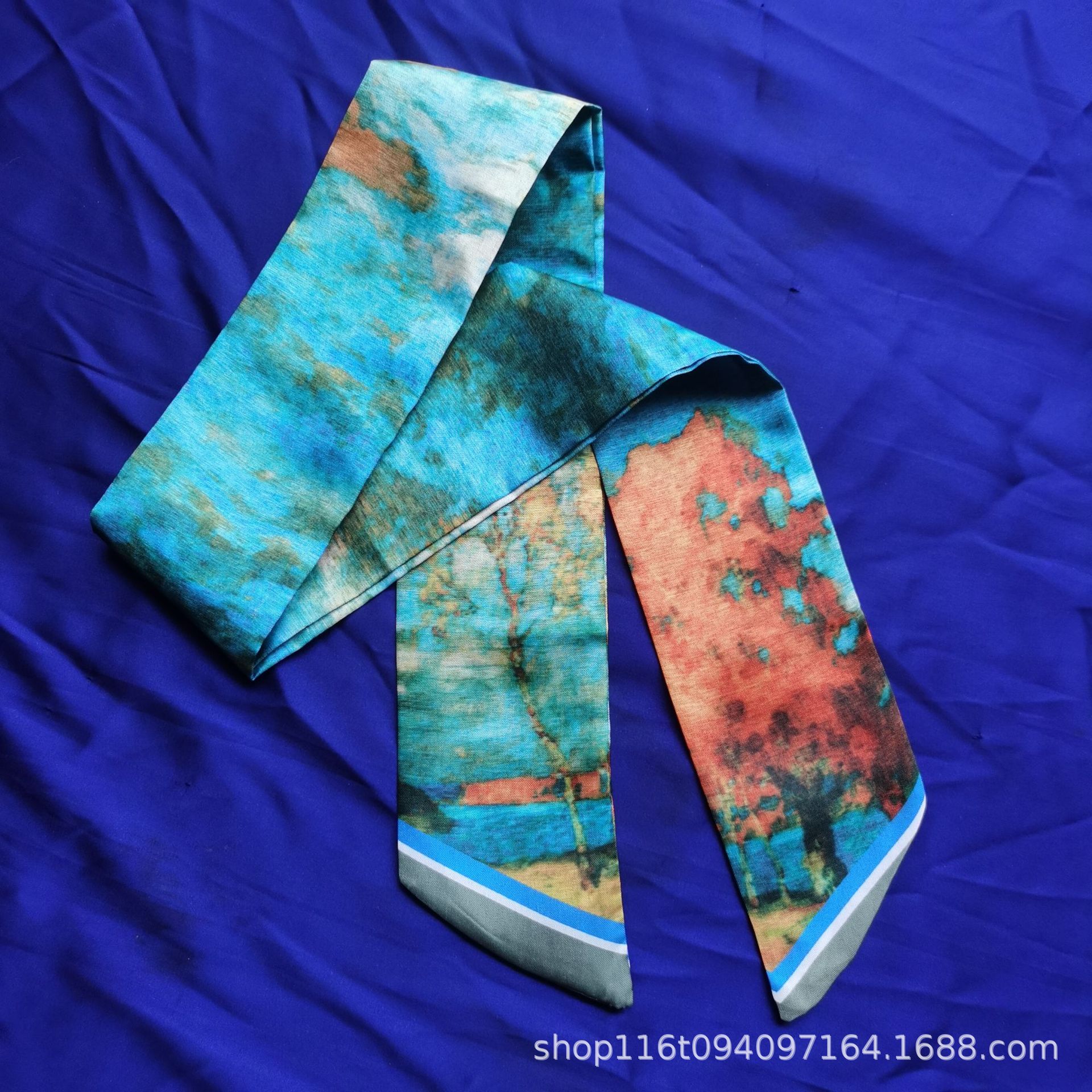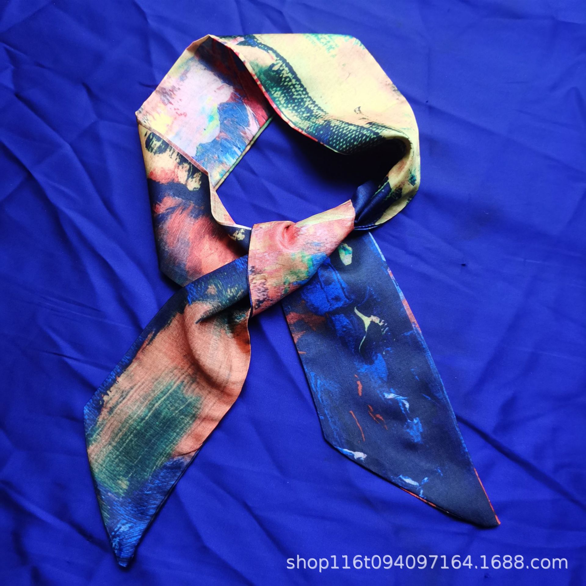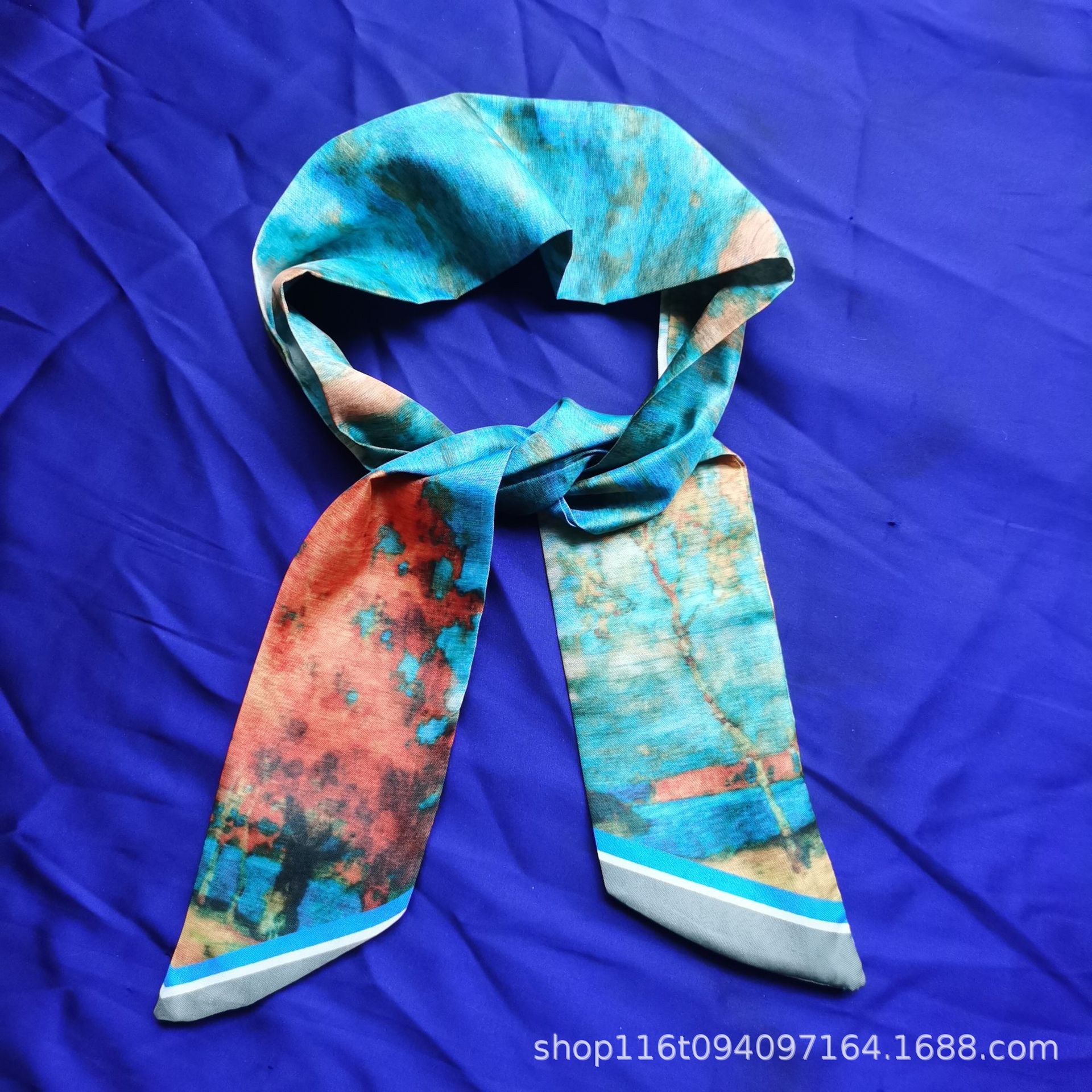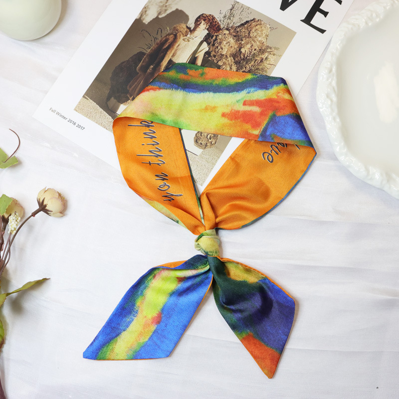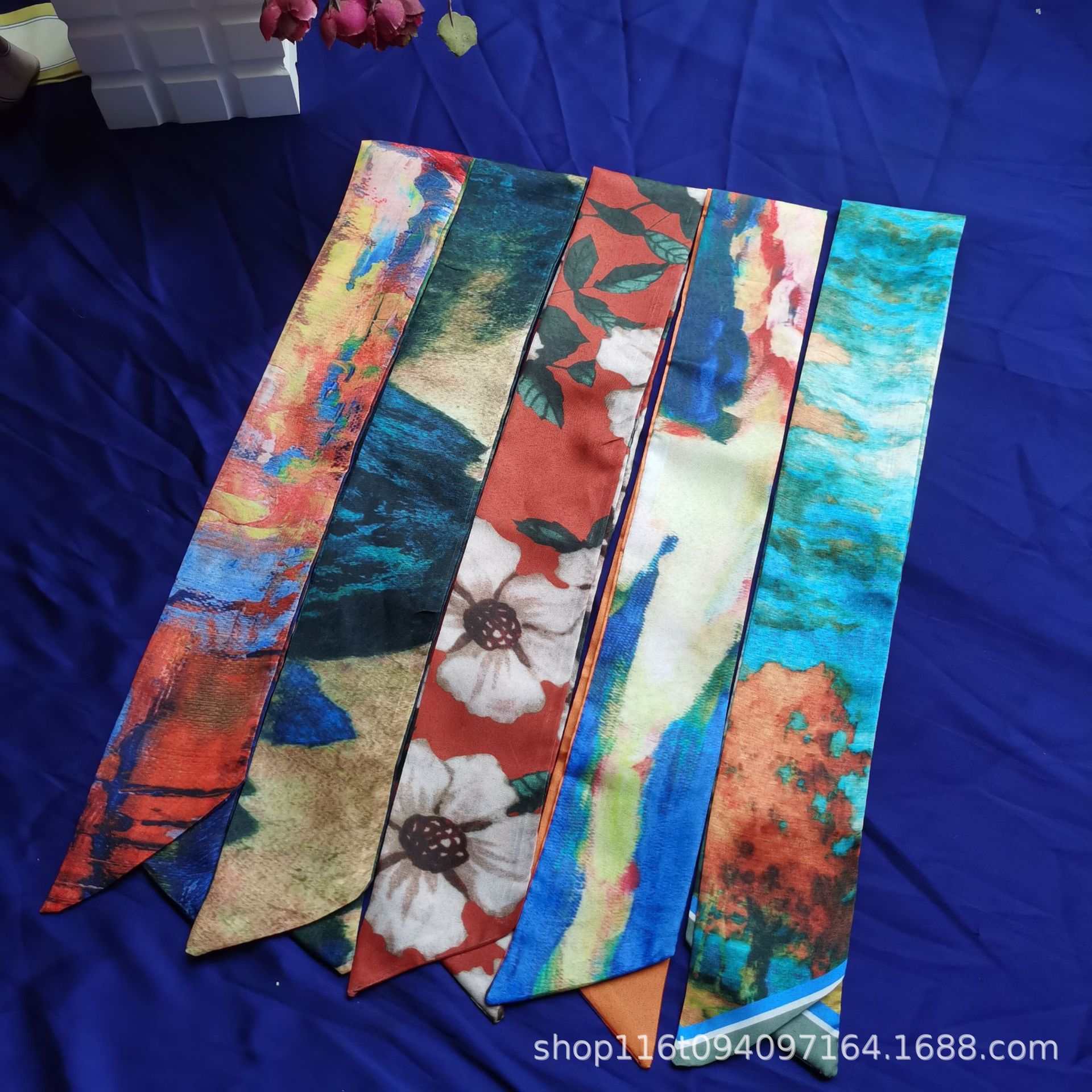 빈티지 중국 스타일 유화 실크 스카프 헤어 밴드 유연한 활 리본 헤어 로프 여성 헤어 로프 타잉 백