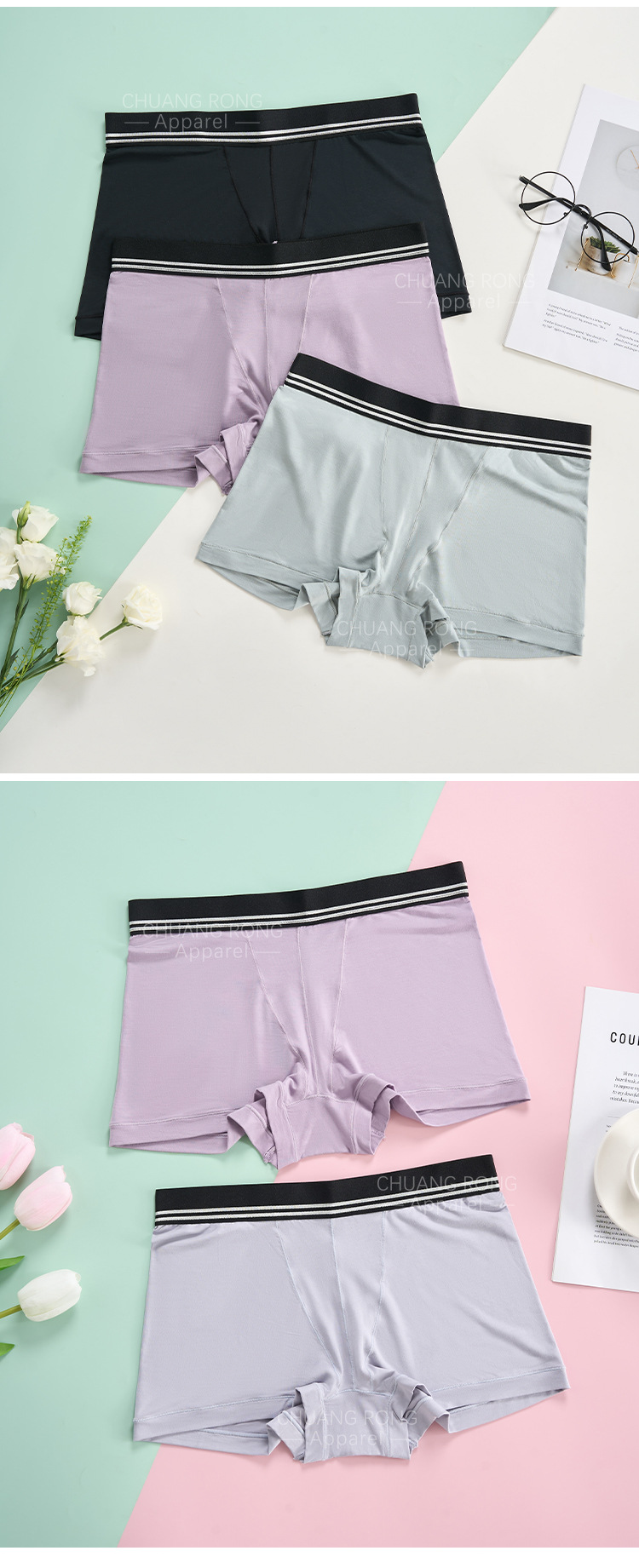 크로스보더 모달 여성용 사각팬티, 대형 사이즈, 통기성 좋고 편안한 고탄력 순면 가랑이, 플랫 코너 반바지 팬티