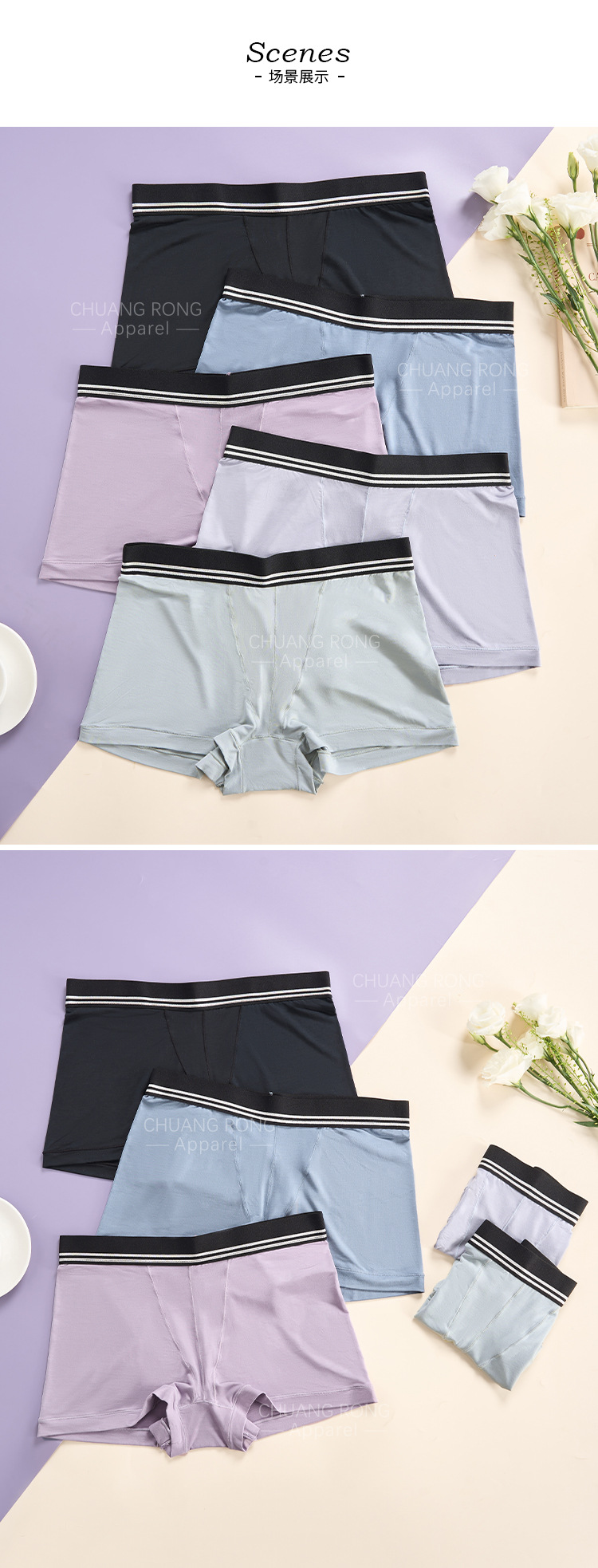 크로스보더 모달 여성용 사각팬티, 대형 사이즈, 통기성 좋고 편안한 고탄력 순면 가랑이, 플랫 코너 반바지 팬티스토어 가기