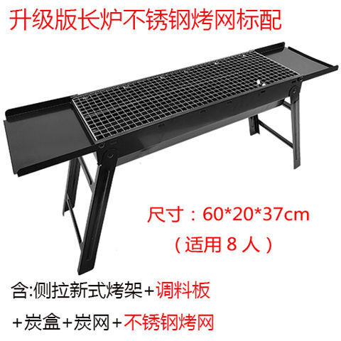 • 측면 확장 난로(60*20*37cm) - 블랙 스틸 패키지 2: 스테인레스 스틸 메쉬 + 7종 세트