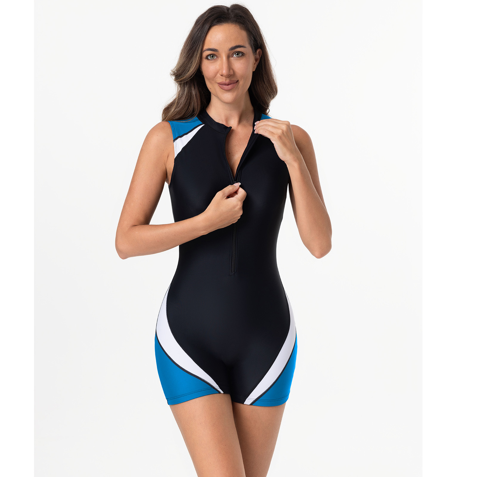 2025 새로운 유럽과 미국의 대외 무역 패션 원피스 민소매 조끼 선스크린 여성 솔리드 컬러 수영복 수영복