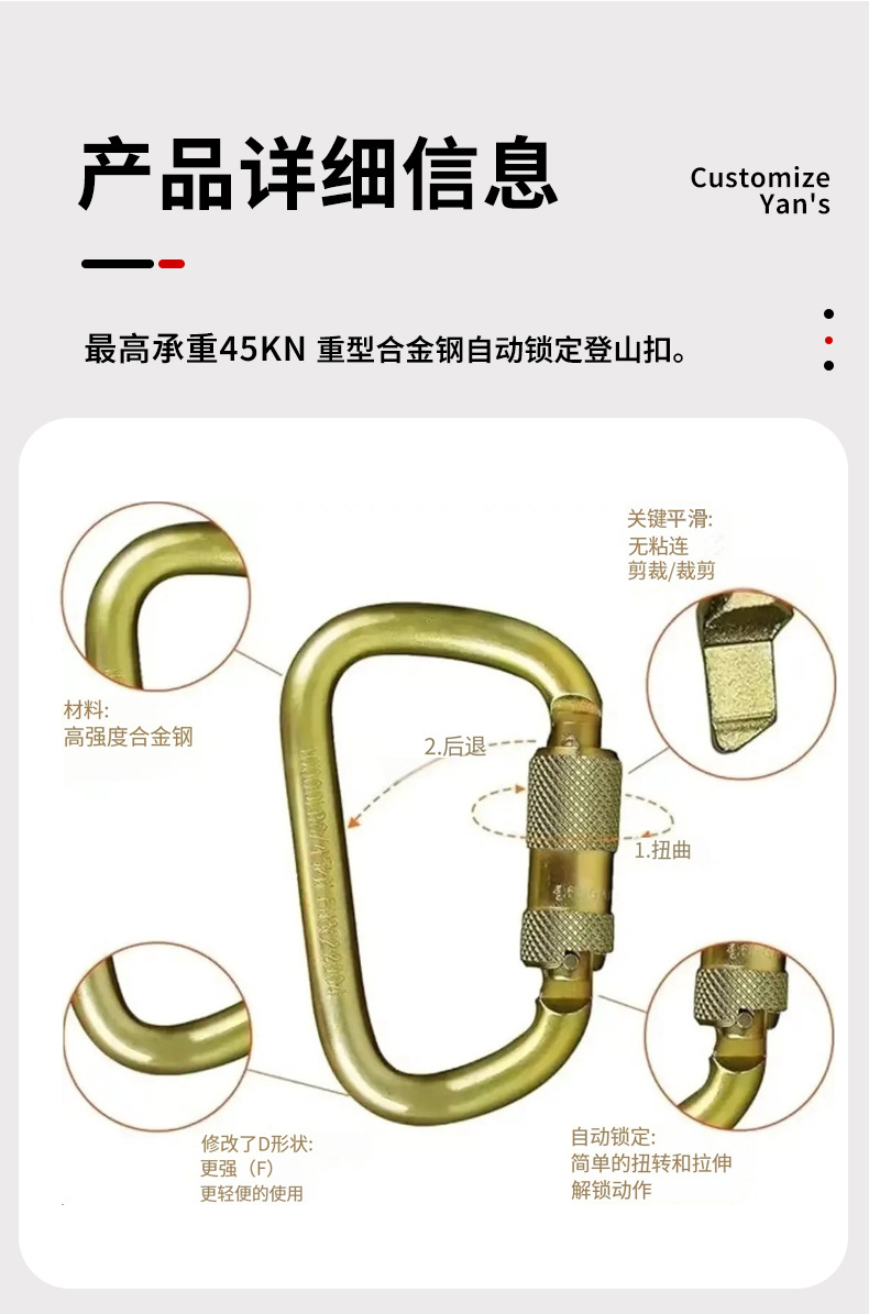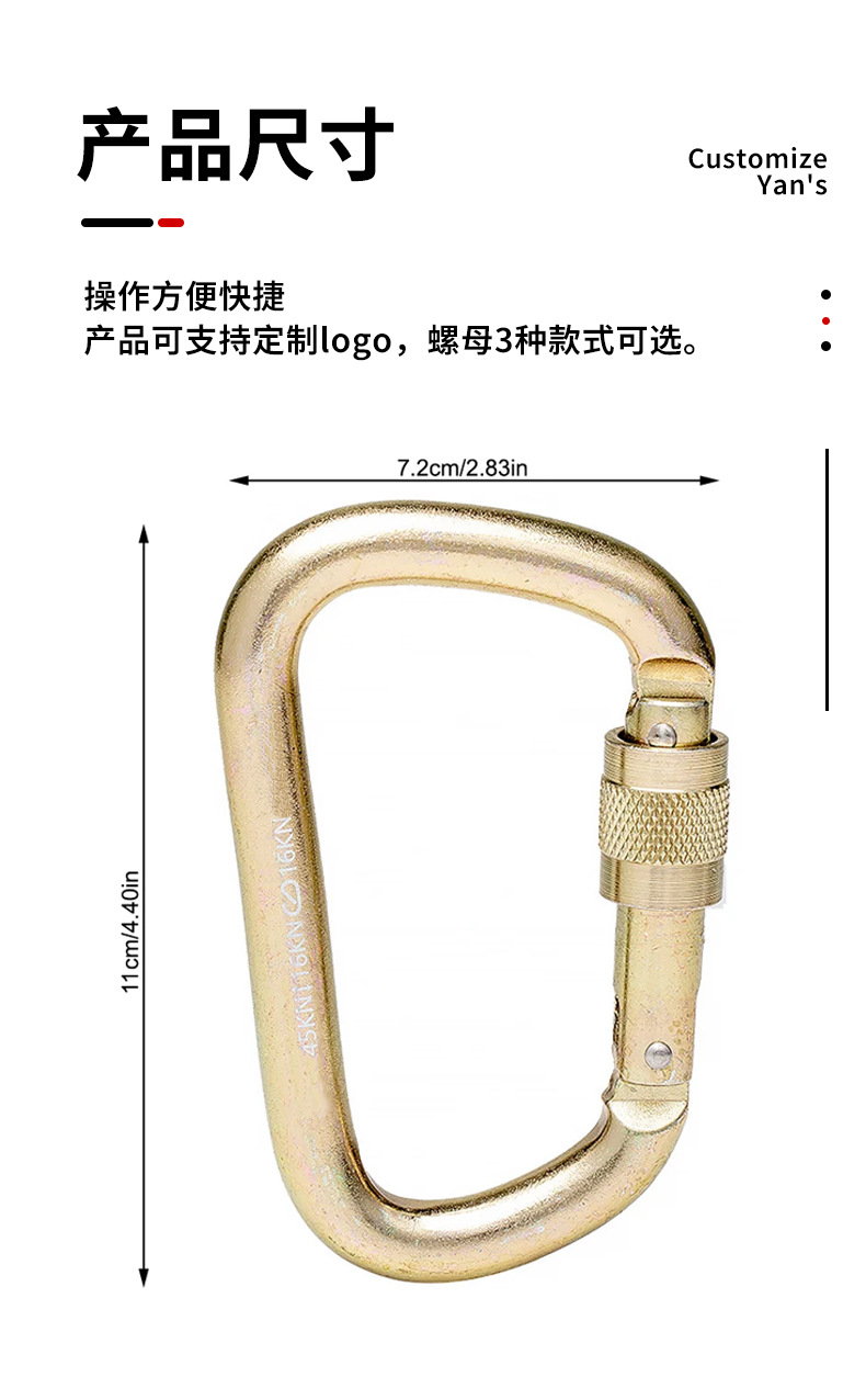국경 간 야외 공중 작업 높은 하중 베어링 45KND 유형 버클 후크 안전 버클 낙하 방지 스프링 버클 하드웨어