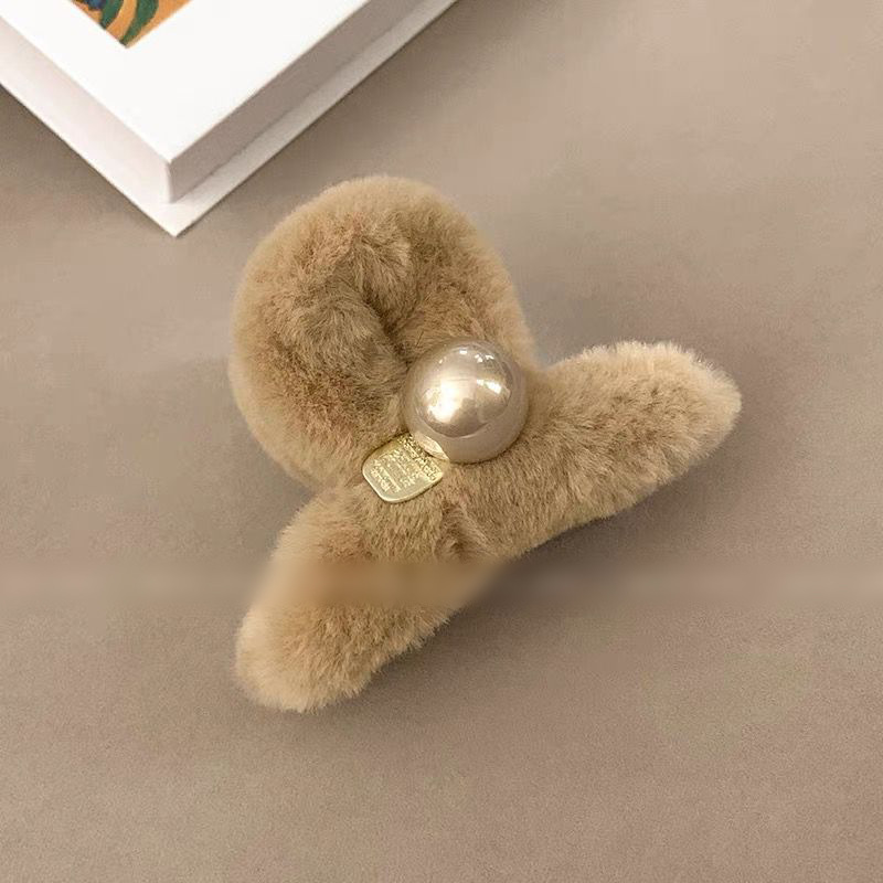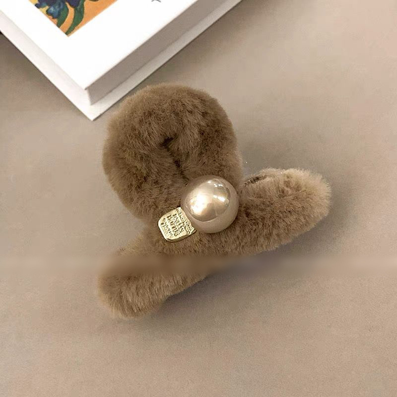 • 모조 토끼털 진주 장식#브라운(13cm)