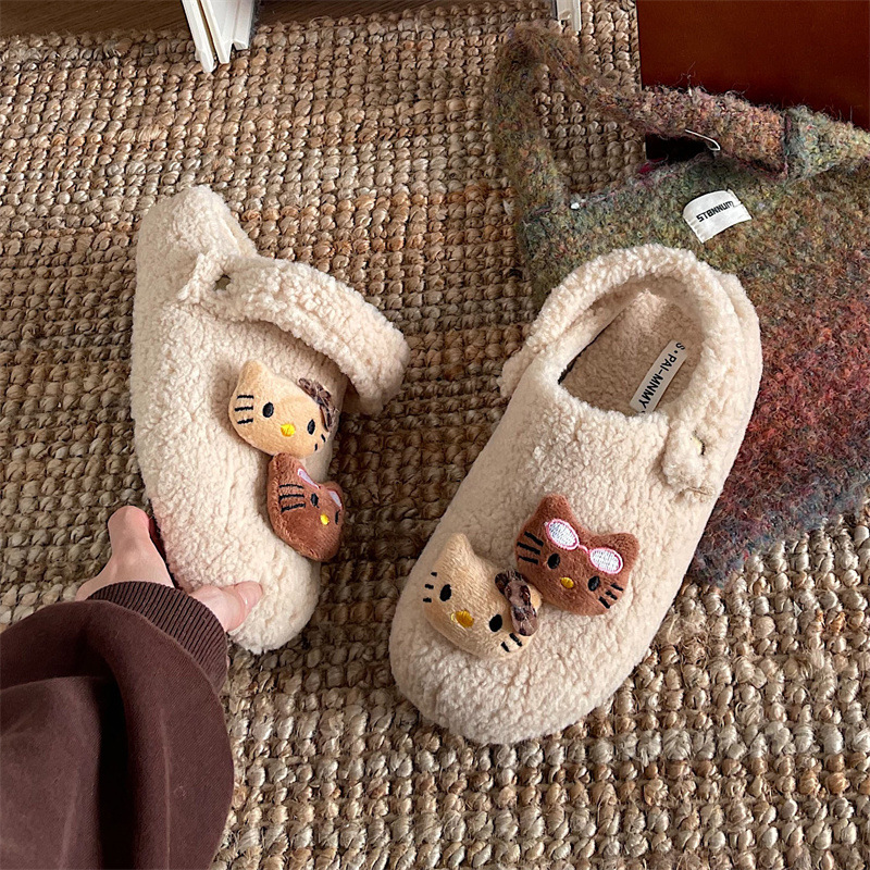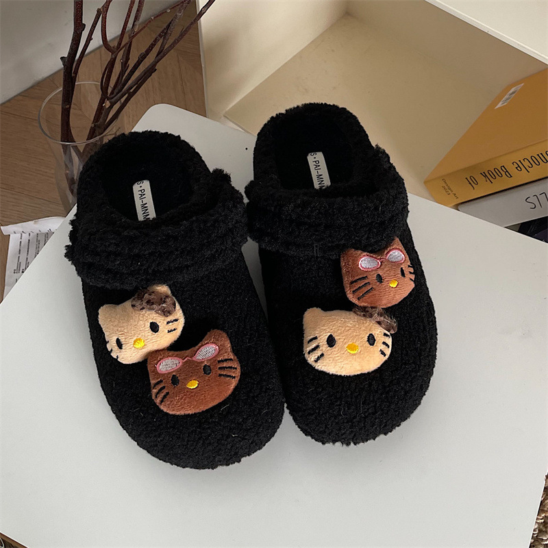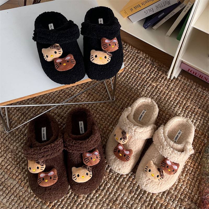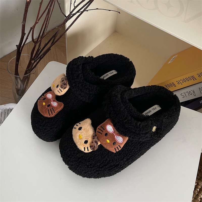 만화 귀여운 인터넷 축하 두꺼운 바닥 마오 마오 마오 슬리퍼 여성 외부 착용 2024 새로운 가을과 겨울 높은 높이 기모 따뜻한 바오 터우 슬리퍼