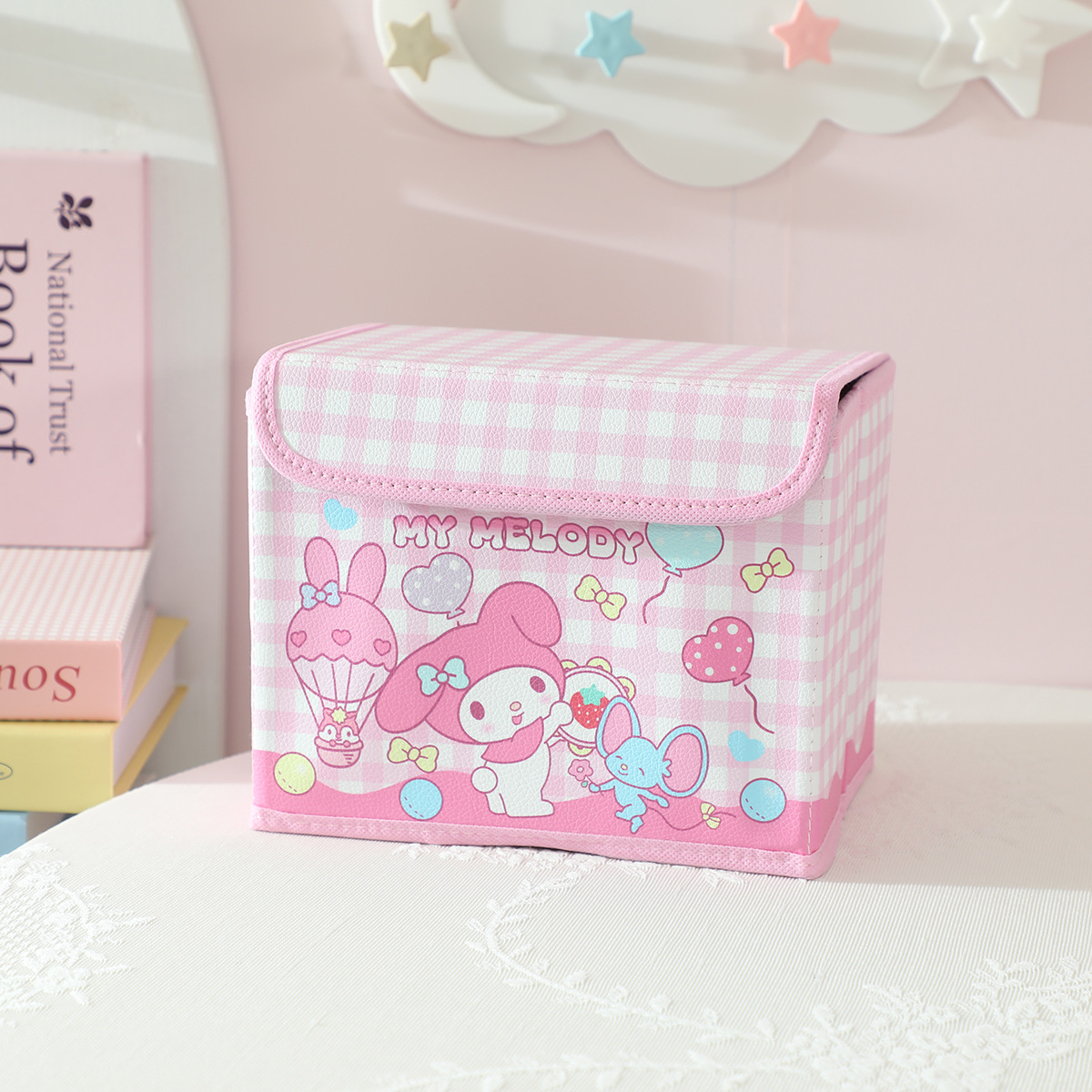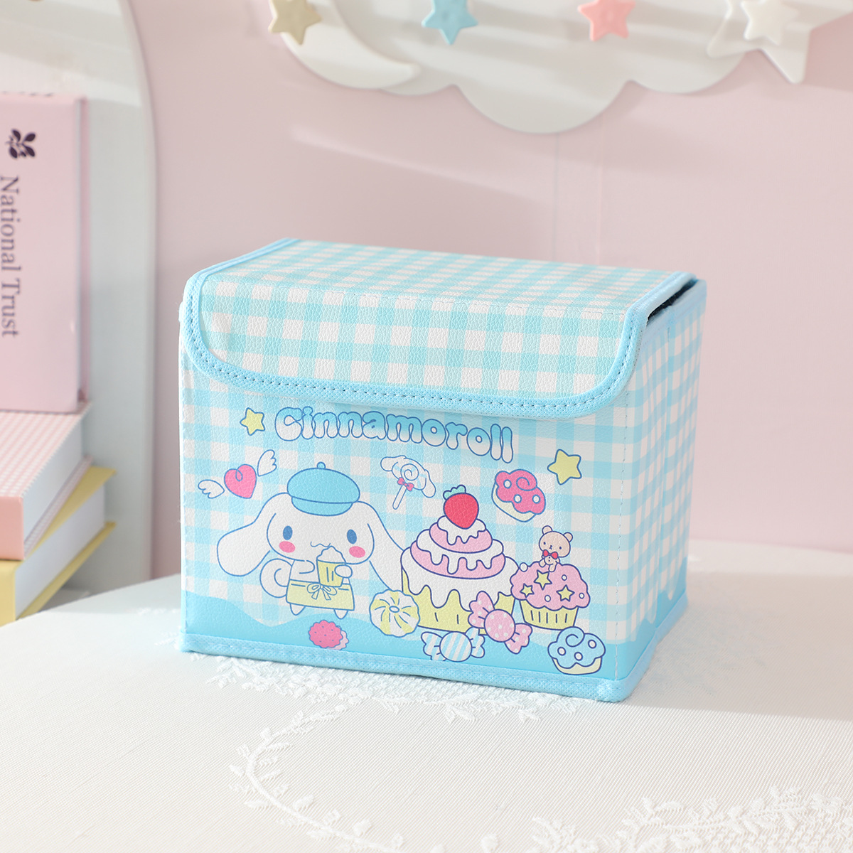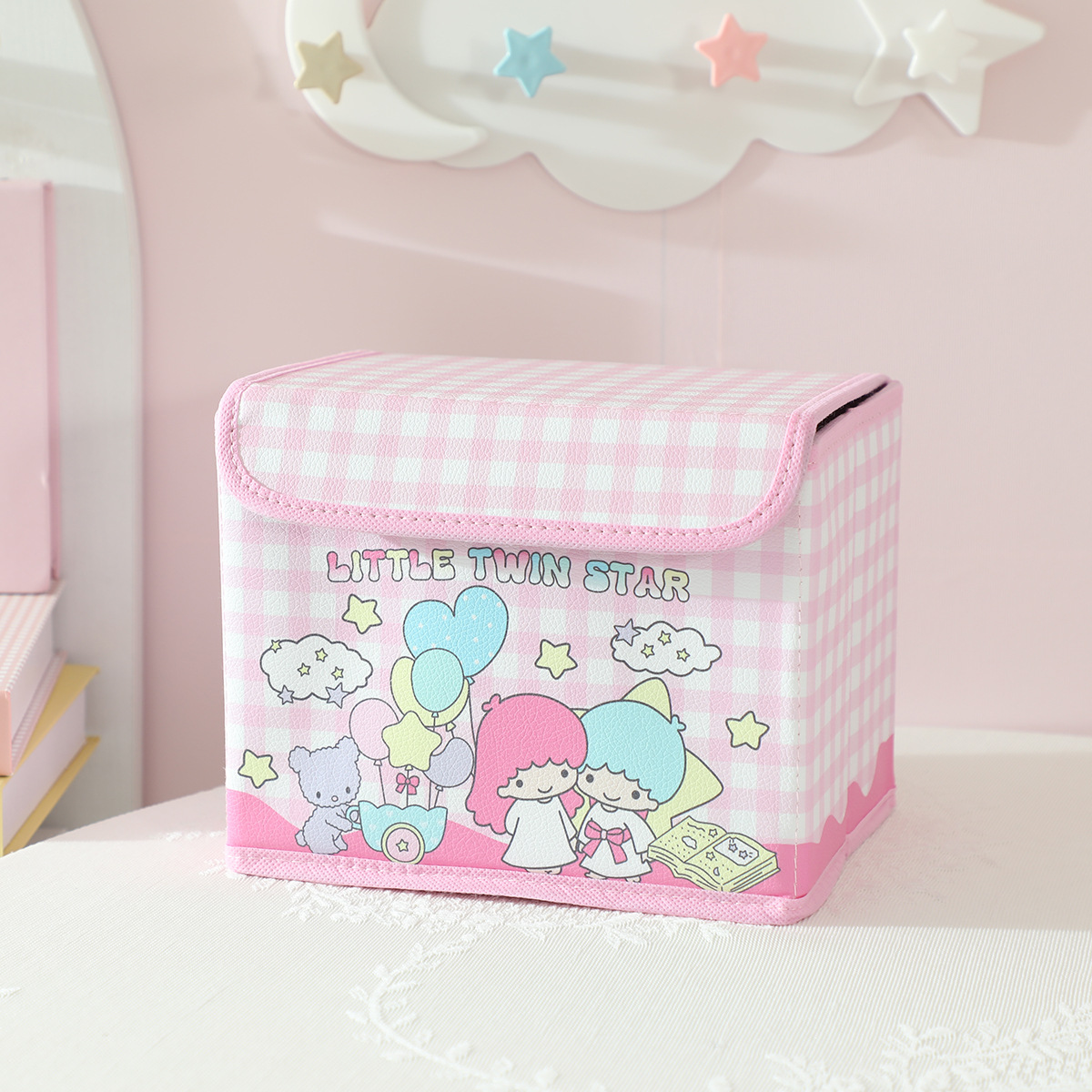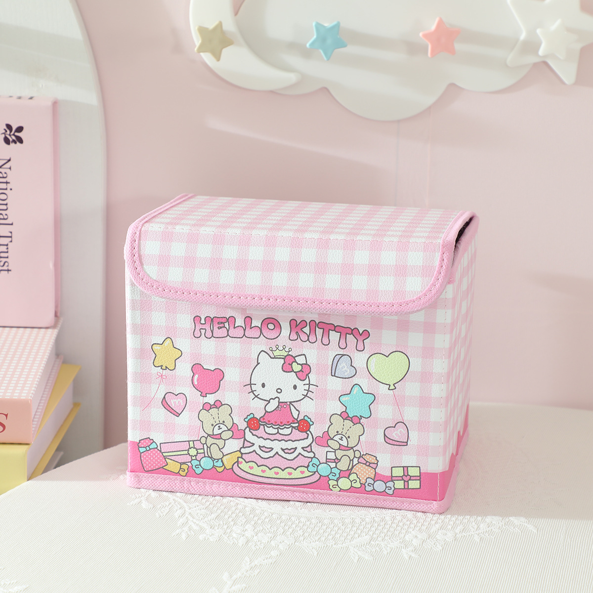 귀여운 소녀 심장 격자 무늬 만화 PU 방진 데스크탑 화장품 보관 상자 접이식 기숙사 잡화 상자스토어 가기