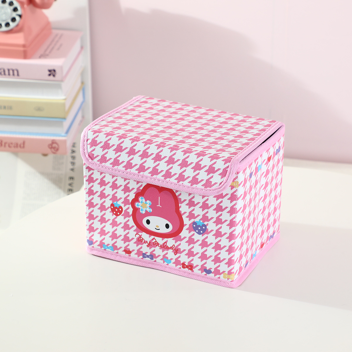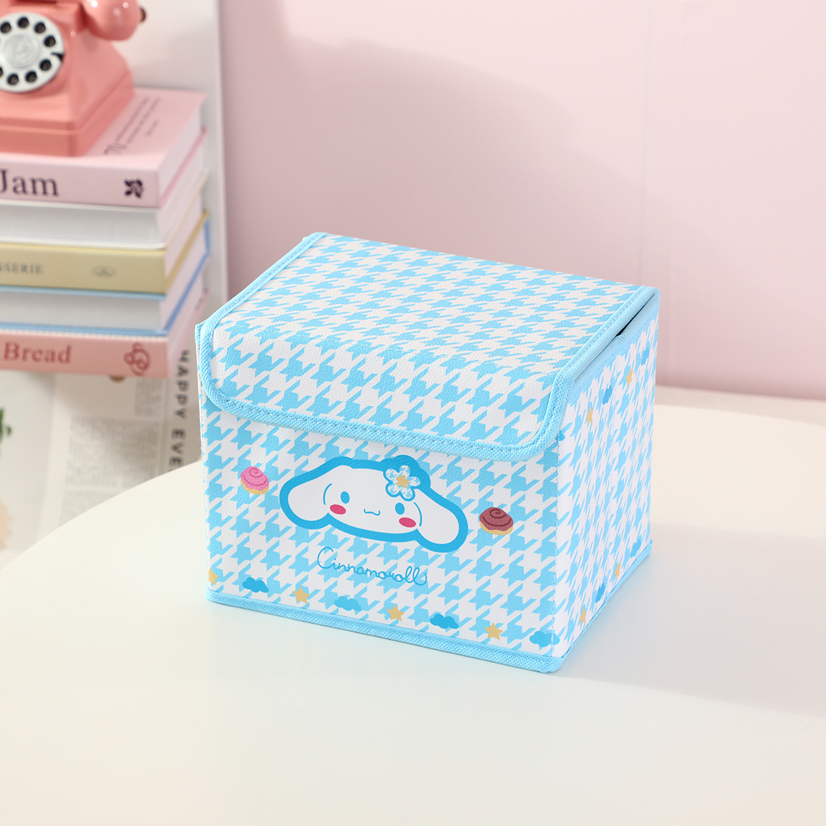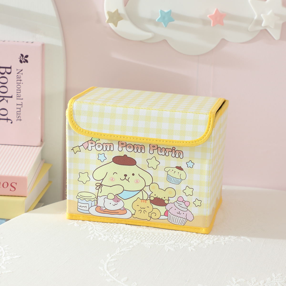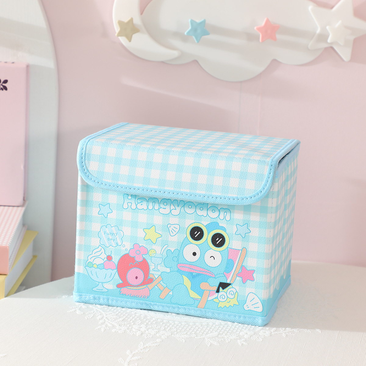 귀여운 소녀 심장 격자 무늬 만화 PU 방진 데스크탑 화장품 보관 상자 접이식 기숙사 잡화 상자스토어 가기
