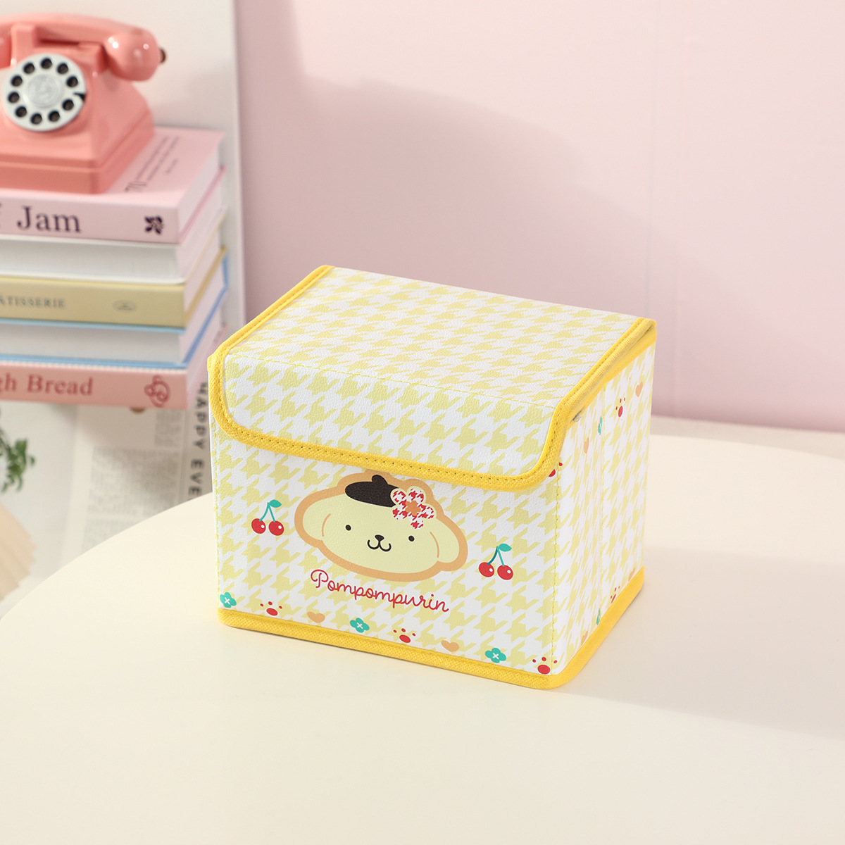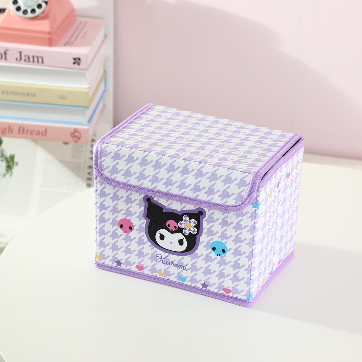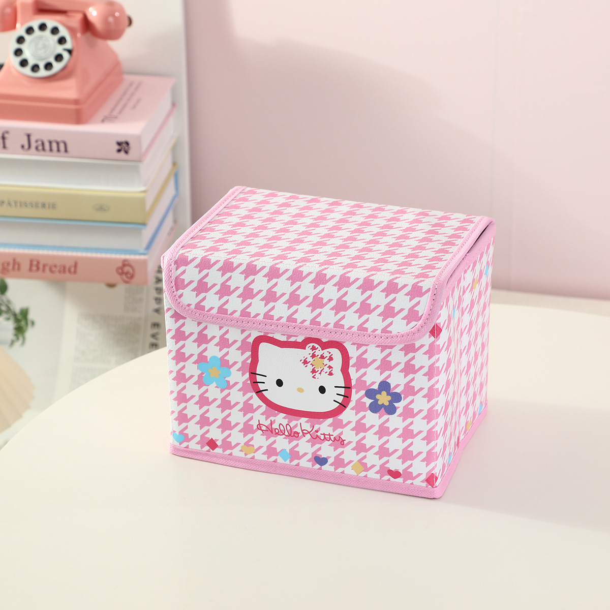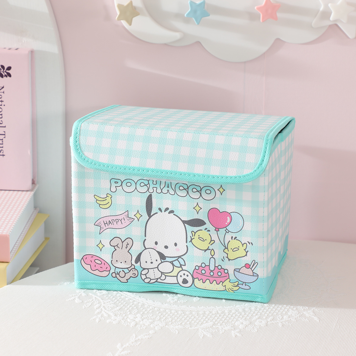 귀여운 소녀 심장 격자 무늬 만화 PU 방진 데스크탑 화장품 보관 상자 접이식 기숙사 잡화 상자스토어 가기