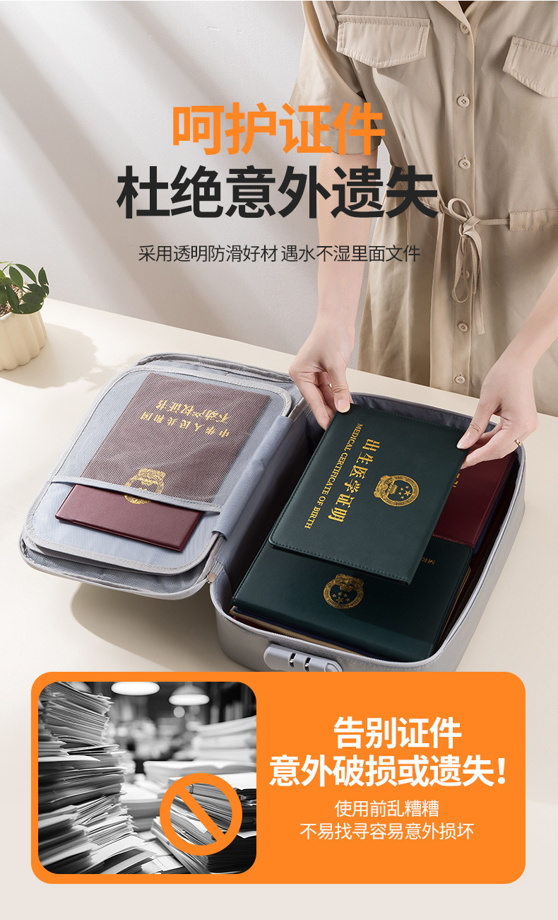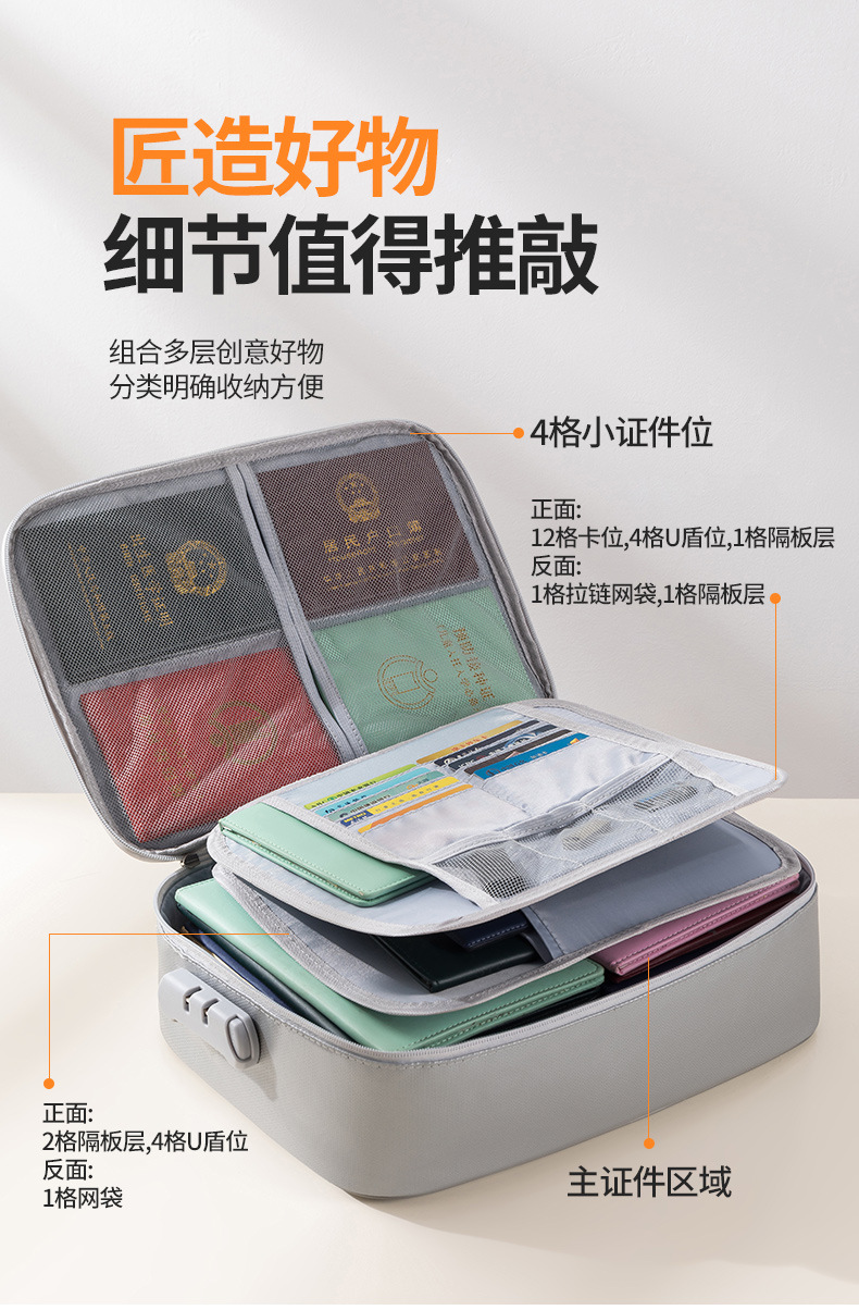 방화 인증서 가방 대용량 저장 가방 다기능 문서 제출 가방 여권 파일 가방 잠금 여행 가방스토어 가기