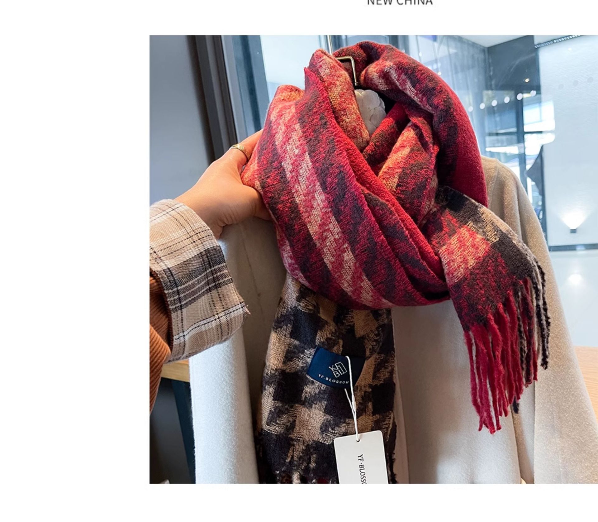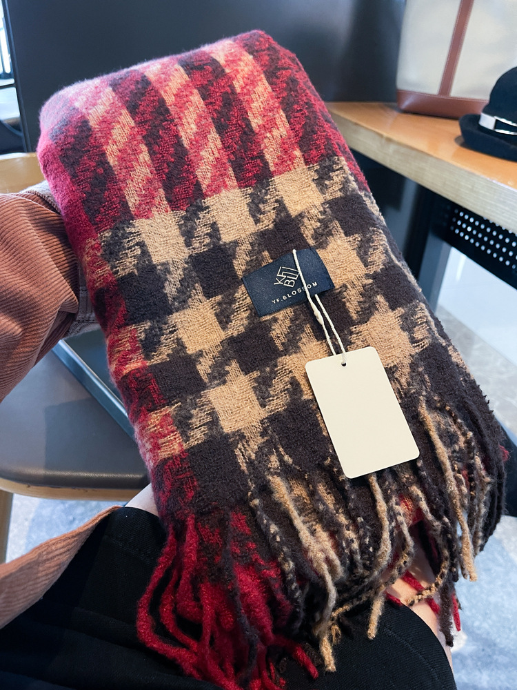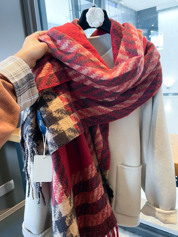크리스마스와 새해 레드 ~ 레트로 대조 컬러 하운스 투스 스카프 여성의 가을 및 겨울 소프트 왁스 매치 코트 고급 분위기스토어 가기