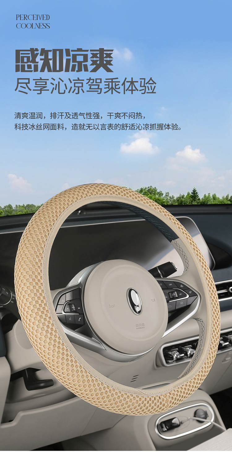 자동차 범용 무링 핸들커버 아이스 실크 통기성 미끄럼 방지 핸들커버 테무 크로스보더 플랫폼 틱톡 쉬피