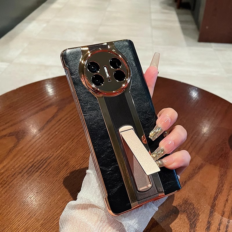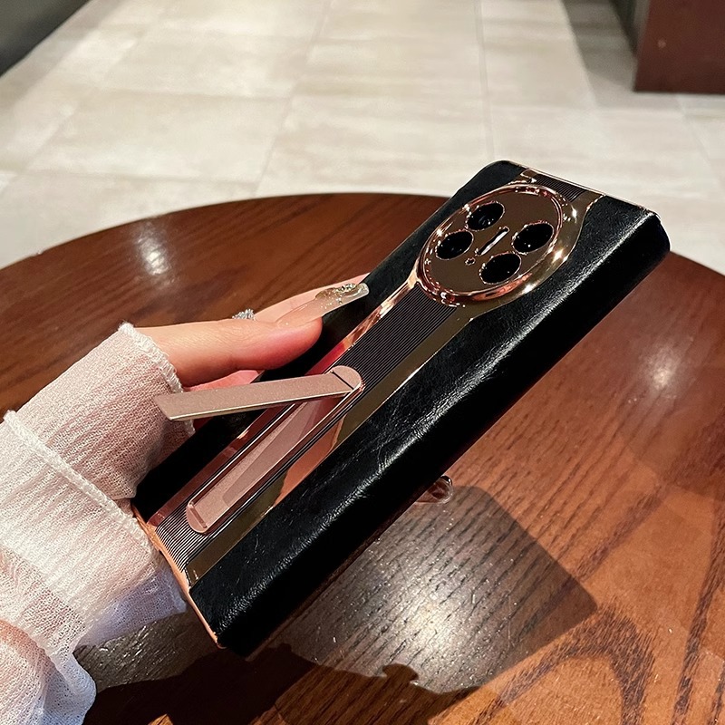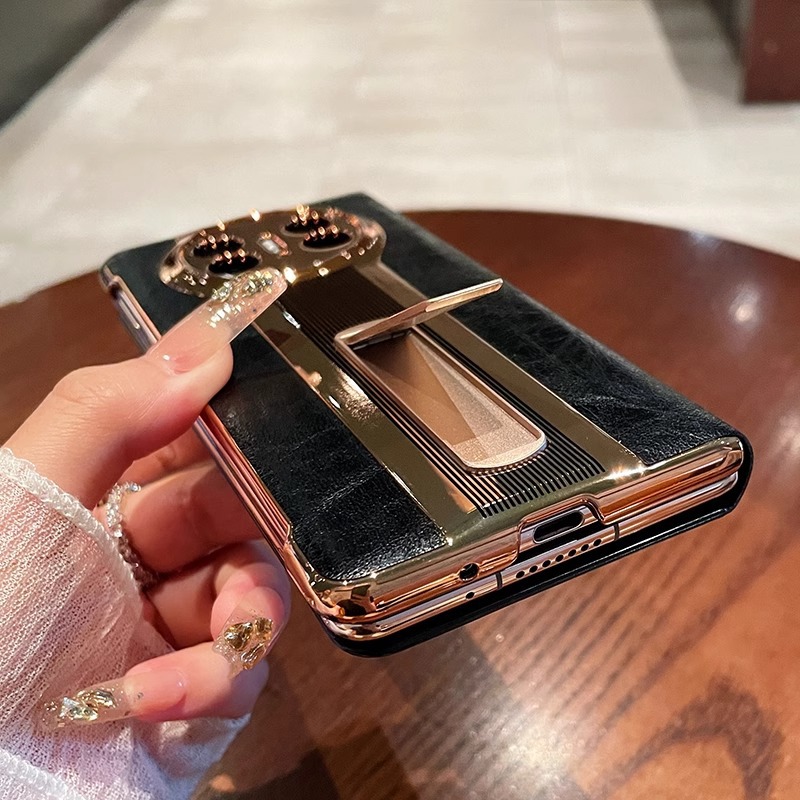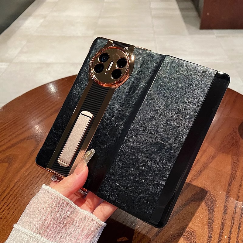 • 골드 포르쉐 스마트 플립 가죽 케이스 - 오일 왁스 가죽 블랙