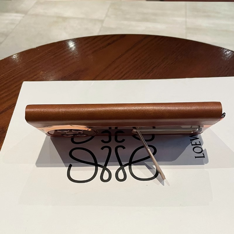 • 골드 포르쉐 스마트 플립 가죽 케이스 - 오일 왁스 가죽 브라운