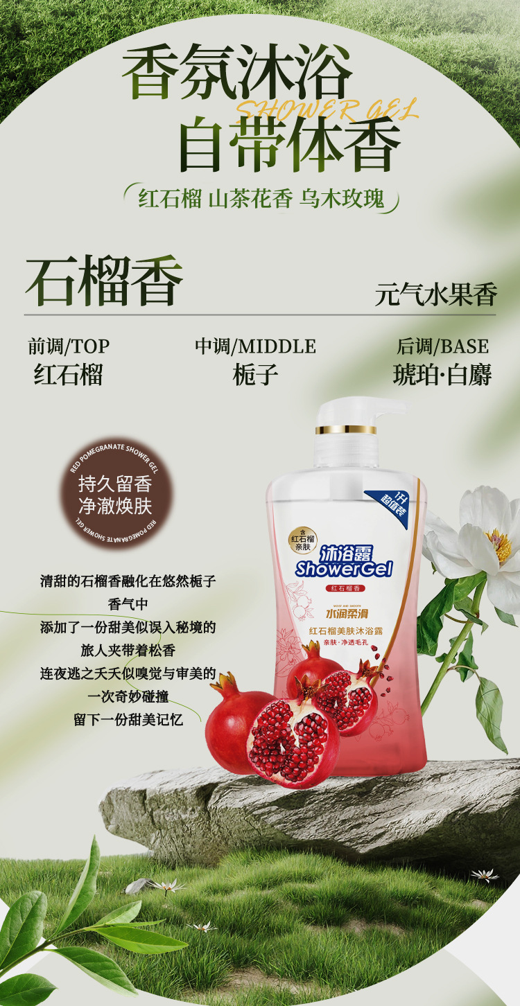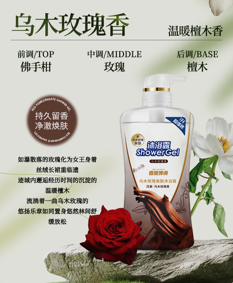 대용량 동백 샤워 젤 붉은 석류 향수 샤워 젤 보습 홈 세트 에보니 로즈 목욕 젤
