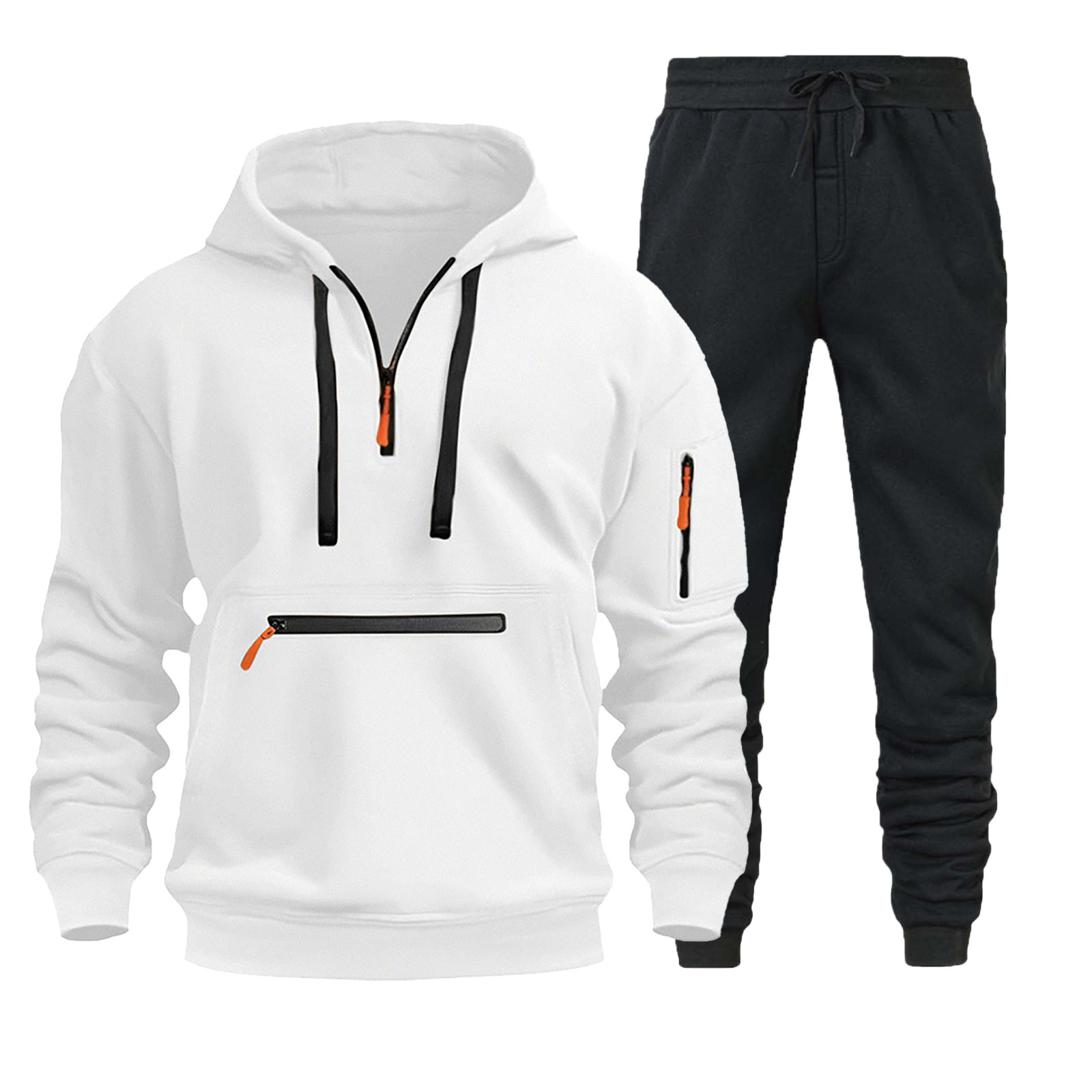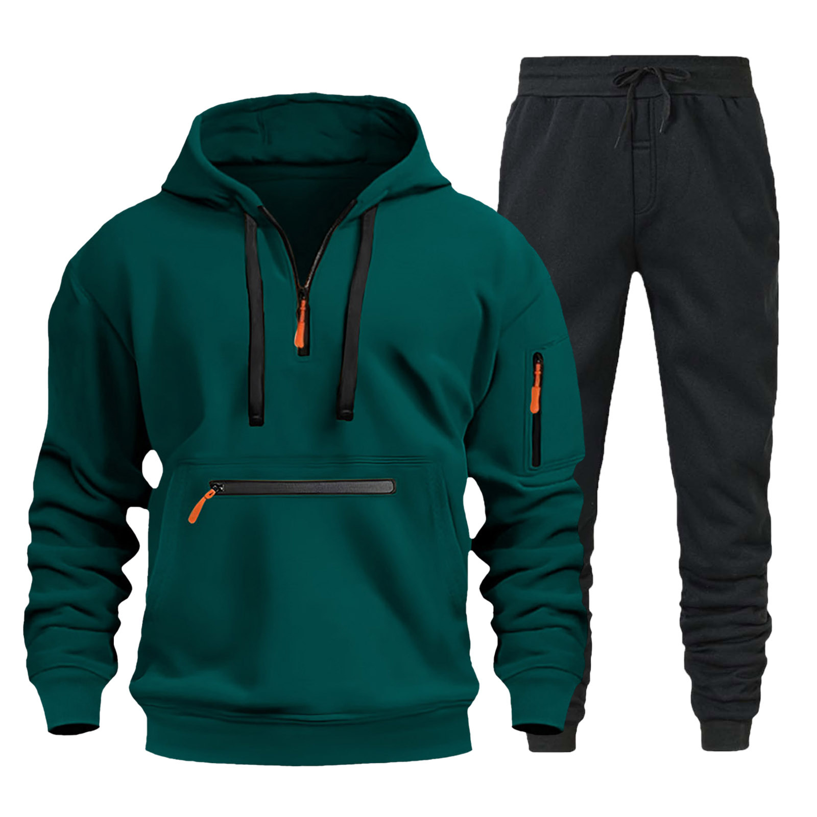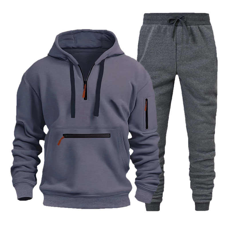 220g 패브릭 후드 풀 남성용 스웨터 지퍼 멀티 포켓 지퍼 풀오버 스포츠 캐주얼 스웨터 남성용 세트