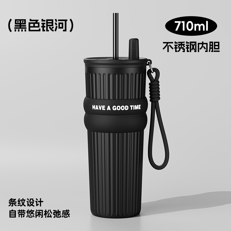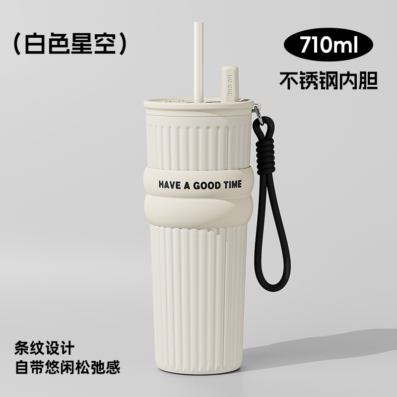 밀짚 보온병 컵 여성의 2024 새로운 대용량 컵 스테인레스 스틸 라이너 냉수 새로운 커피 컵