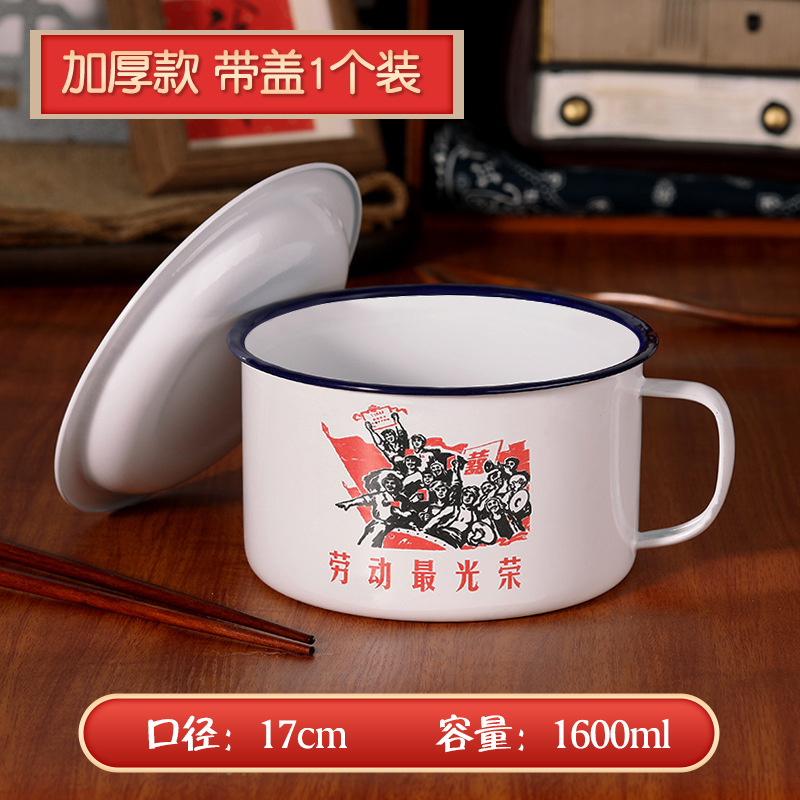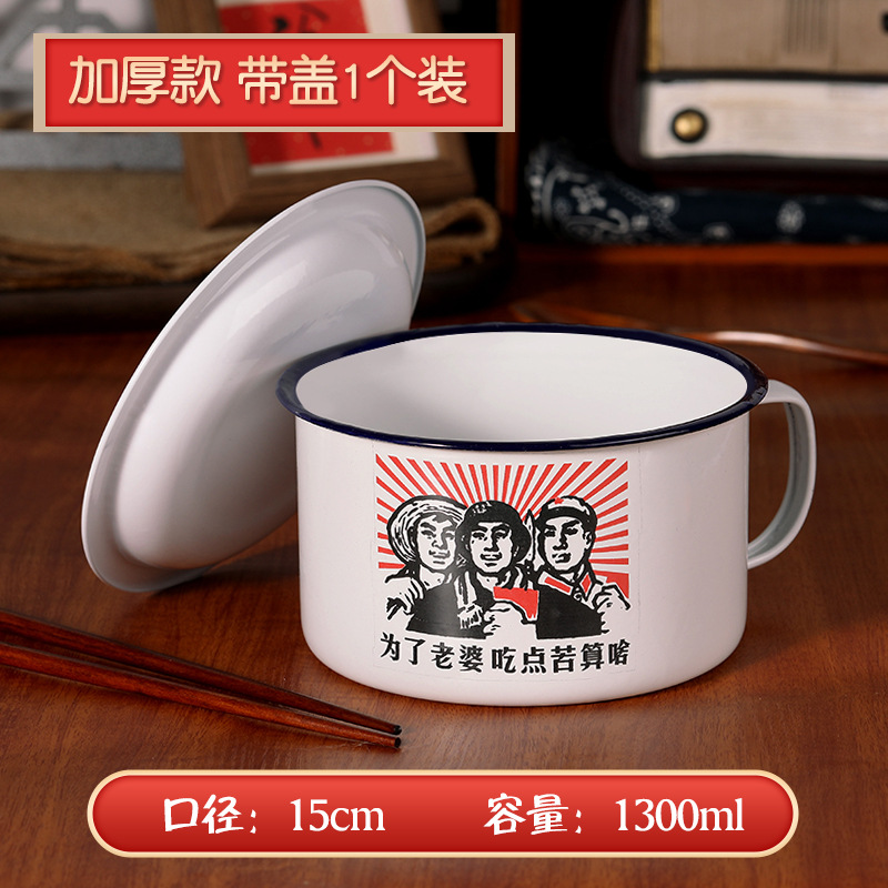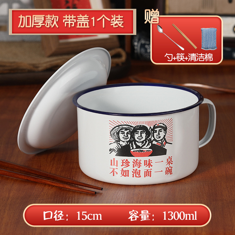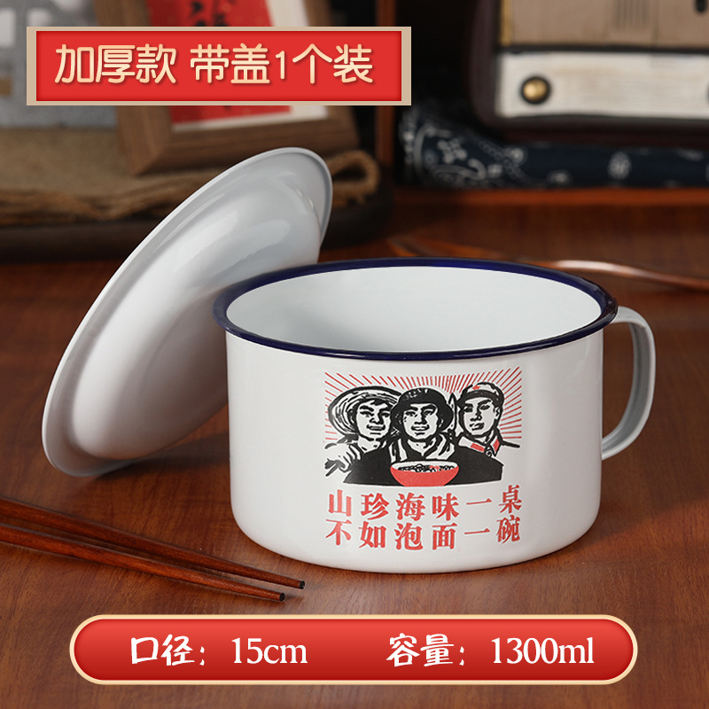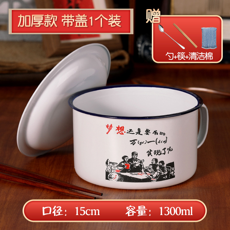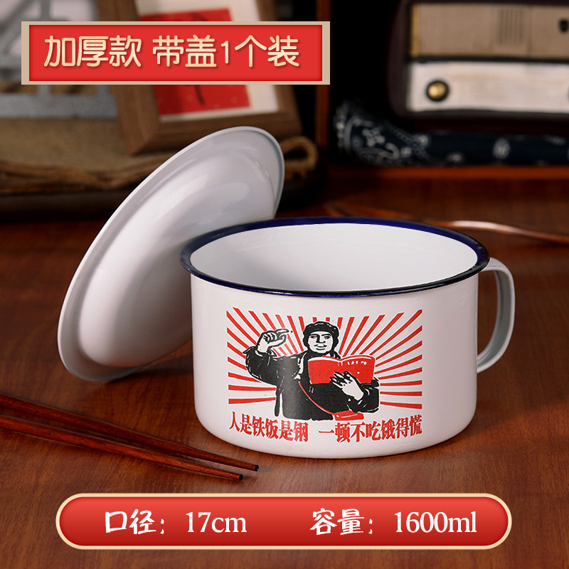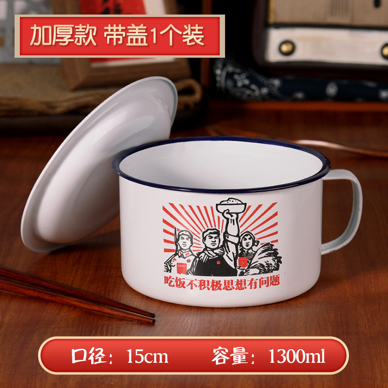 에나멜 그릇 구식 학생 기숙사 인스턴트 국수 그릇 두꺼운 슈퍼 대용량 가정용 복고풍 스타일 쌀 통 뚜껑과 손잡이스토어 가기