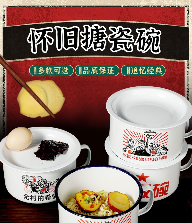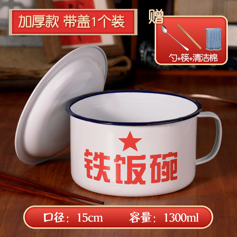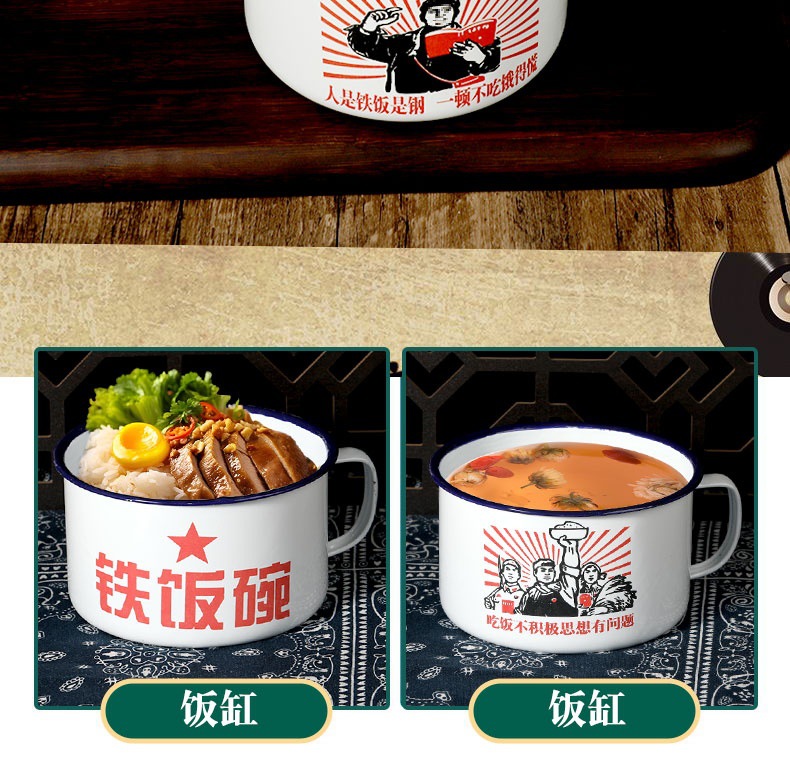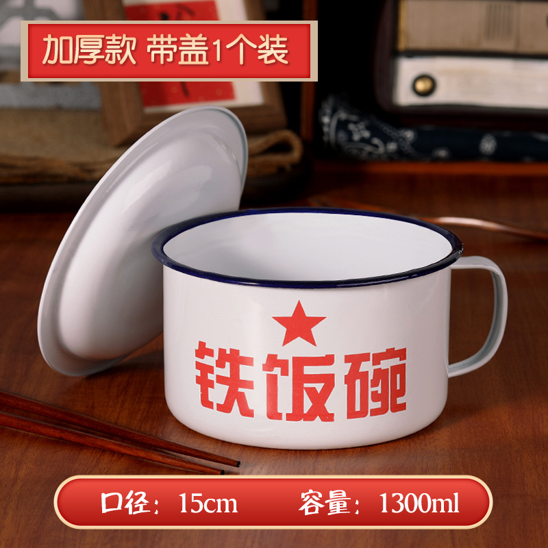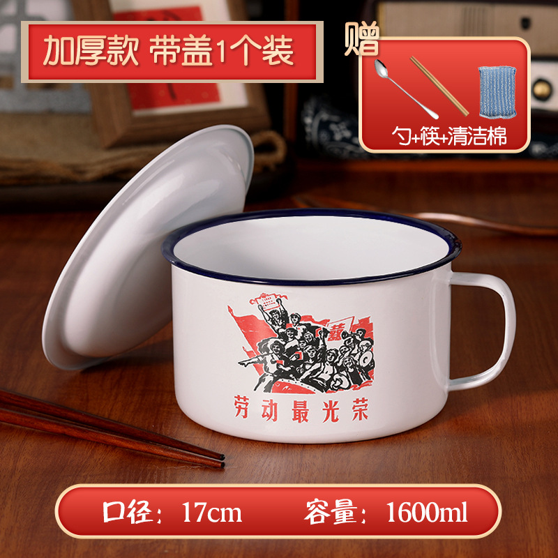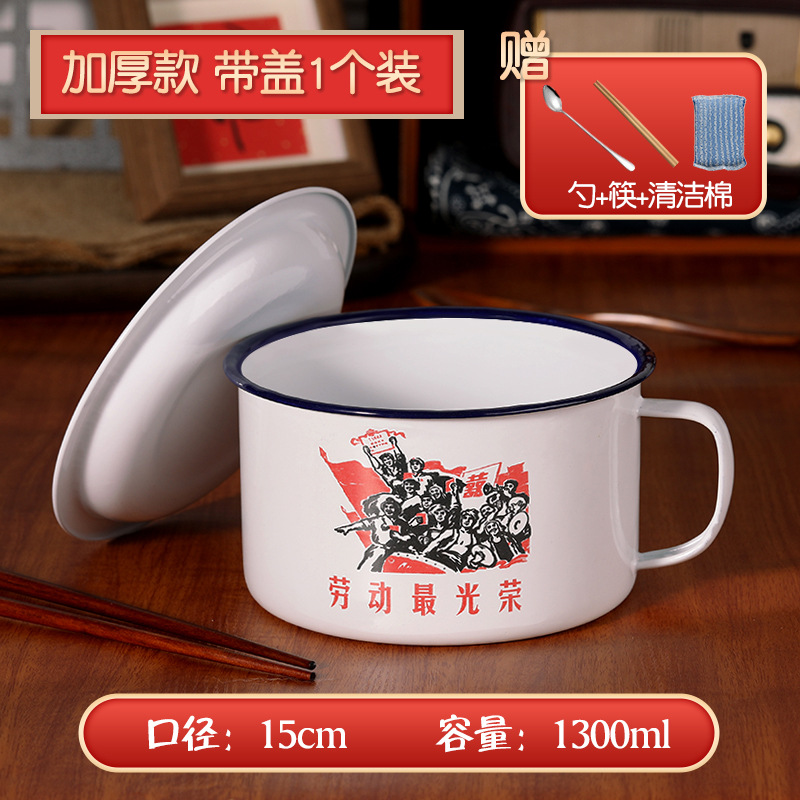 에나멜 그릇 구식 학생 기숙사 인스턴트 국수 그릇 두꺼운 슈퍼 대용량 가정용 복고풍 스타일 쌀 통 뚜껑과 손잡이스토어 가기
