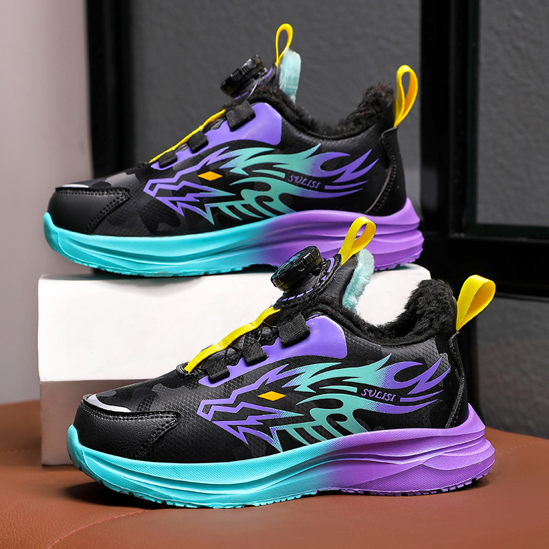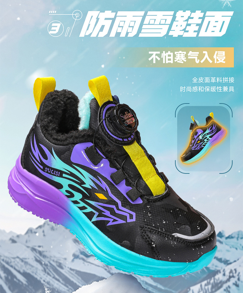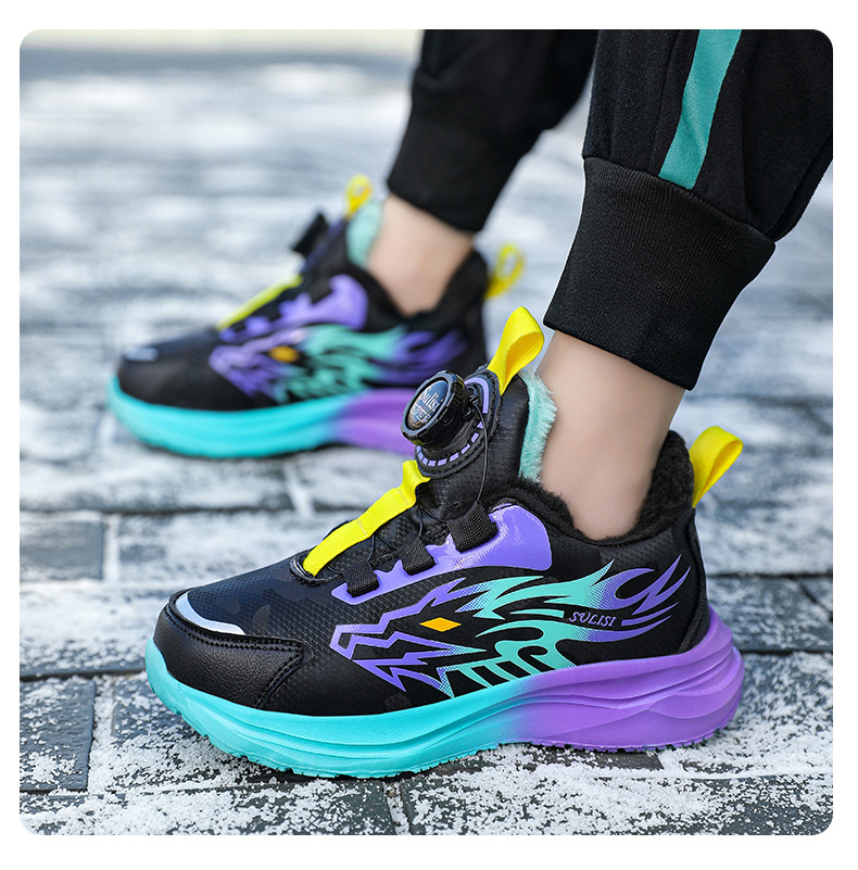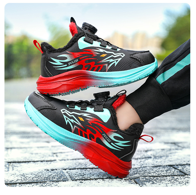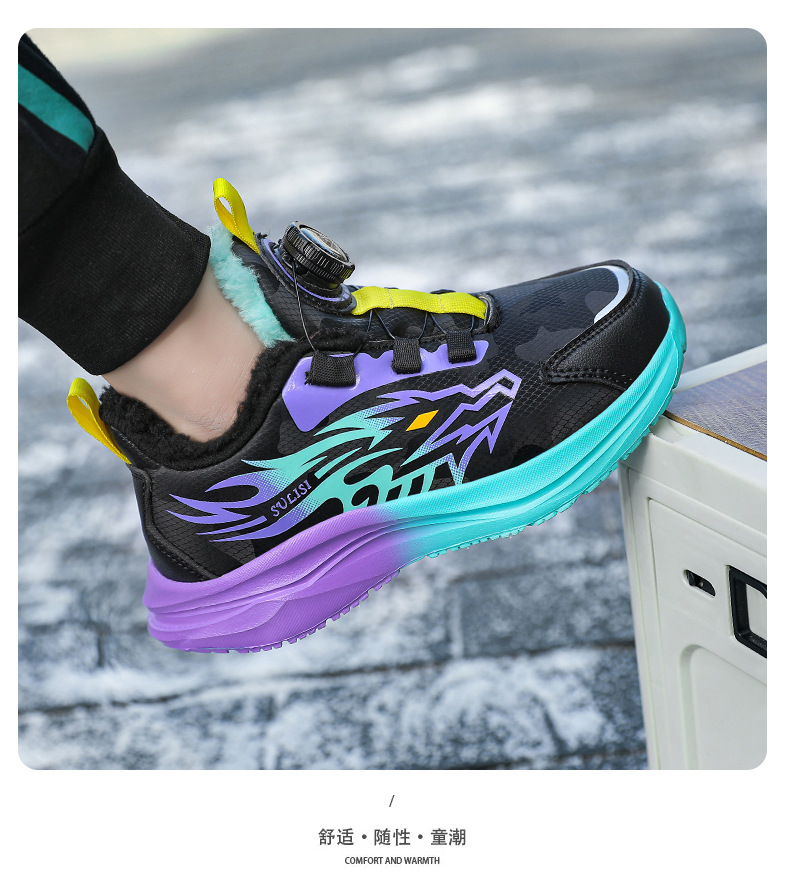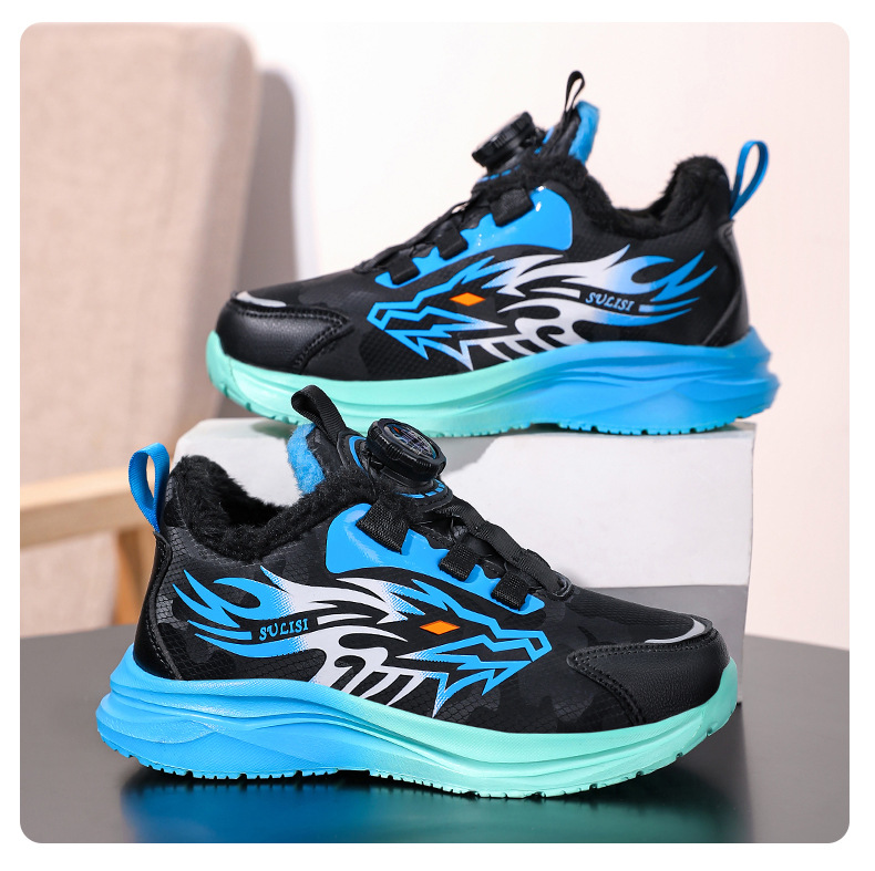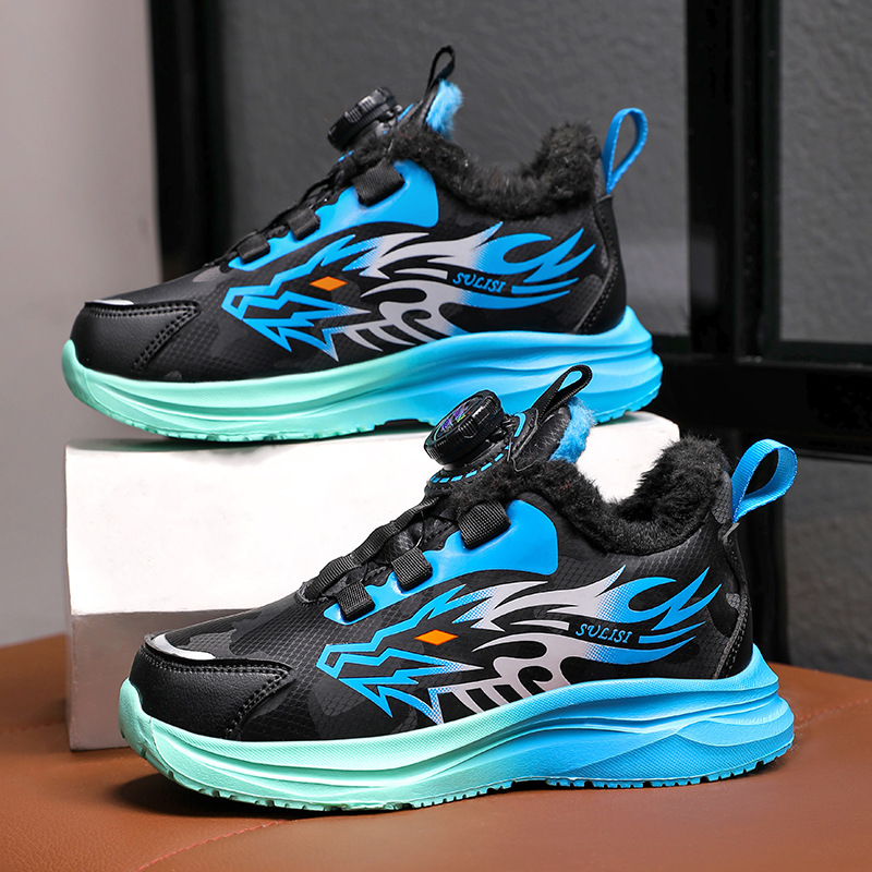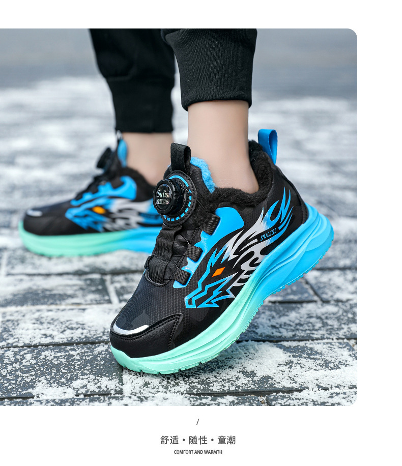 소년 신발 2024 가을과 겨울 따뜻한 미끄럼 방지 부드러운 바닥 운동화 회전 버클 청소년 어린이 가죽 운동화스토어 가기
