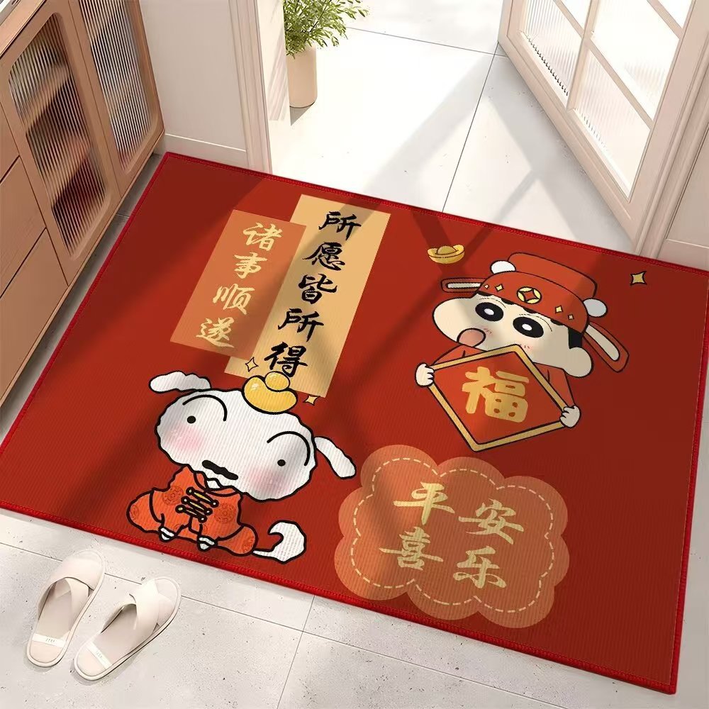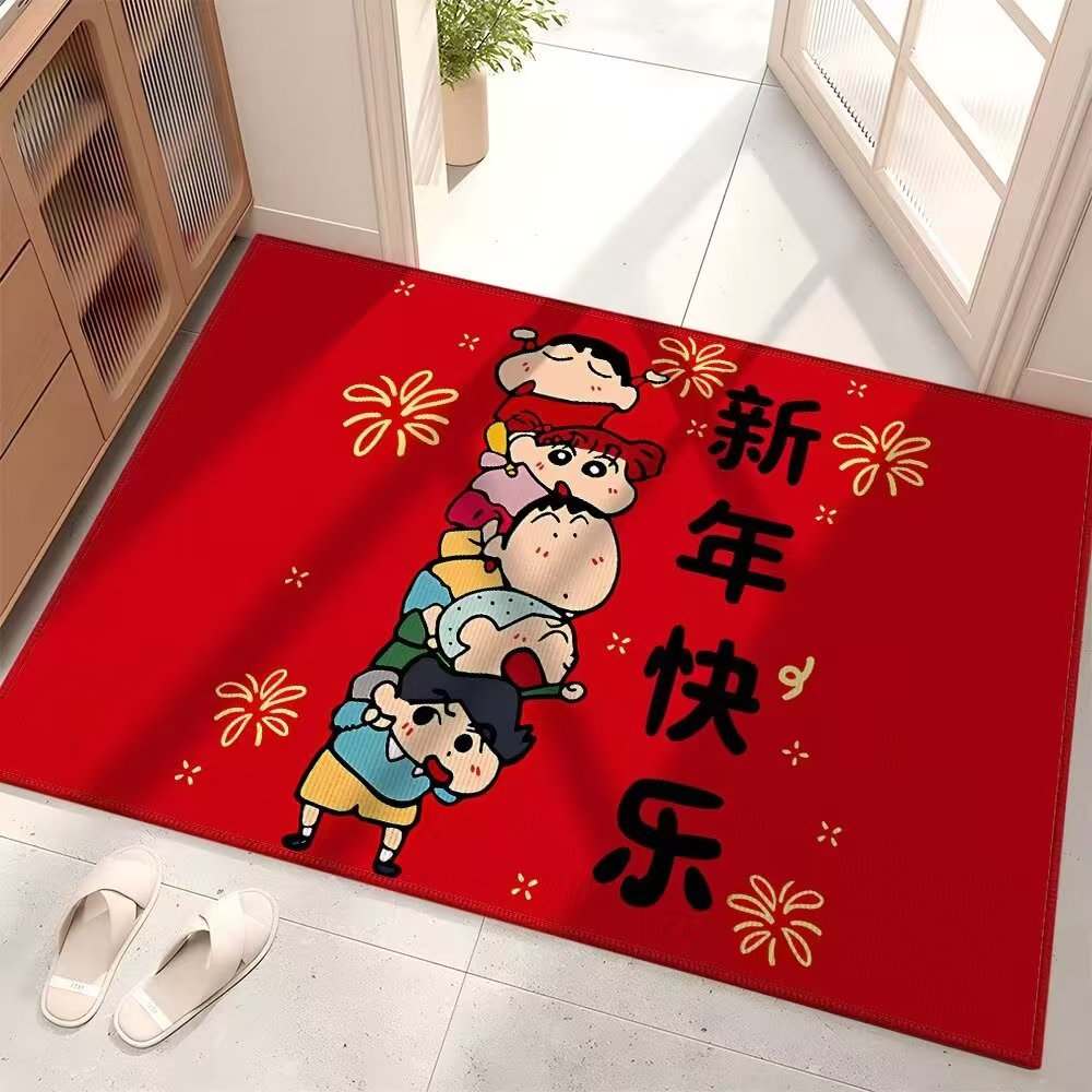 새로운 크레용 작은 새 바닥 매트 2025 붉은 축제 홈 입구 매트 미끄럼 방지 더러운 입구 매트