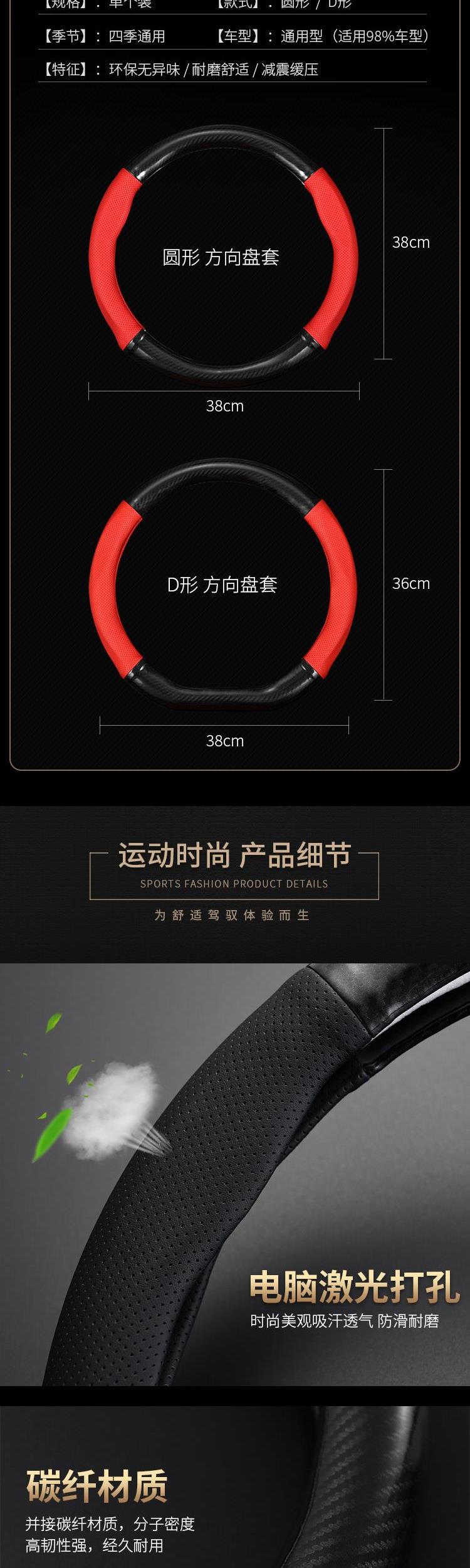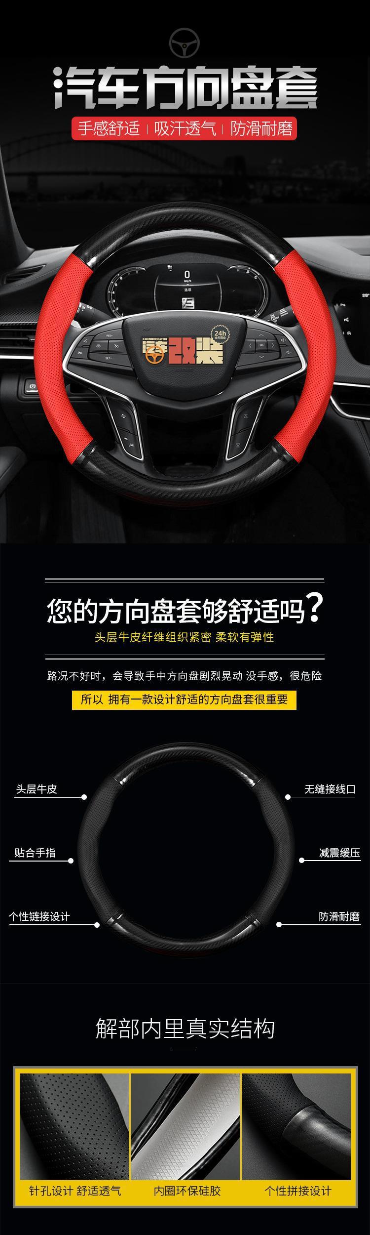 12-13-14-16-18-19 푸조 308 탄소 섬유 스티어링 휠 커버 손으로 수 놓은 가죽 핸들 커버 얇은