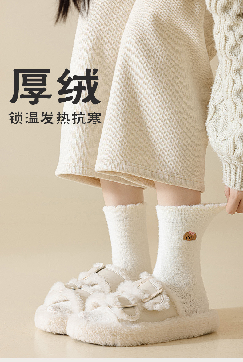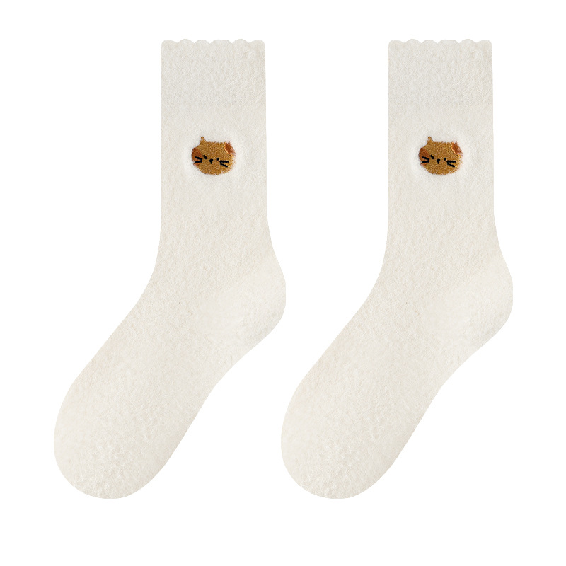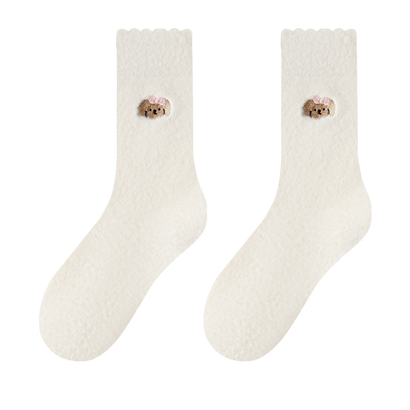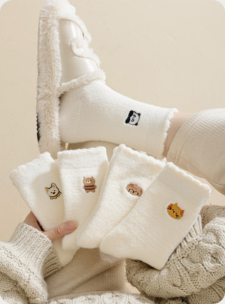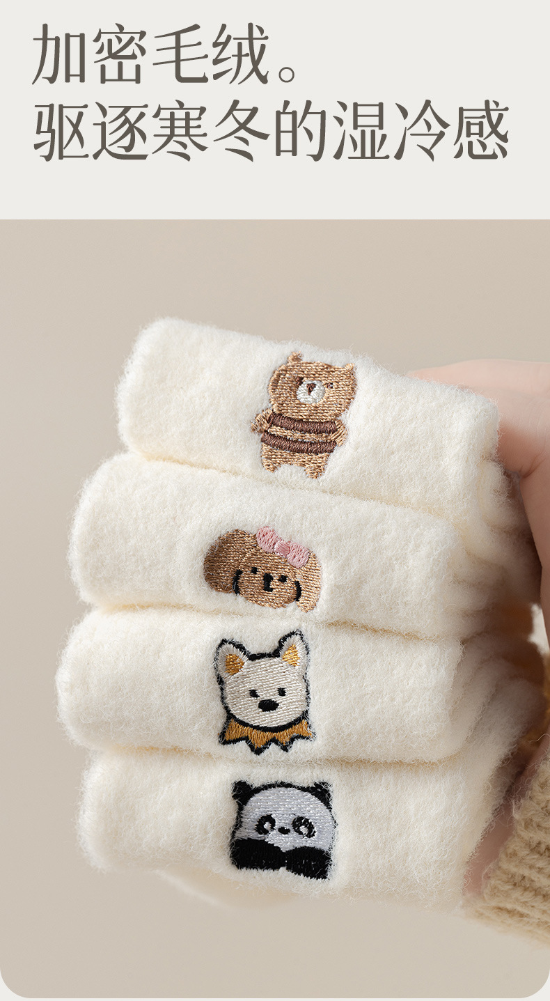 우유 흰색 호주 벨벳 양말 어린이 가을과 겨울 양말 동물 패턴 두꺼운 따뜻한 바닥 양말 일본 귀여운 만화