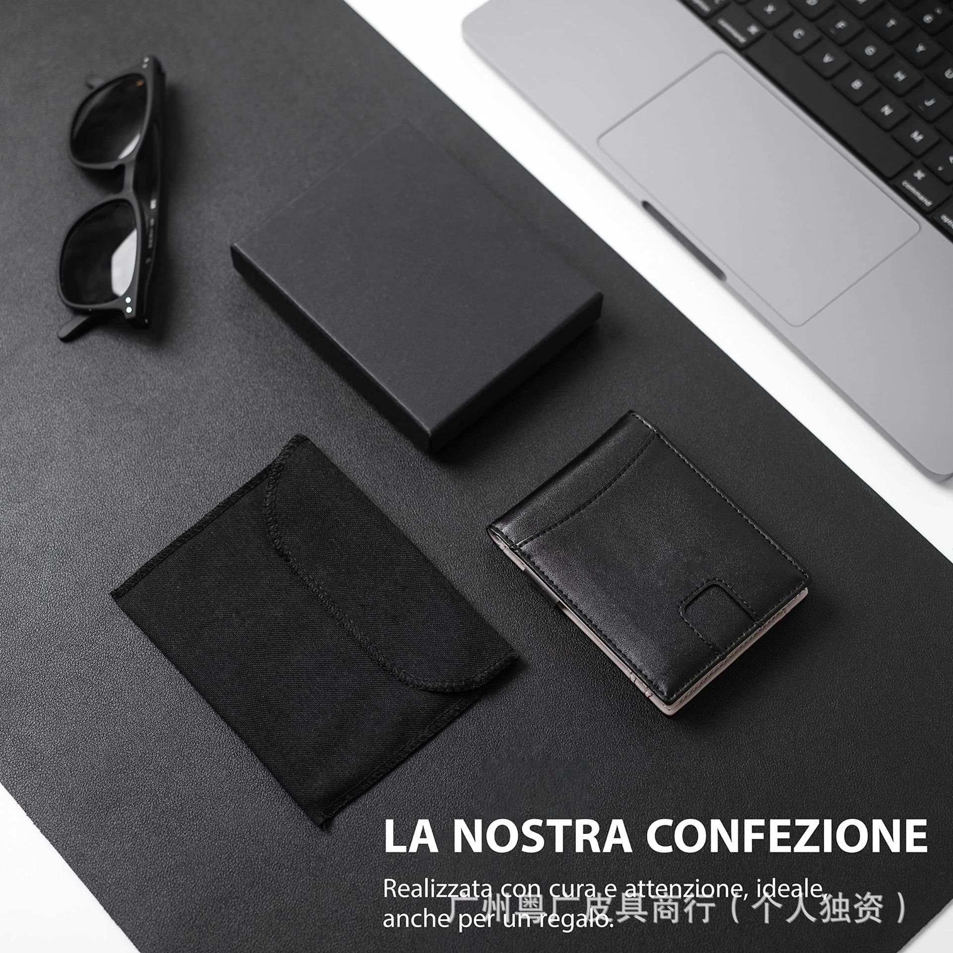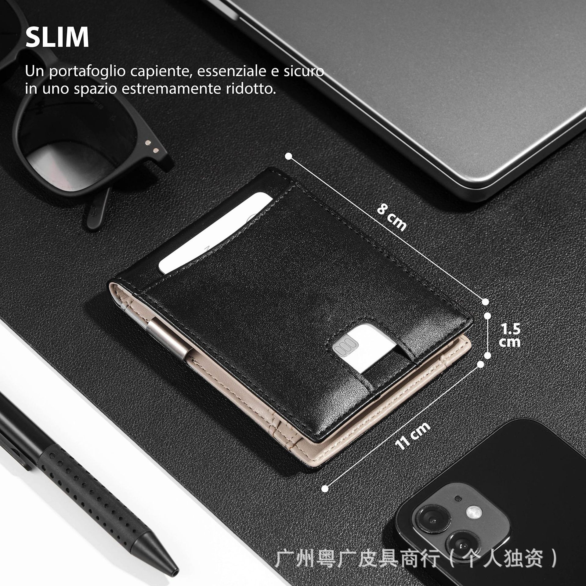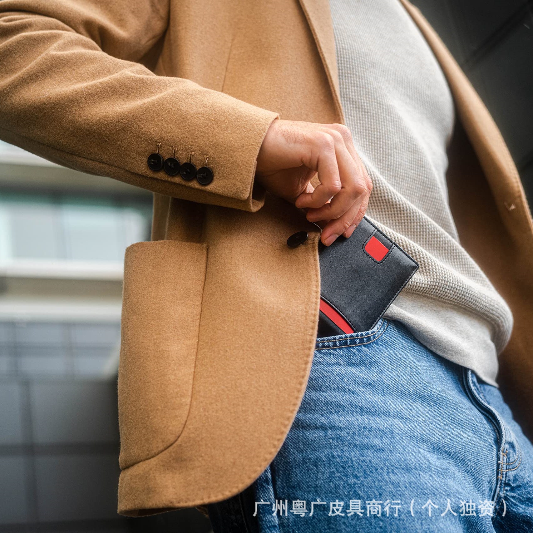 아마존 새로운 가죽 색상 대비 2 배 남성 짧은 지갑 다기능 골드 클립 RFID 초박형 지갑스토어 가기