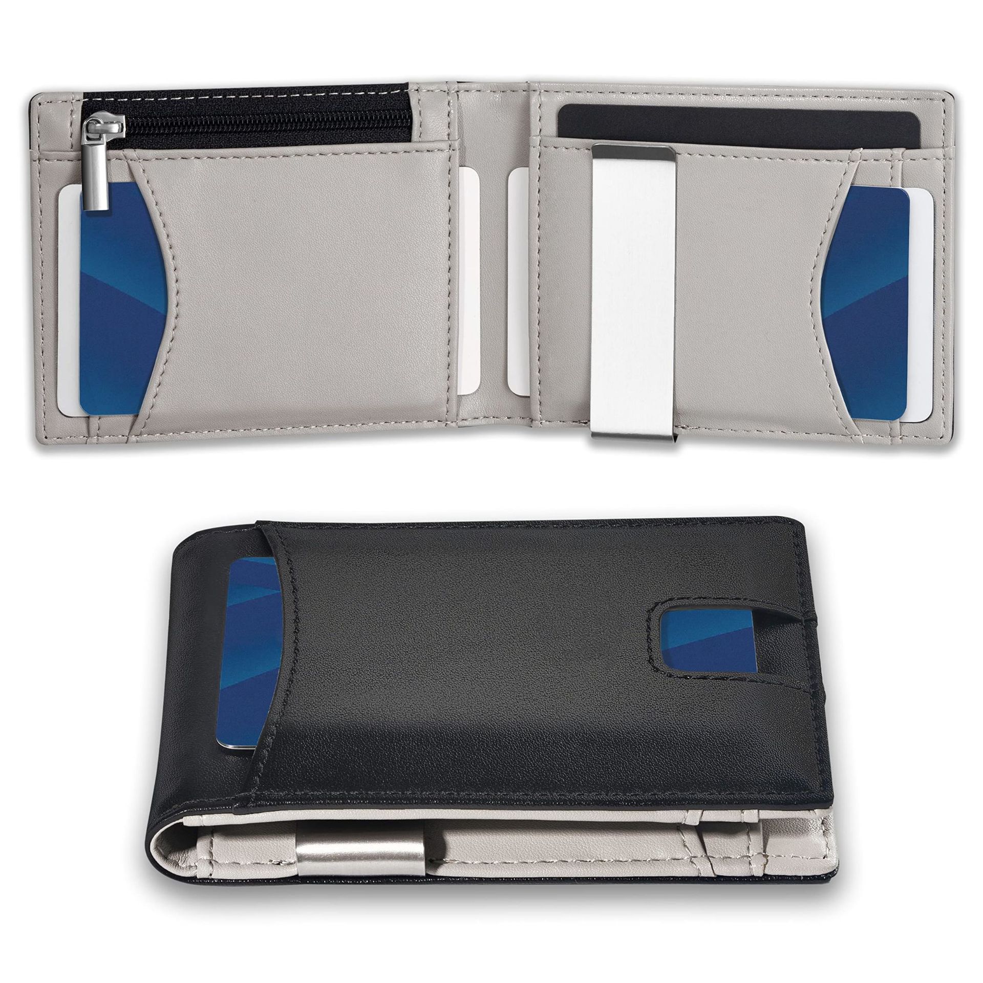 아마존 새로운 가죽 색상 대비 2 배 남성 짧은 지갑 다기능 골드 클립 RFID 초박형 지갑