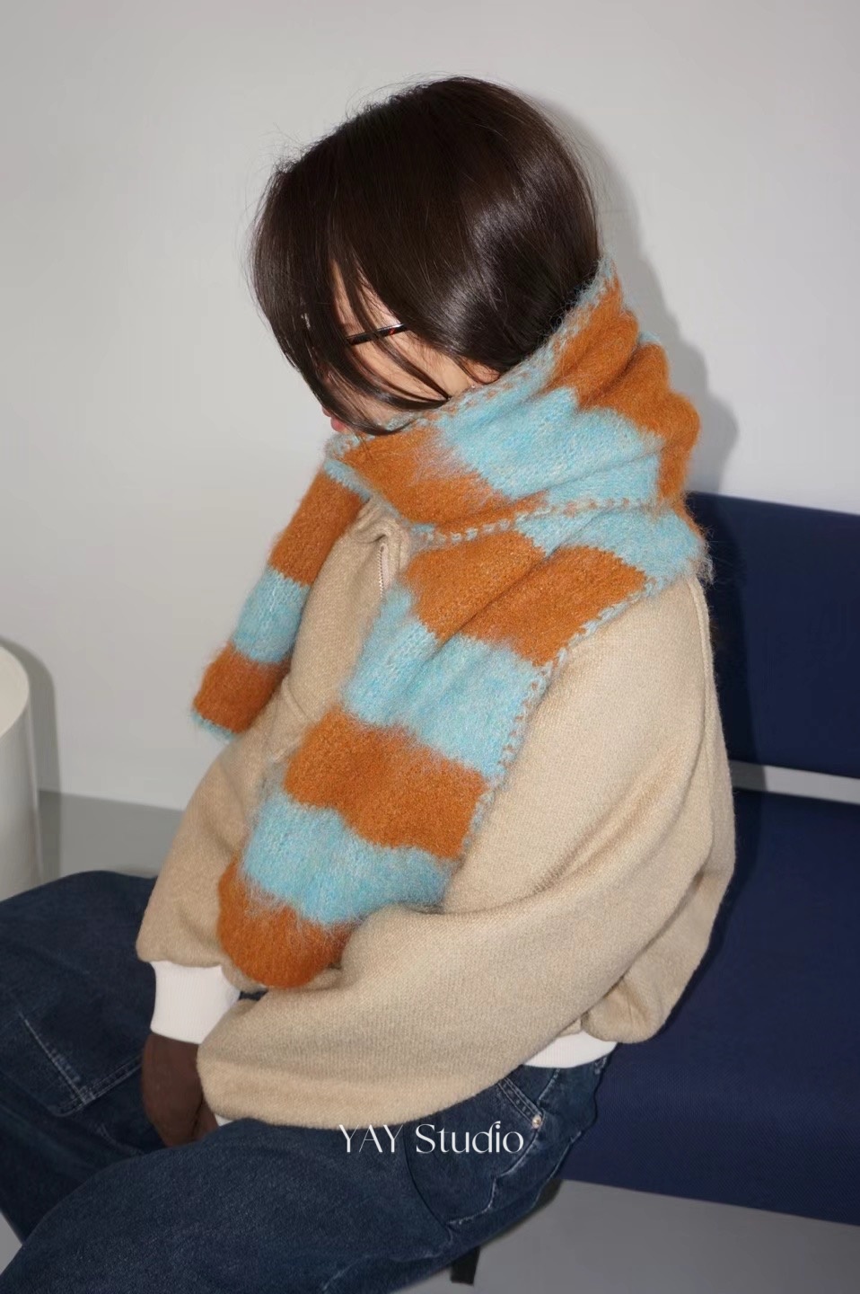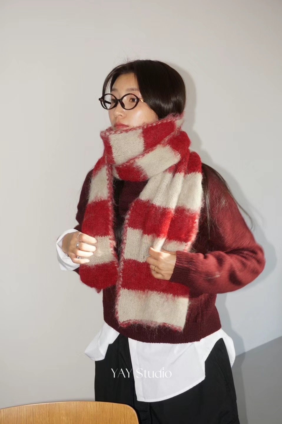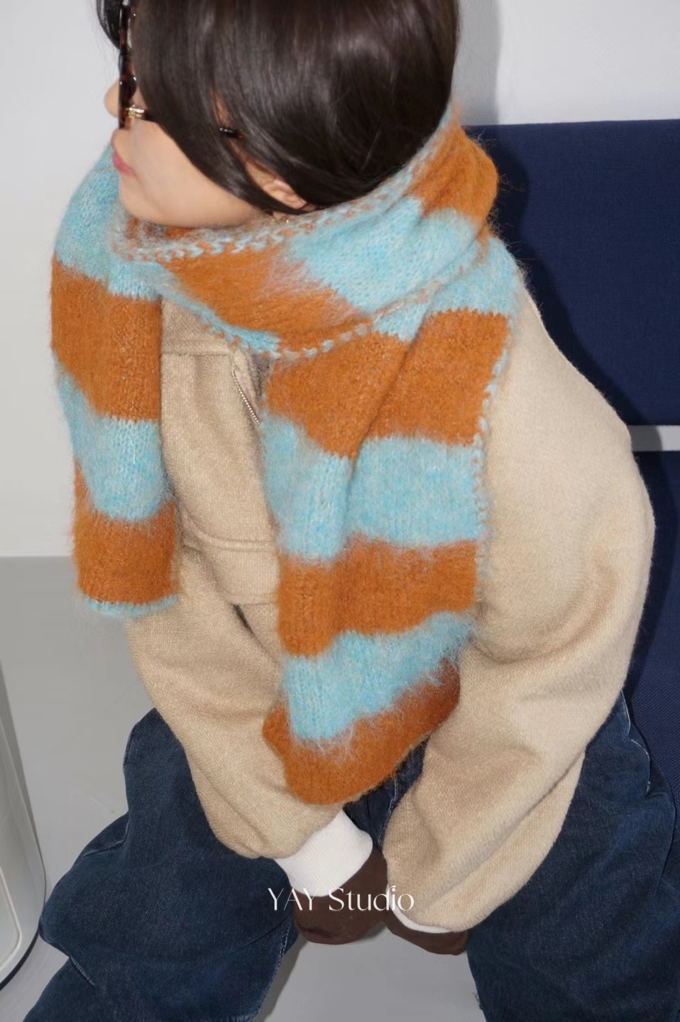 YAY 한국 동대문 구매 복고풍 플러시 컬러 매칭 와이드 스트라이프 따뜻한 긴 스카프