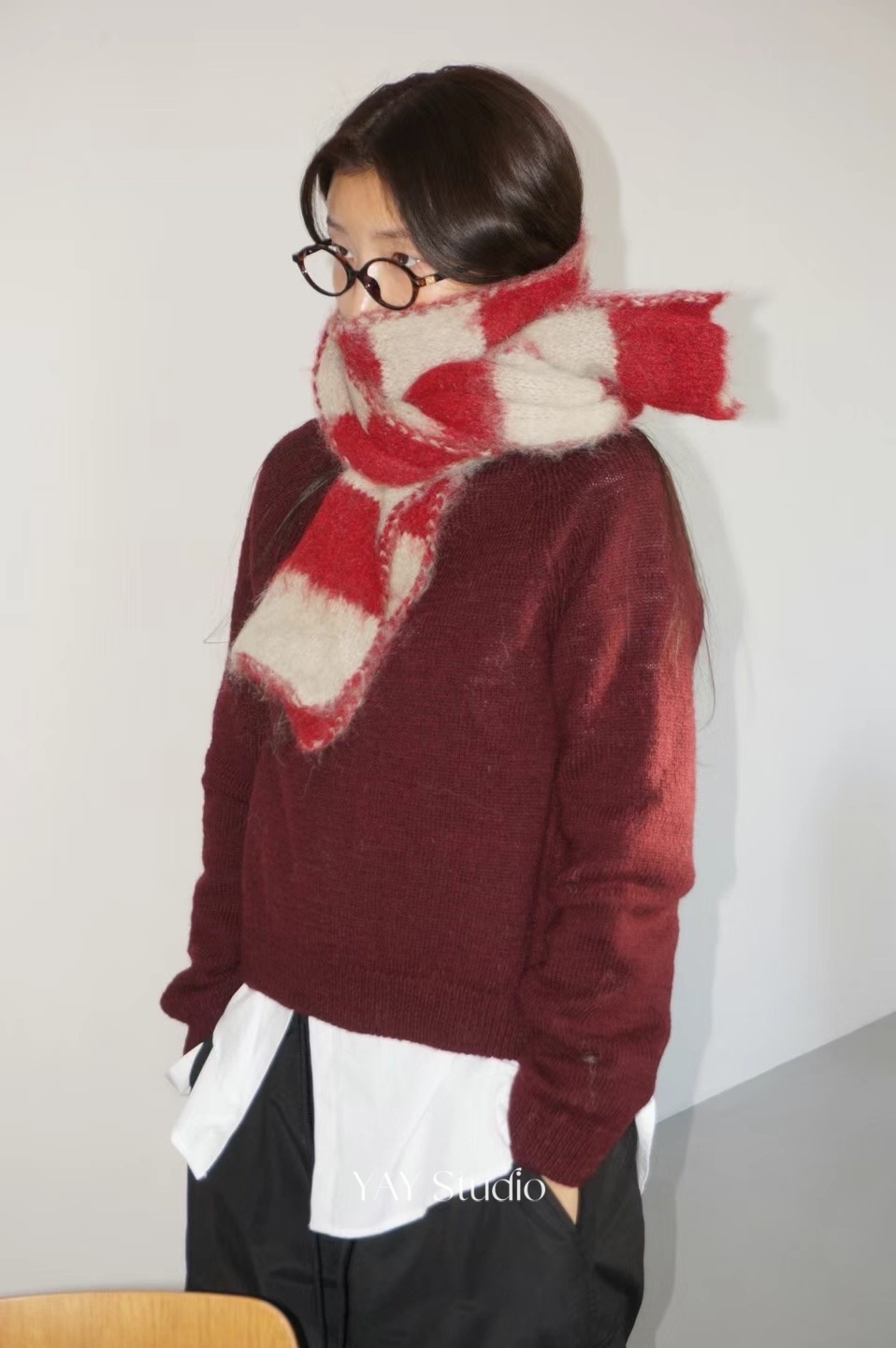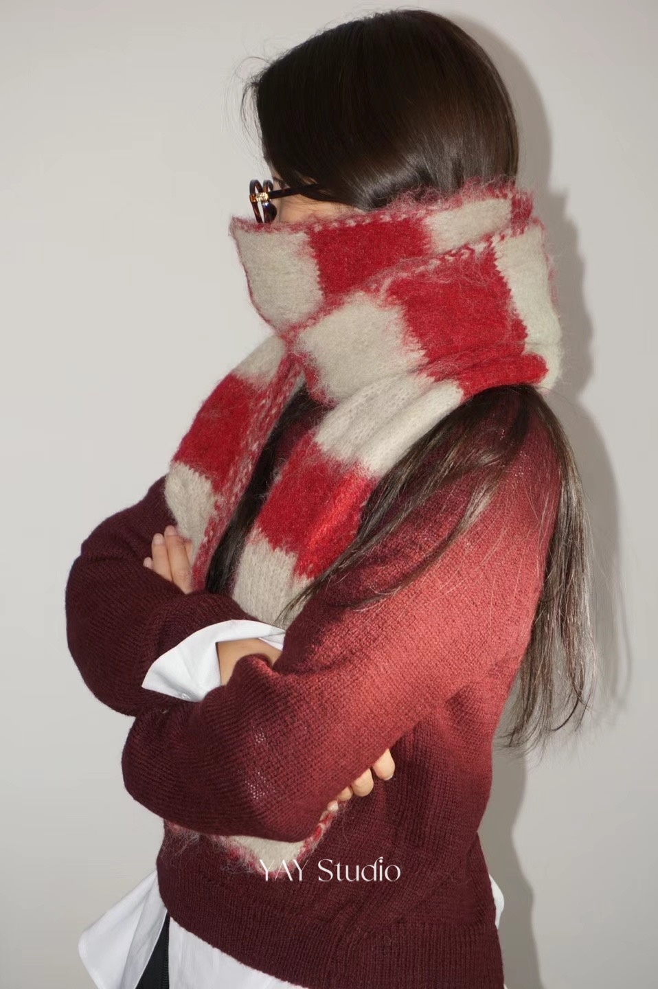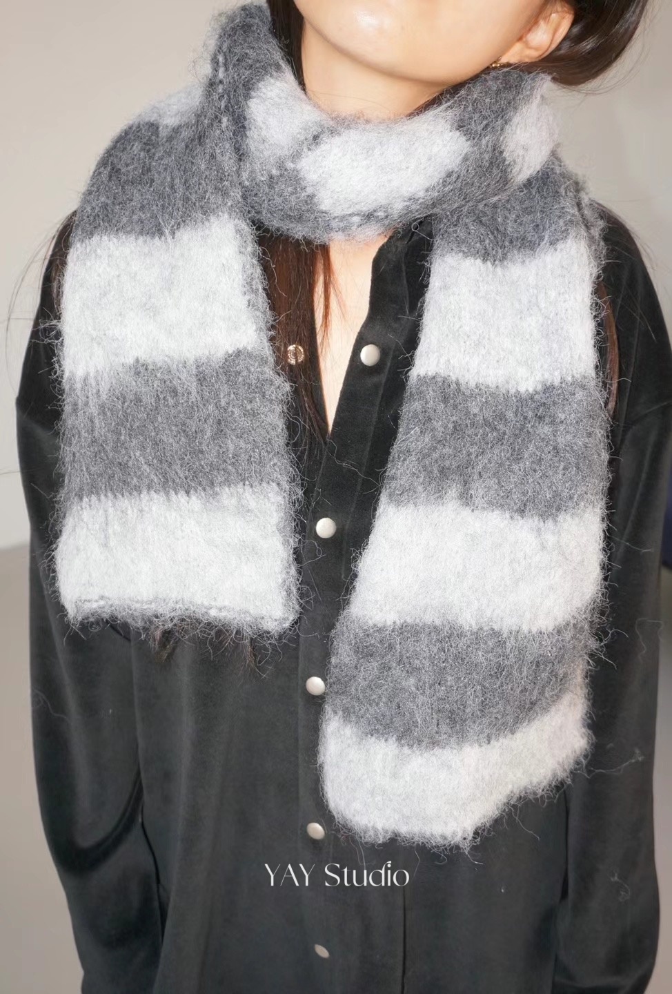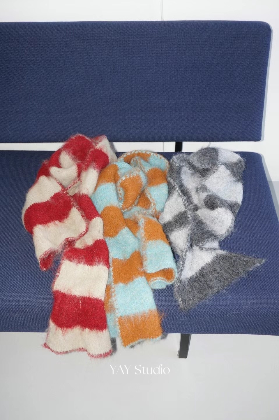 YAY 한국 동대문 구매 복고풍 플러시 컬러 매칭 와이드 스트라이프 따뜻한 긴 스카프