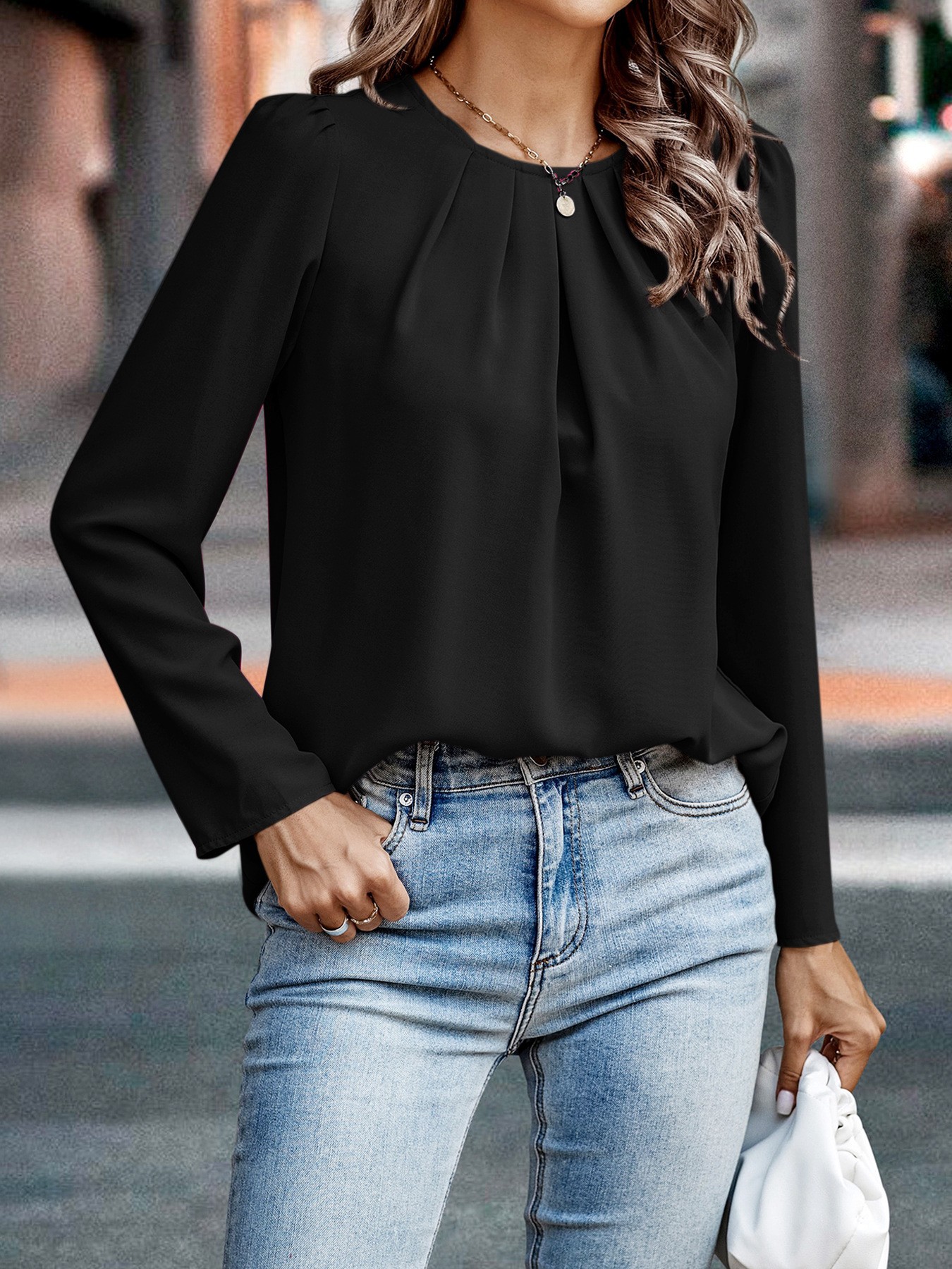 아마존 국경 유럽과 미국의 가을과 겨울 새로운 탑 느슨한 단색 패션 여성 의류스토어 가기