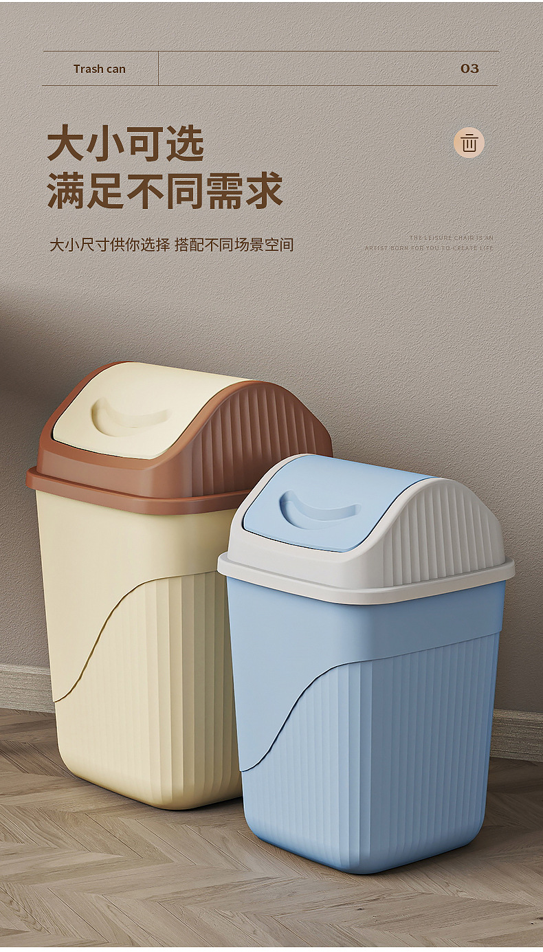 가정용 쓰레기통 거실 주방 틈새 두꺼운 흔들림 뚜껑 대용량 플라스틱 크림 바람 뚜껑 위생 쓰레기통