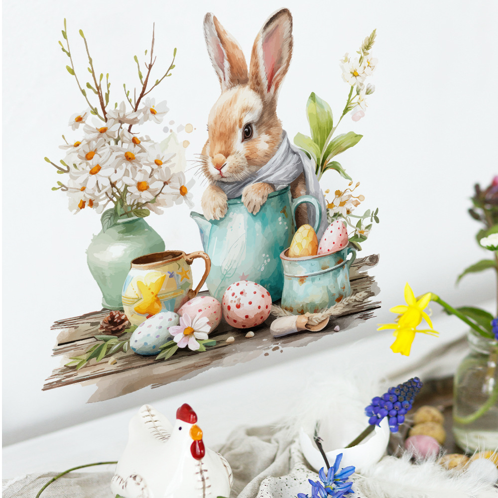 Yiyao DD3372 북유럽 부활절 꽃 토끼 계란 벽 스티커 연구 벽 장식 자체 접착 스티커스토어 가기