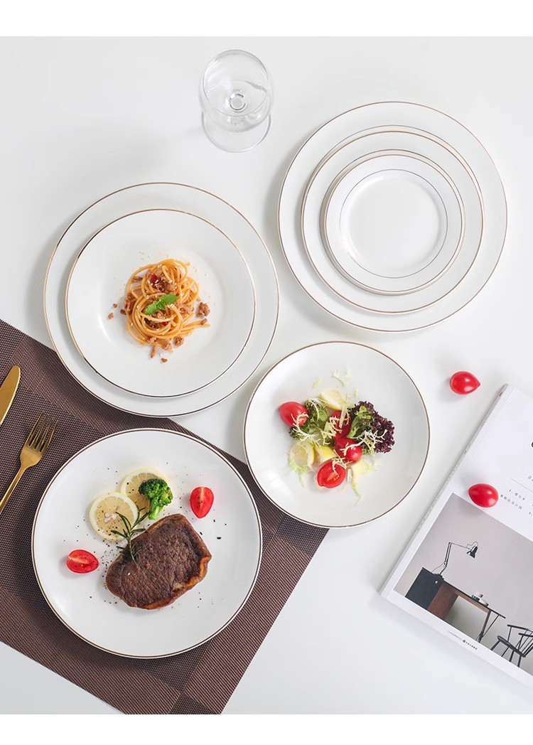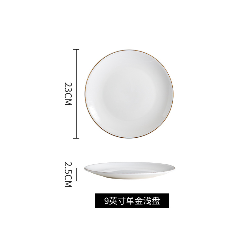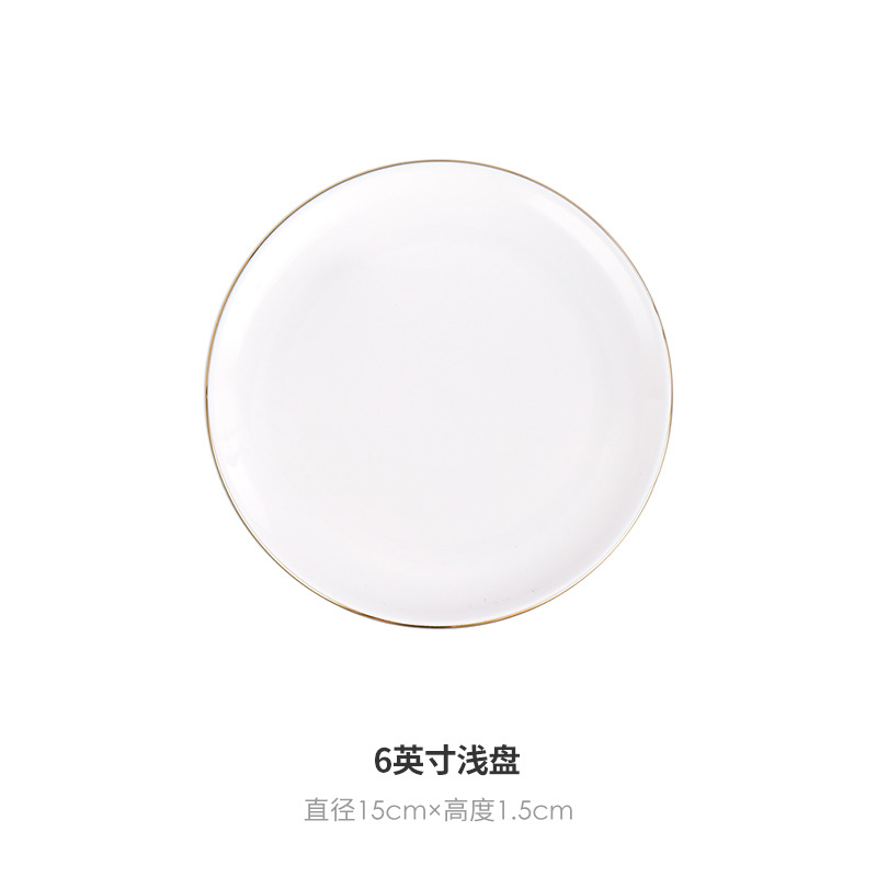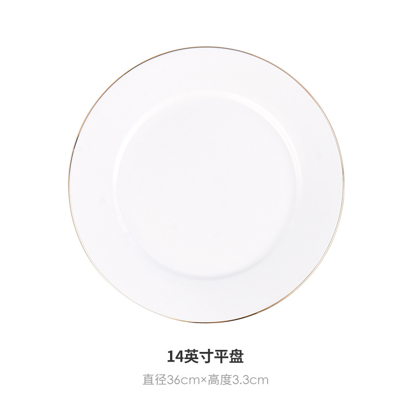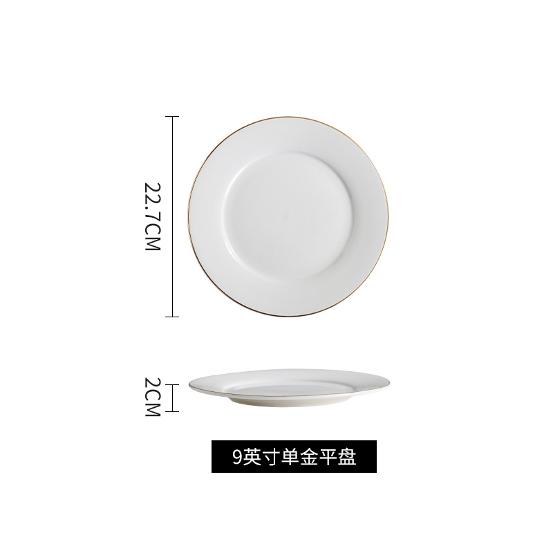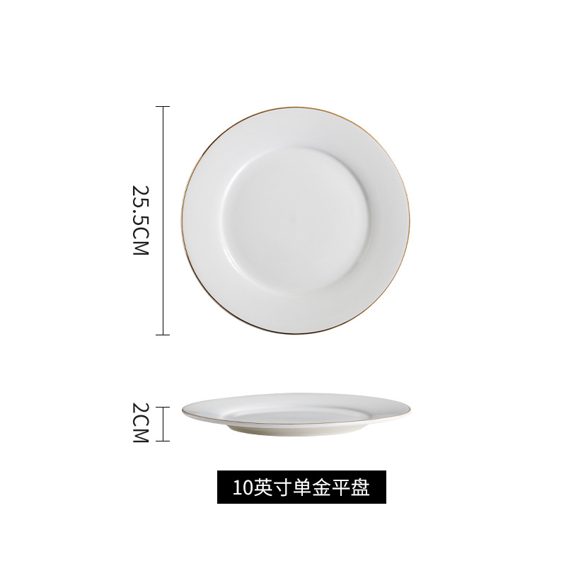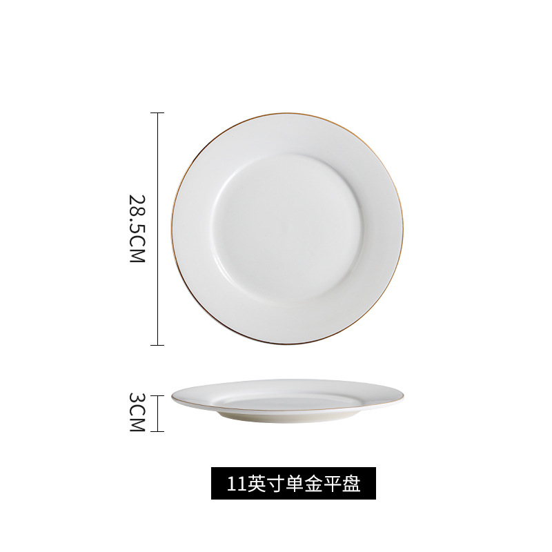 호텔 서양식 레스토랑 접시 유럽 스타일의 금테 도금 세라믹 접시 둥근 얕은 접시 플랫 접시 스테이크 접시 식기 도매스토어 가기