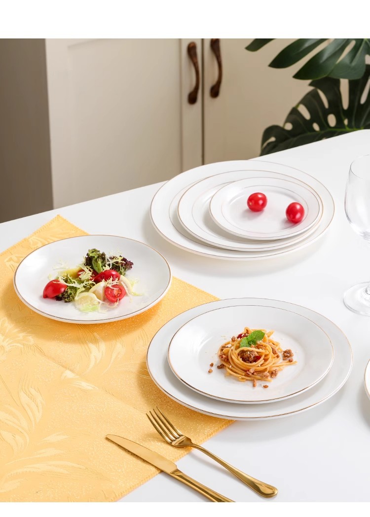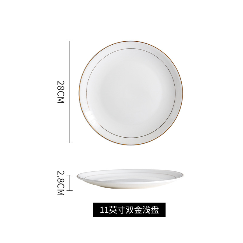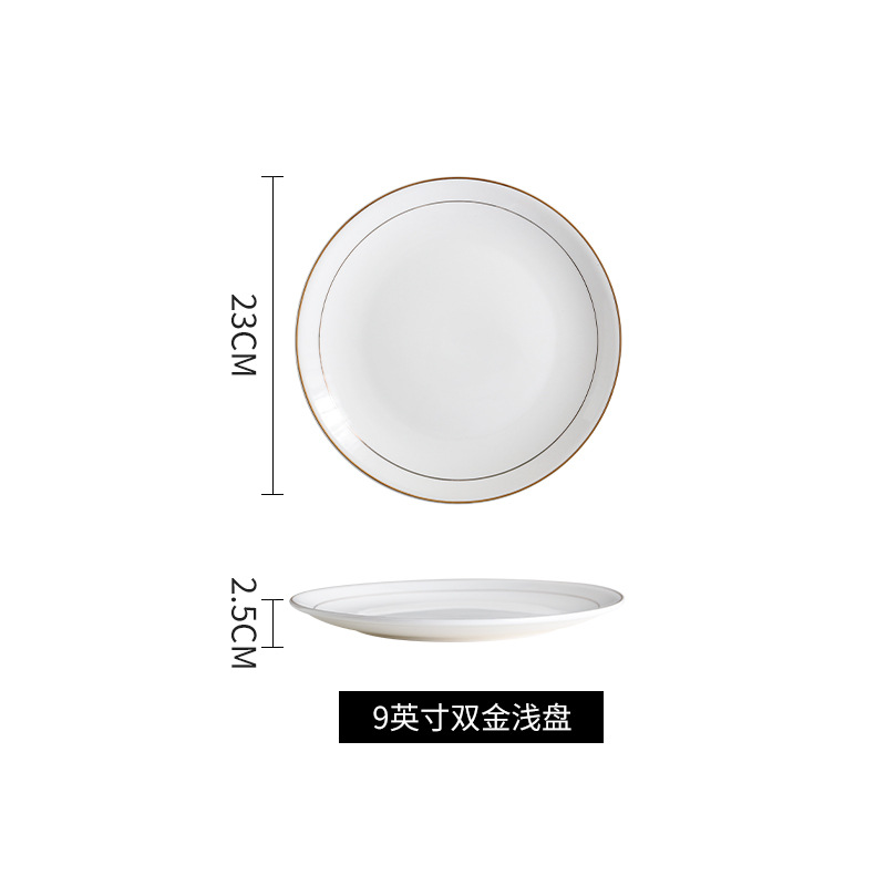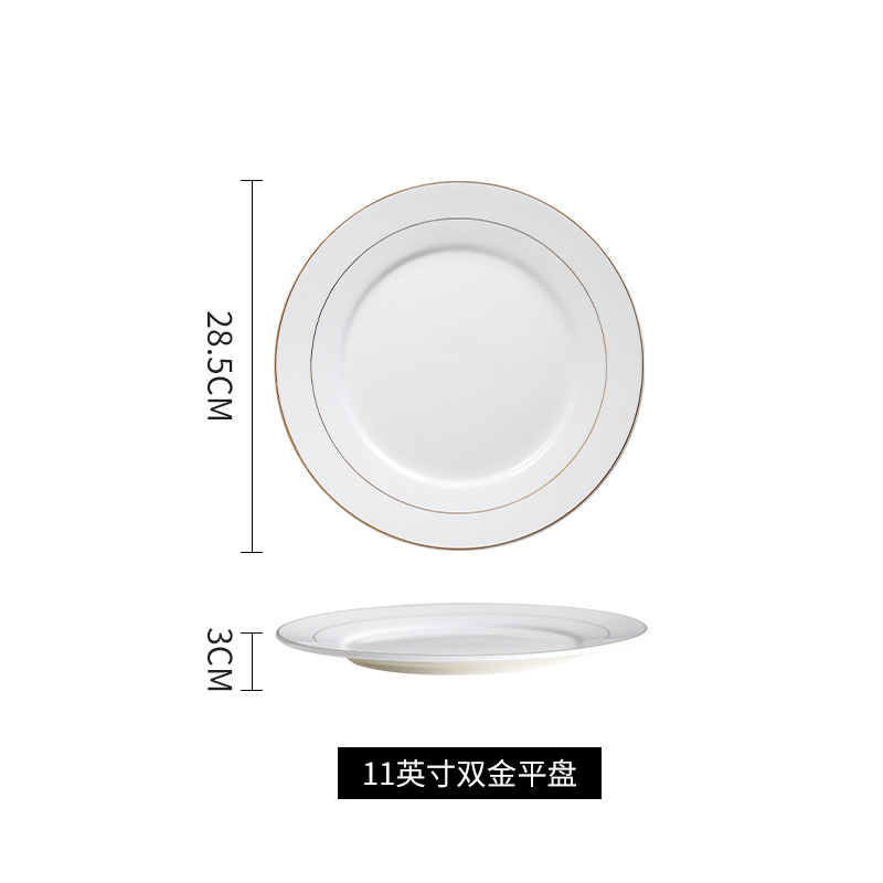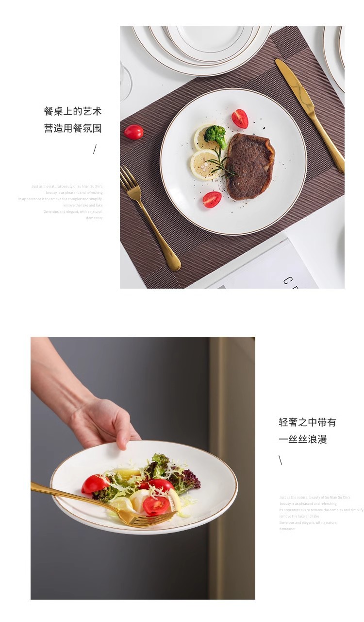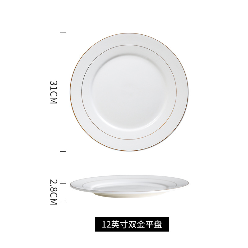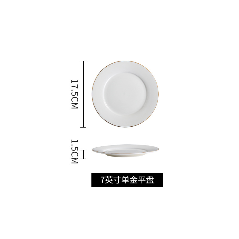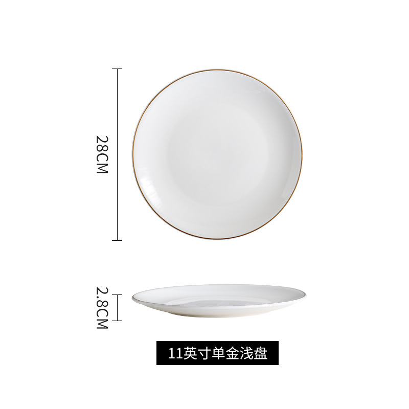 호텔 서양식 레스토랑 접시 유럽 스타일의 금테 도금 세라믹 접시 둥근 얕은 접시 플랫 접시 스테이크 접시 식기 도매스토어 가기