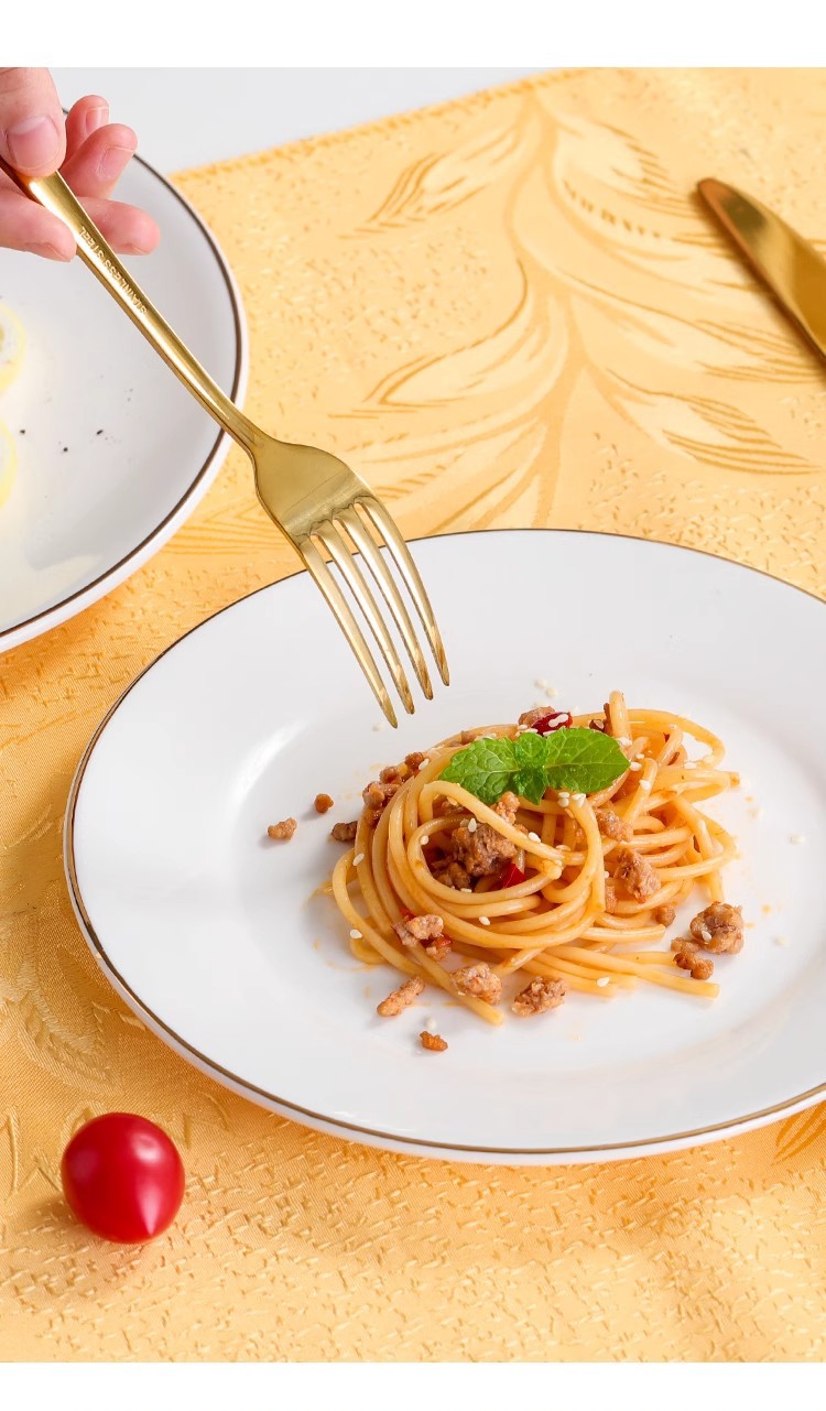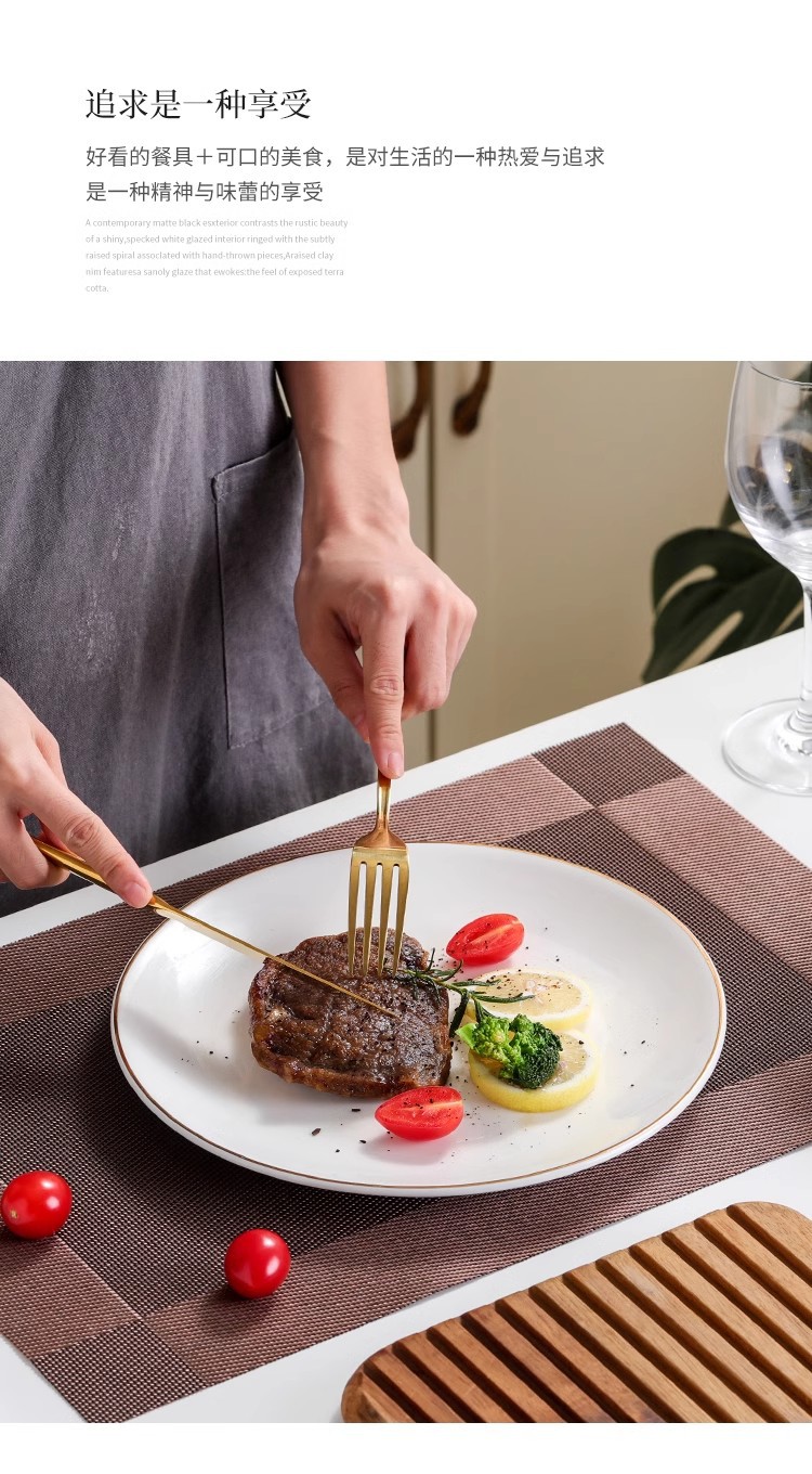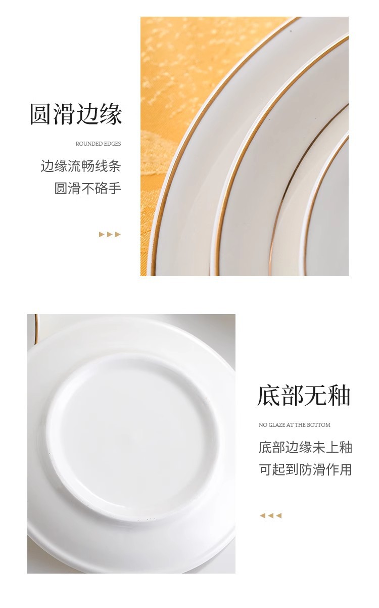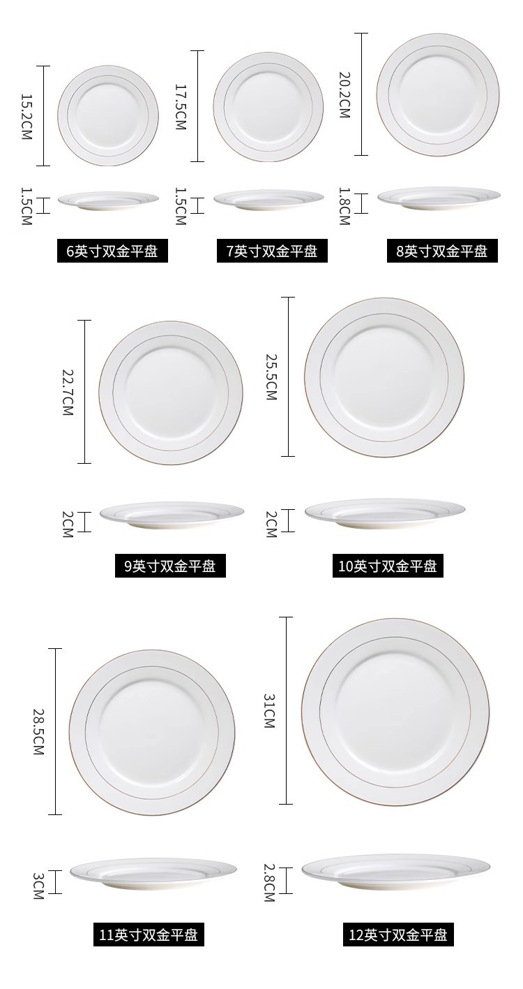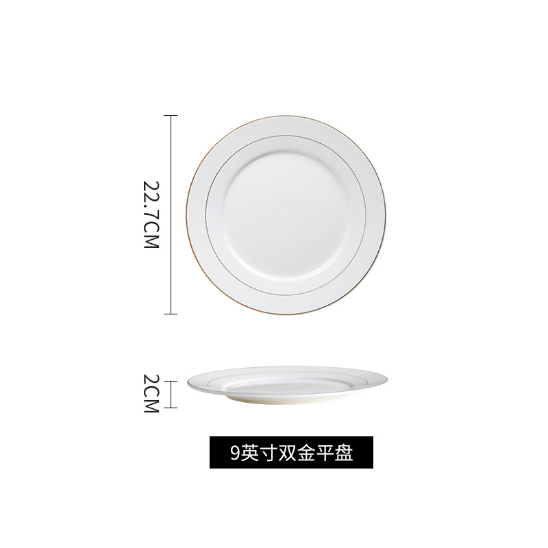 호텔 서양식 레스토랑 접시 유럽 스타일의 금테 도금 세라믹 접시 둥근 얕은 접시 플랫 접시 스테이크 접시 식기 도매스토어 가기