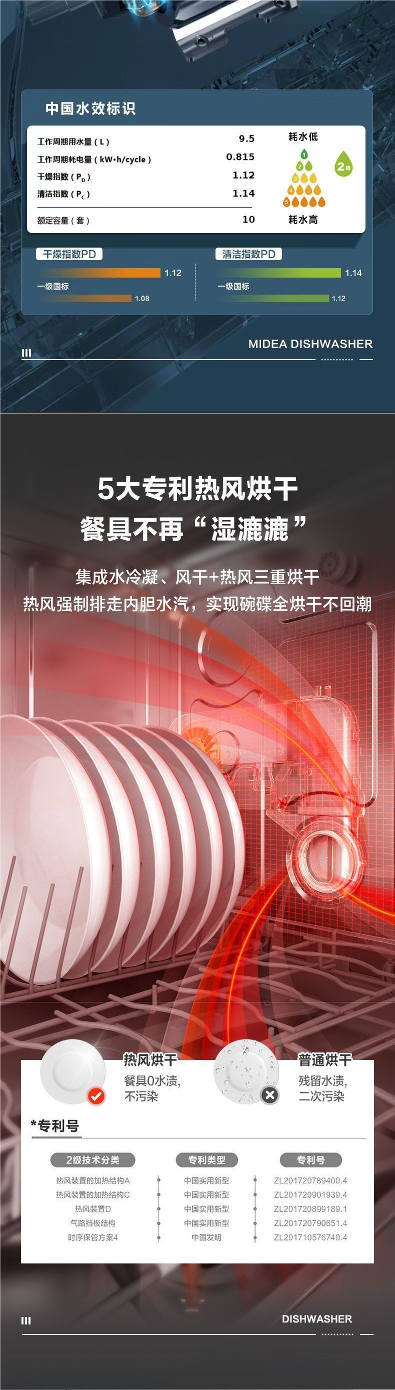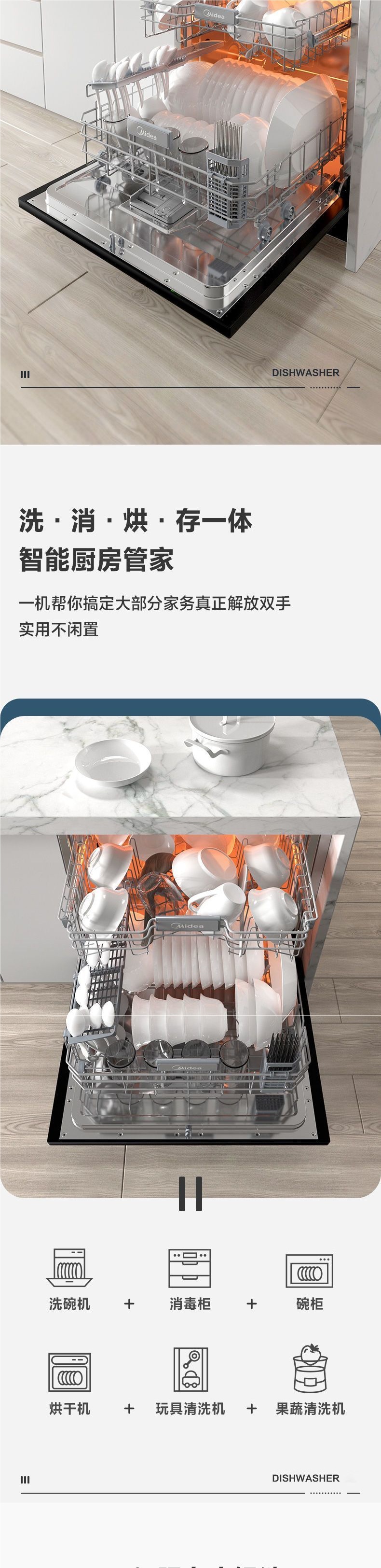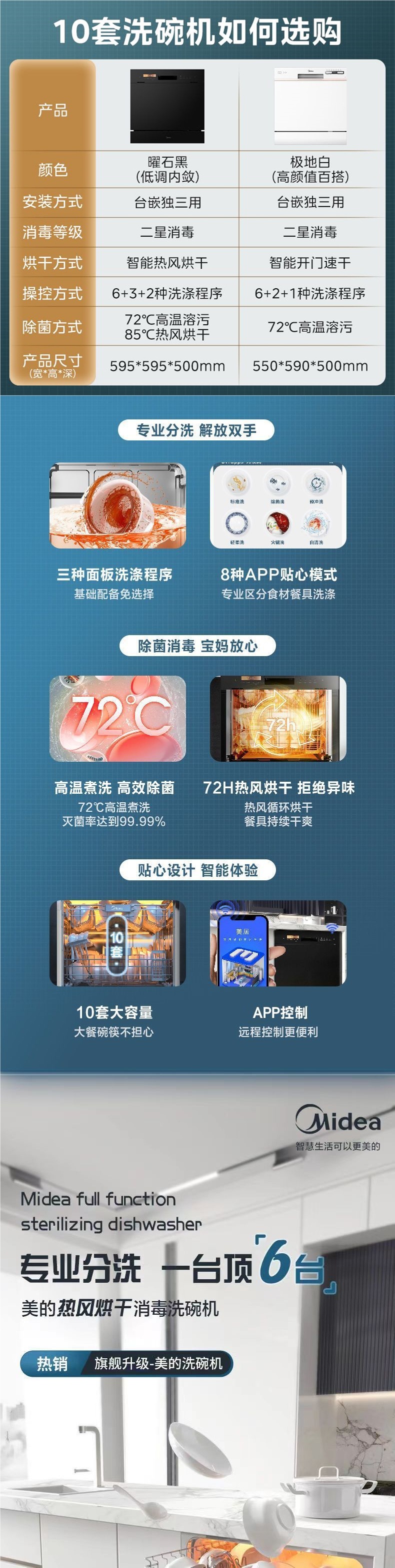 식기 세척기 가정용 뜨거운 공기 건조 및 소독 데스크탑 임베디드 지능형 완전 자동 그릇 칫솔질 기계의 Midea 10 세트스토어 가기