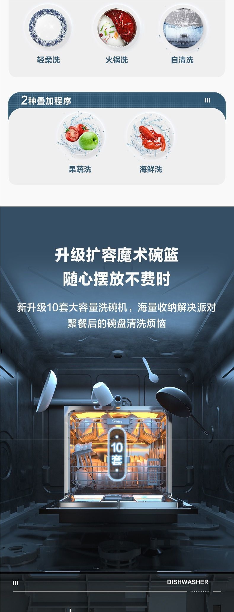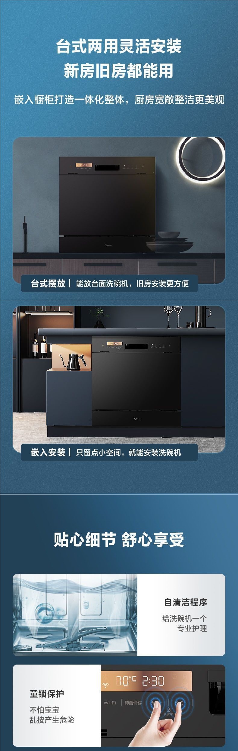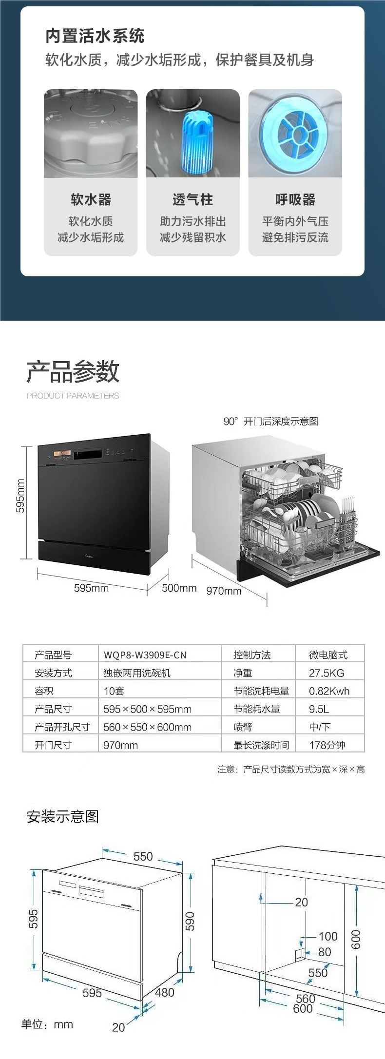 식기 세척기 가정용 뜨거운 공기 건조 및 소독 데스크탑 임베디드 지능형 완전 자동 그릇 칫솔질 기계의 Midea 10 세트스토어 가기