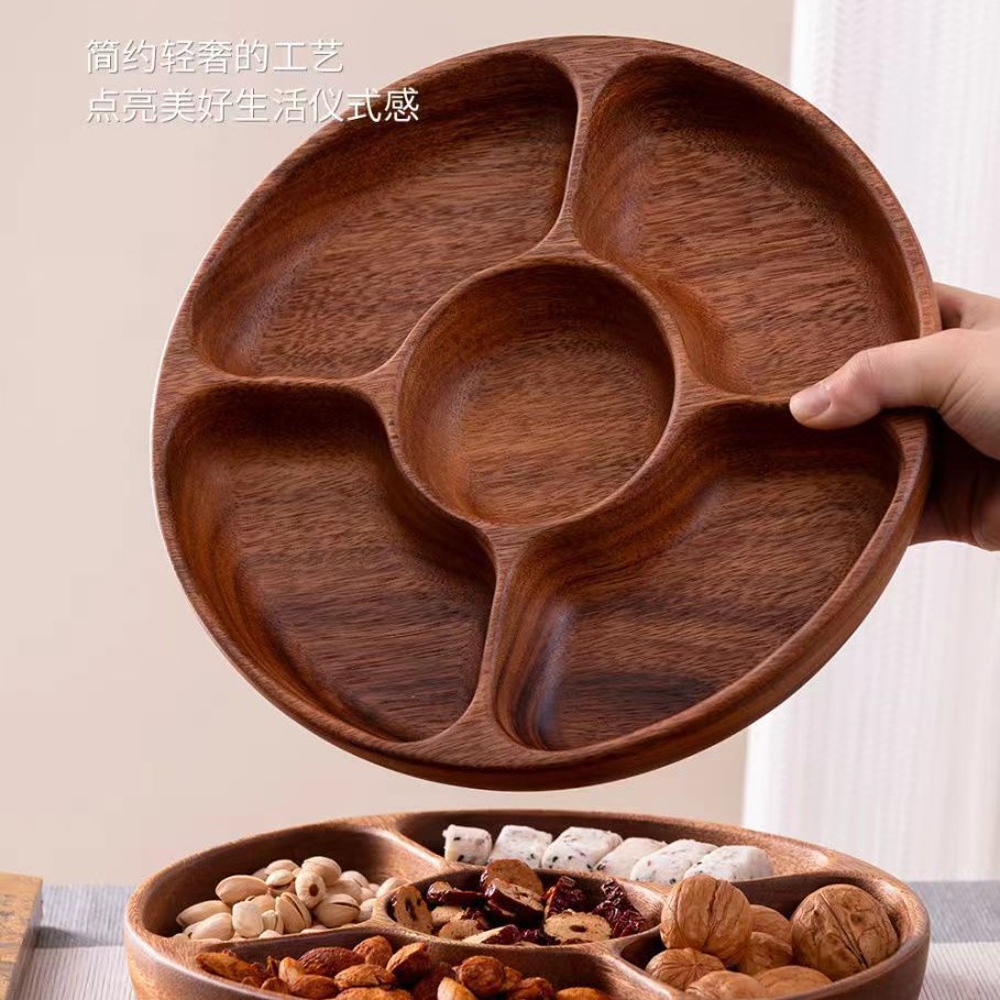 나무 다이닝 플레이트 어린이 보충 식품 트레이 스낵 과일 플레이트 일본식 식기 솔리드 우드 트레이 라운드 과일 플레이트스토어 가기