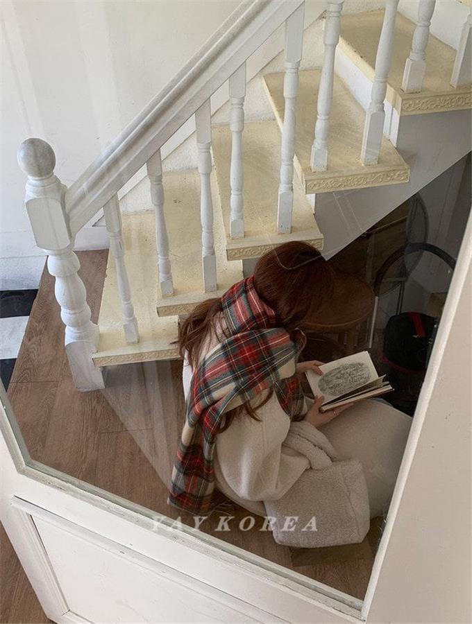 YAY 한국 동대문, 크리스마스 레트로 레드 플레이드 따뜻한 술 목도리 스카프 구매스토어 가기