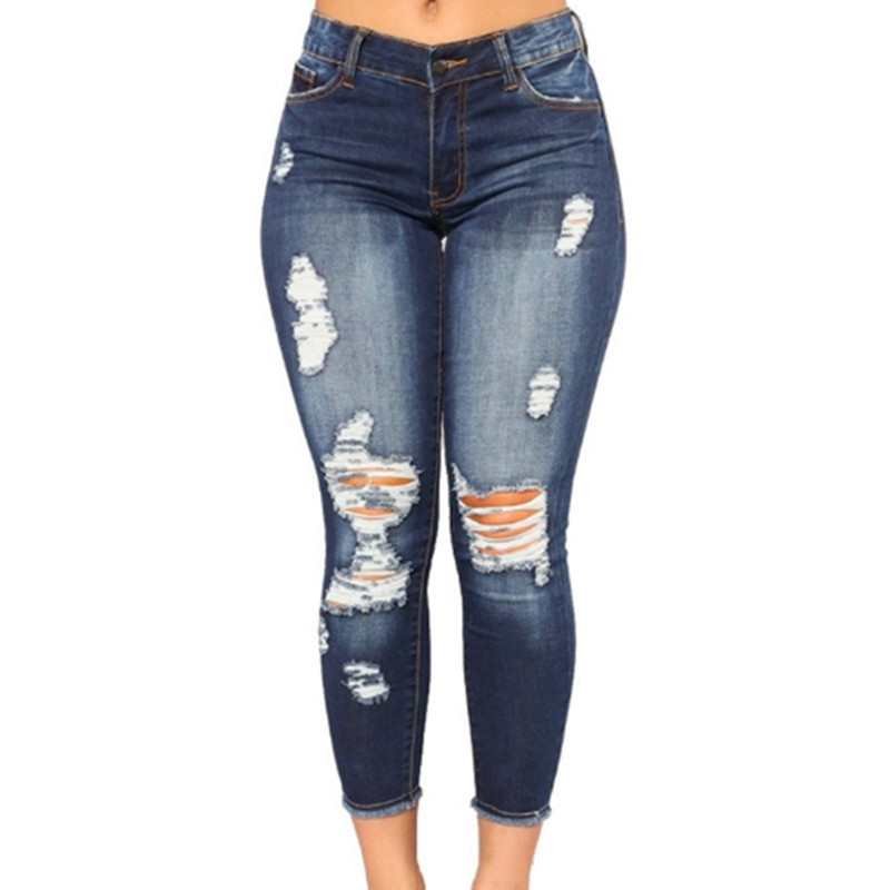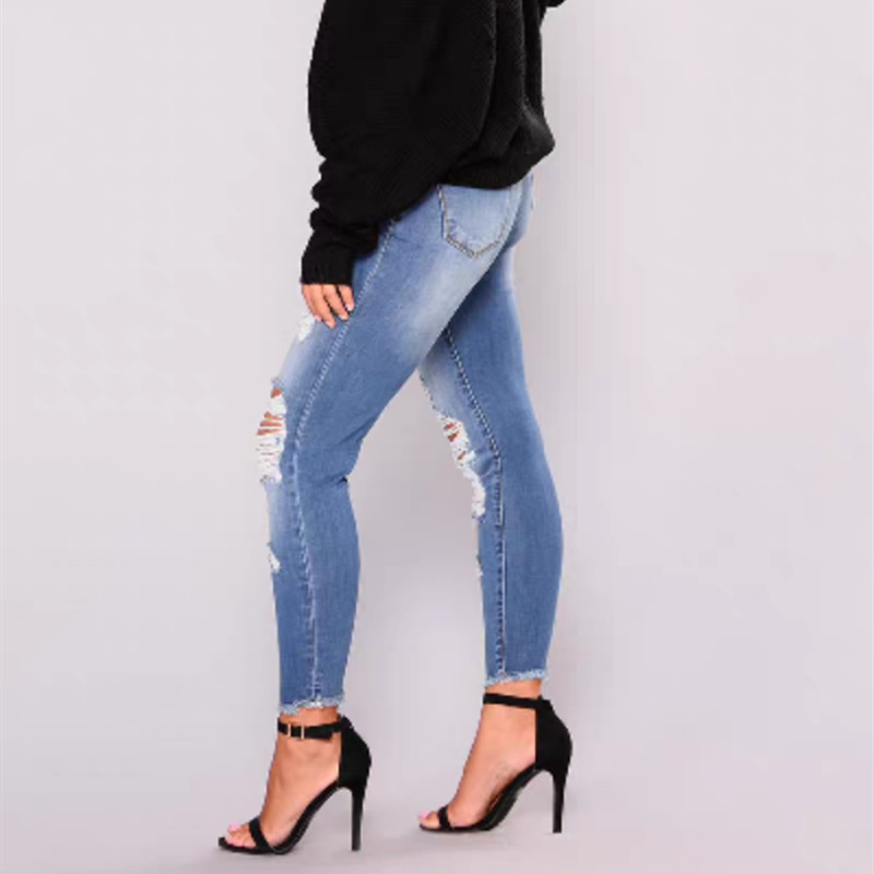국경 간 패션 트렌드 꽉 스트레치 다리 청바지 여성 유럽과 미국의 대외 무역 핫 멀티 컬러 자른 바지