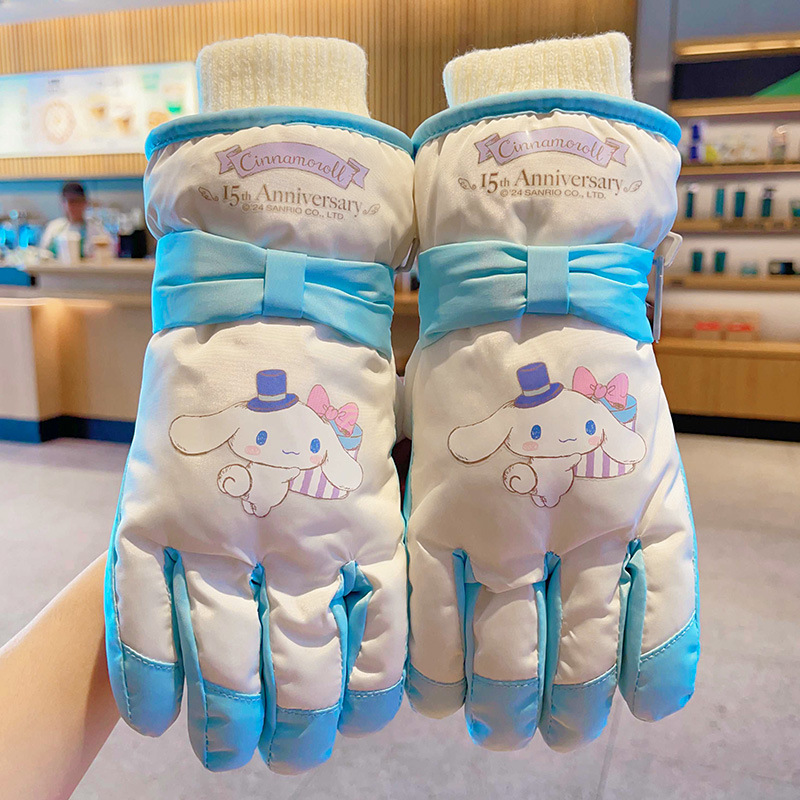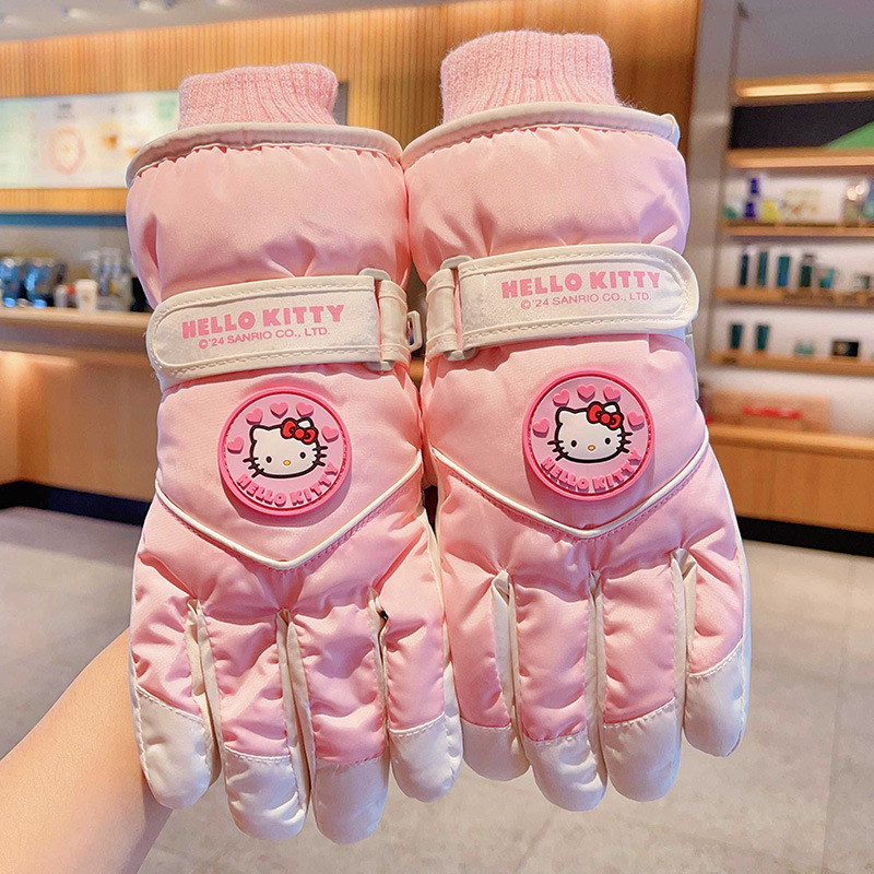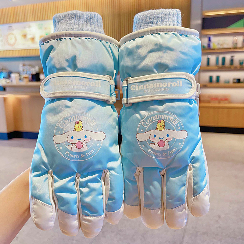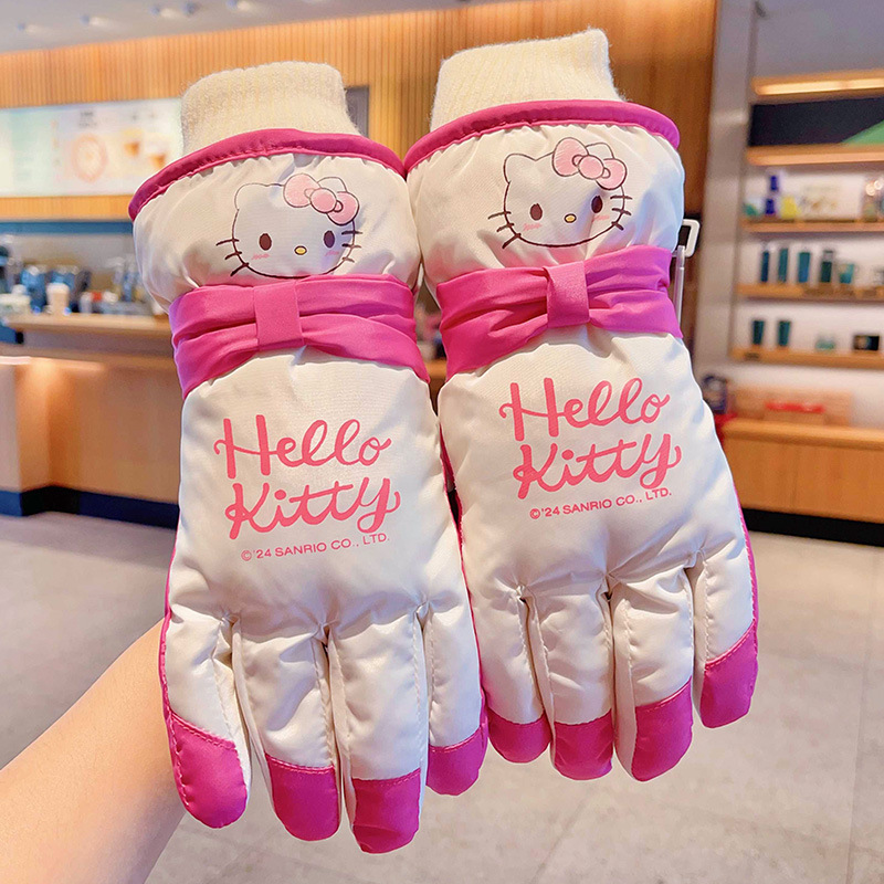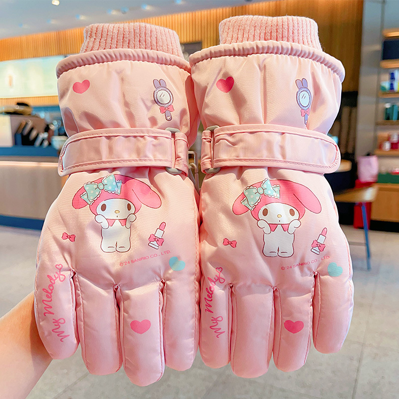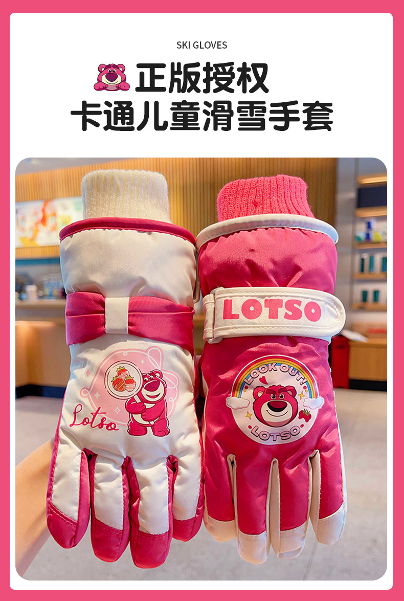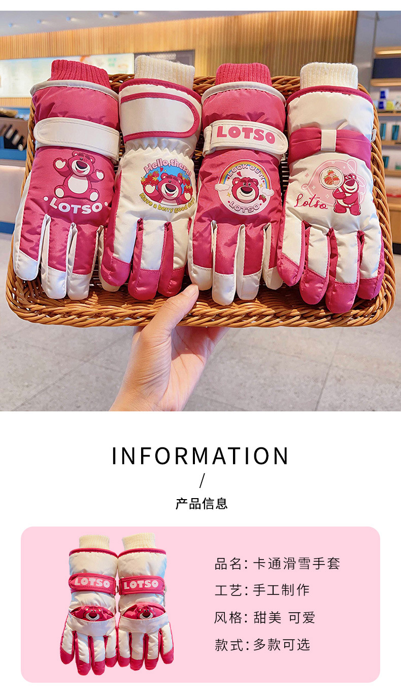 정품 딸기 곰 어린이 스키 장갑 소녀 따뜻한 기모 승마 소녀 방수 부동액 스노우 장갑